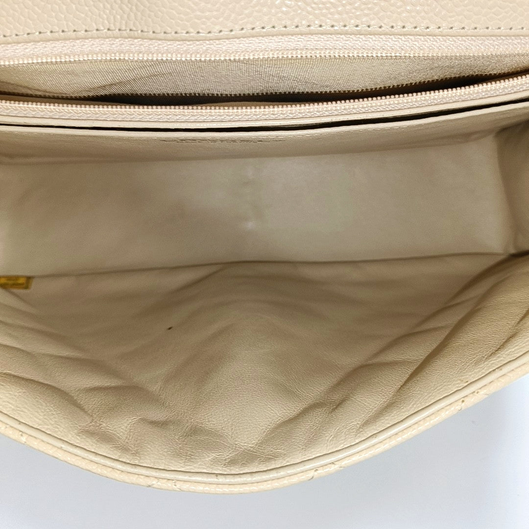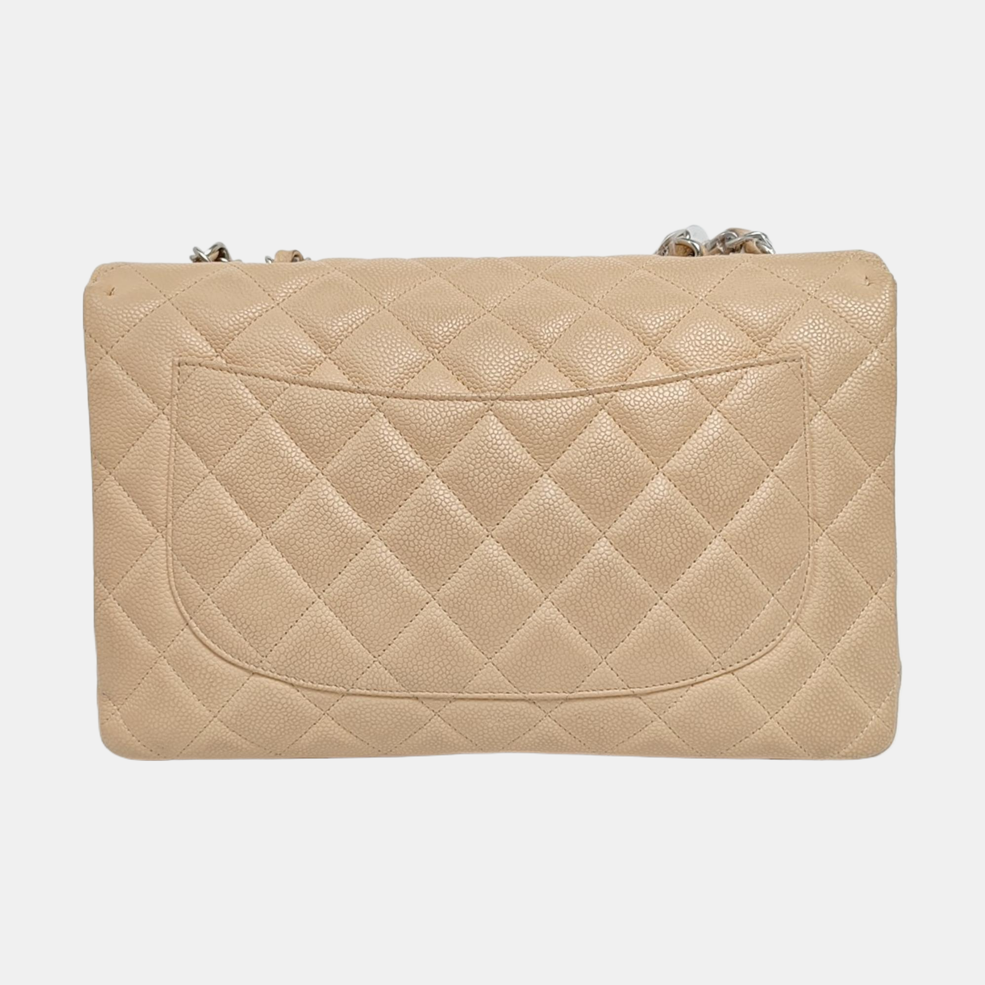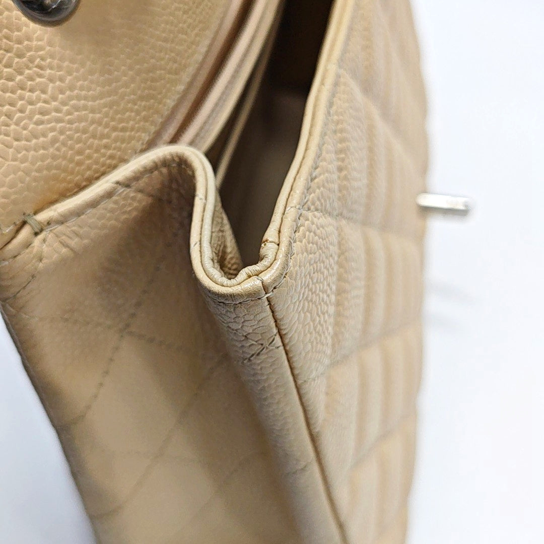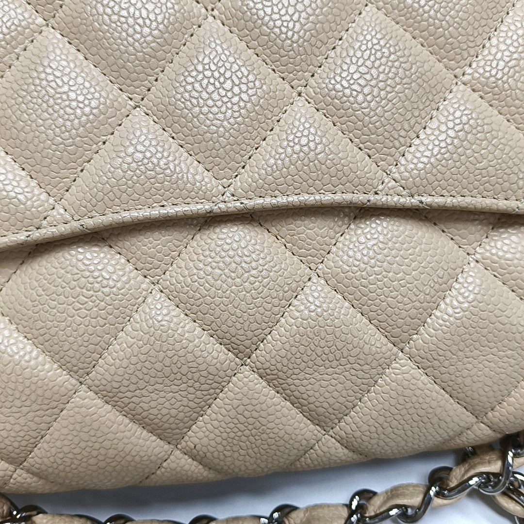 Chanel Classic Flap Jumbo Beige Caviar Leather Single Flap Silver Hardware