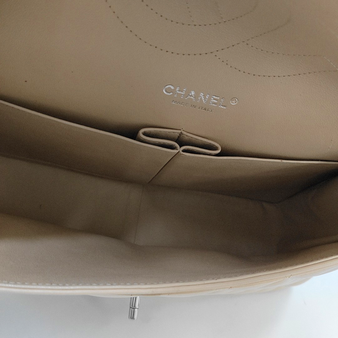 Chanel Classic Flap Jumbo Beige Lambskin Leather Single Flap with Silver Hardware