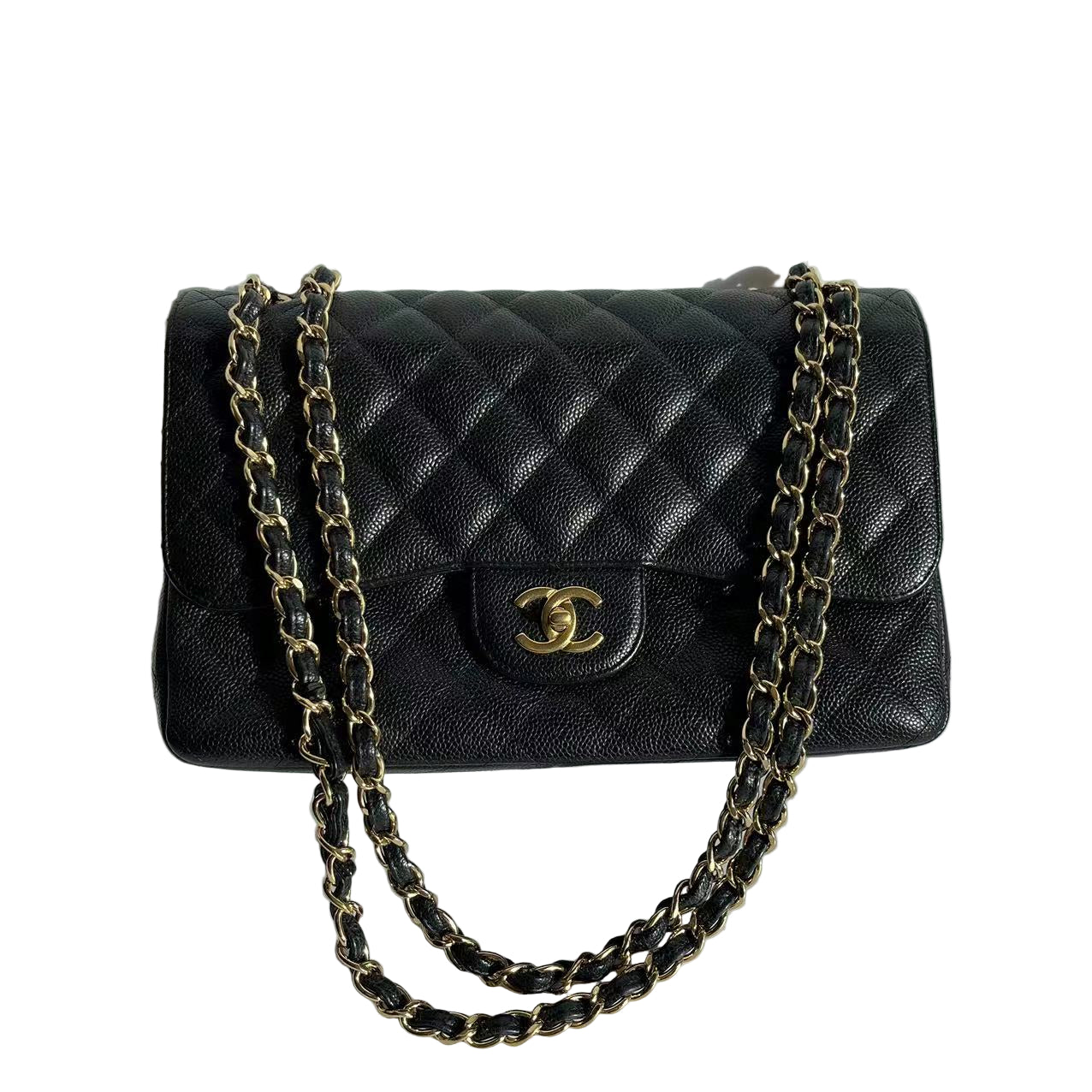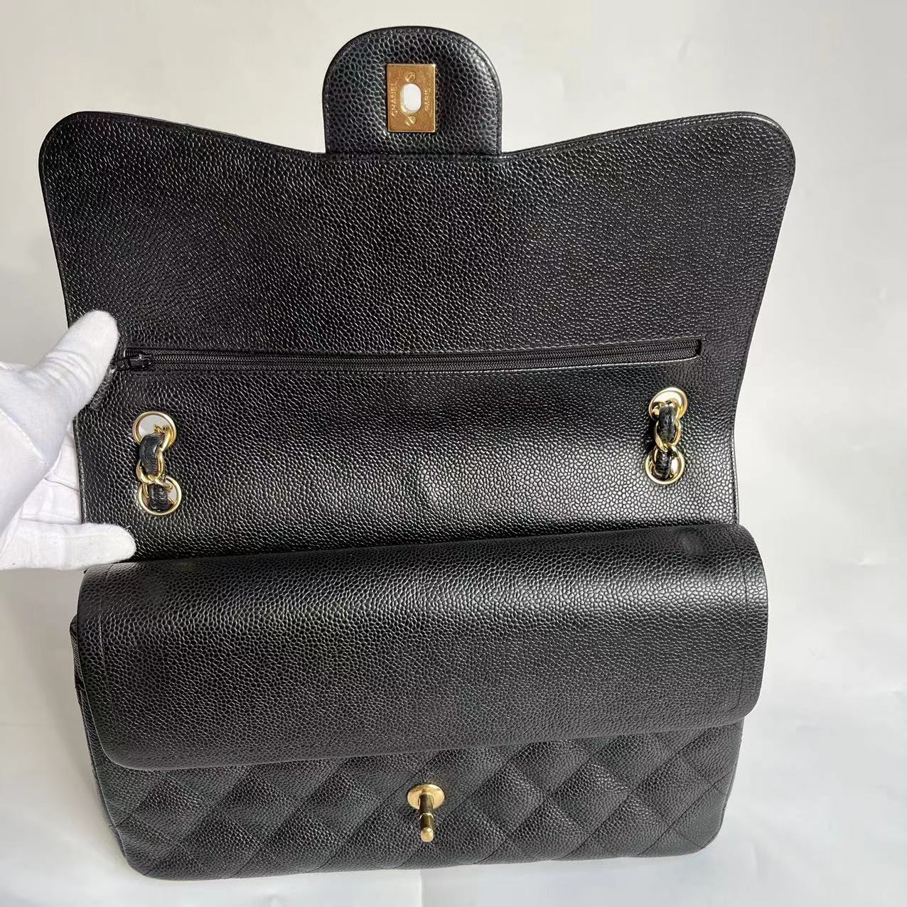 Chanel Classic Flap Jumbo Black Caviar Leather Double Flap Gold Hardware 2011-2012
