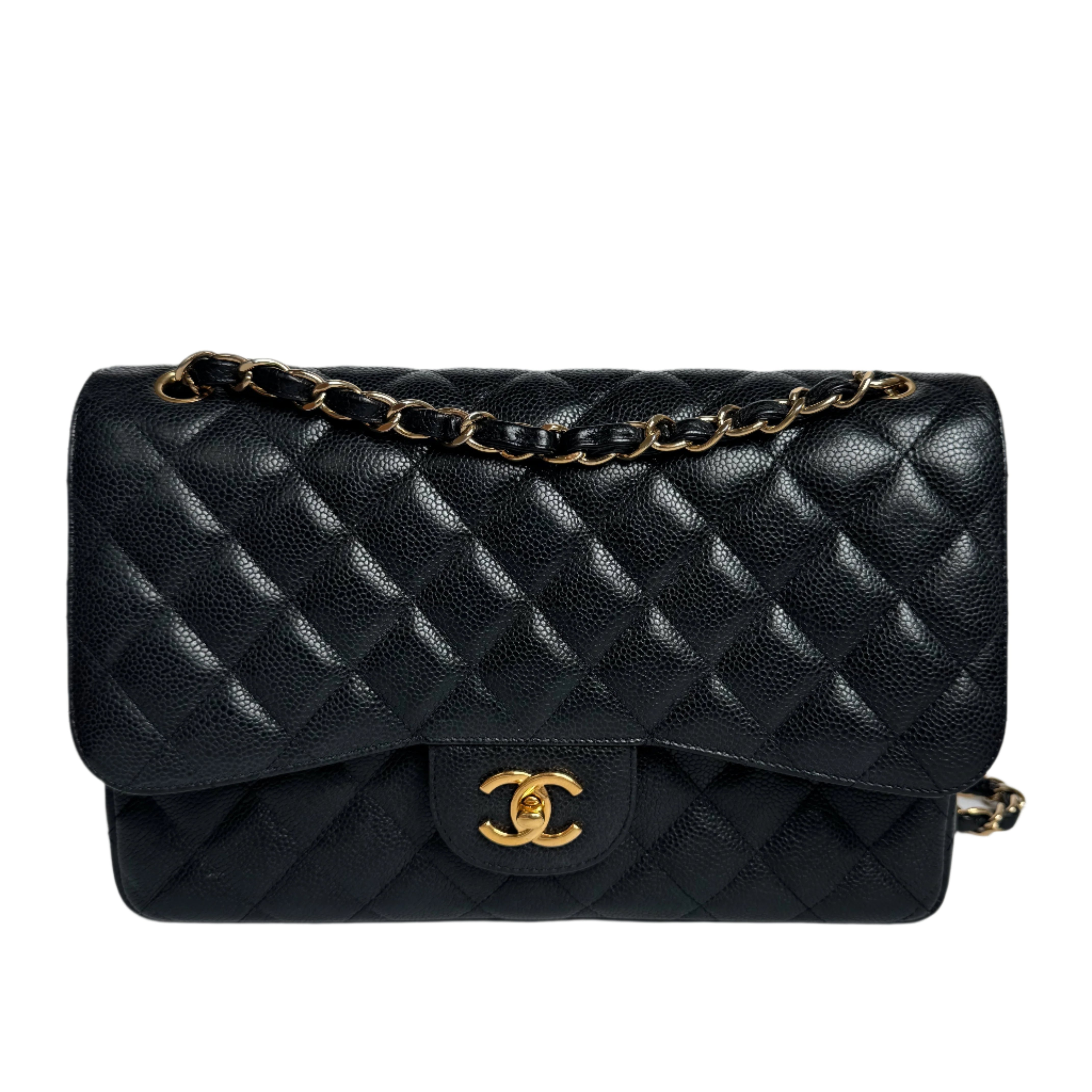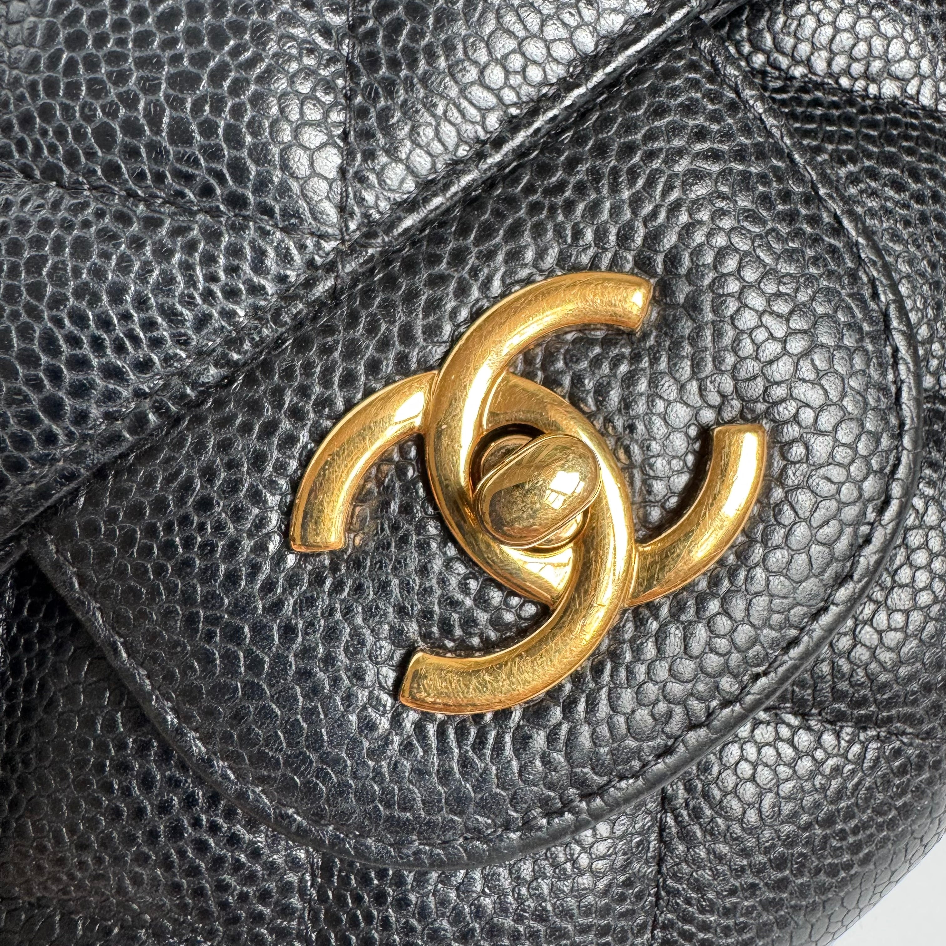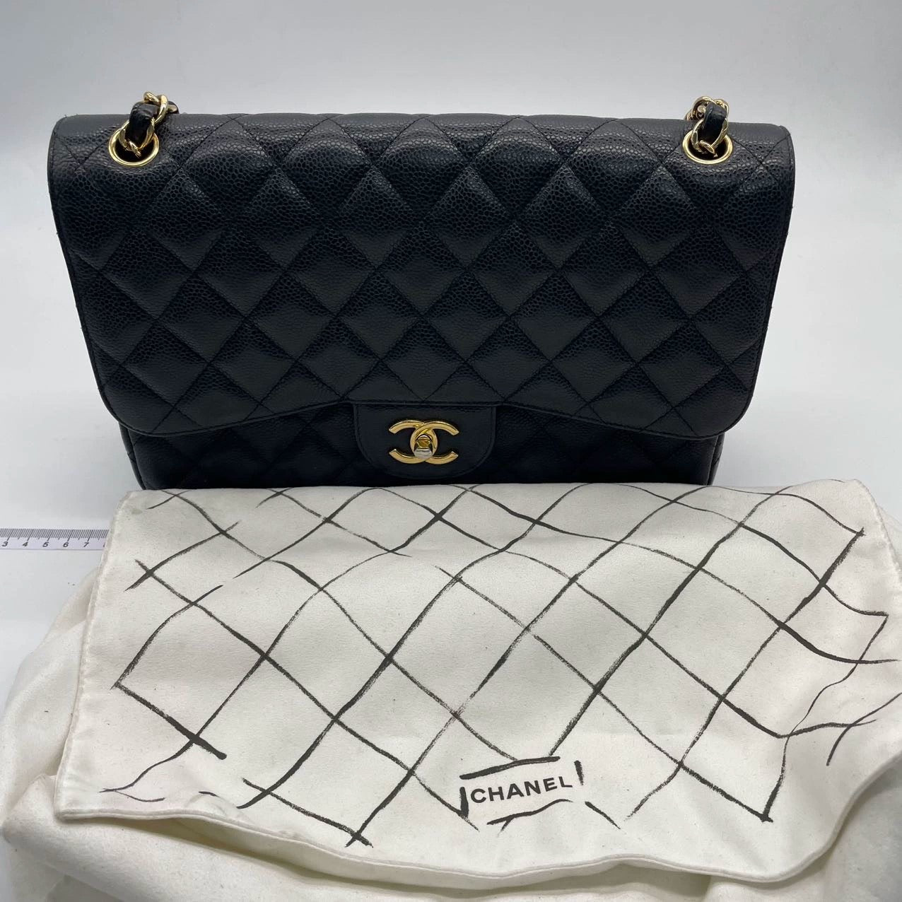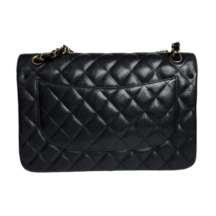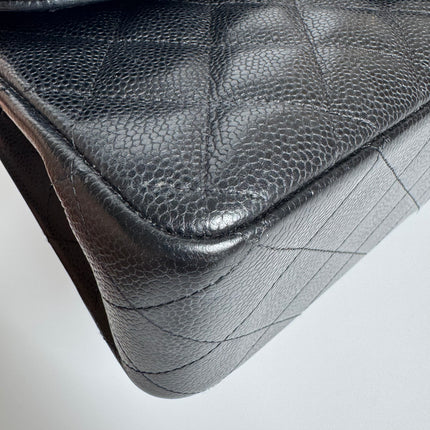 Chanel Classic Flap Jumbo Black Caviar Leather Double Flap with Gold Hardware