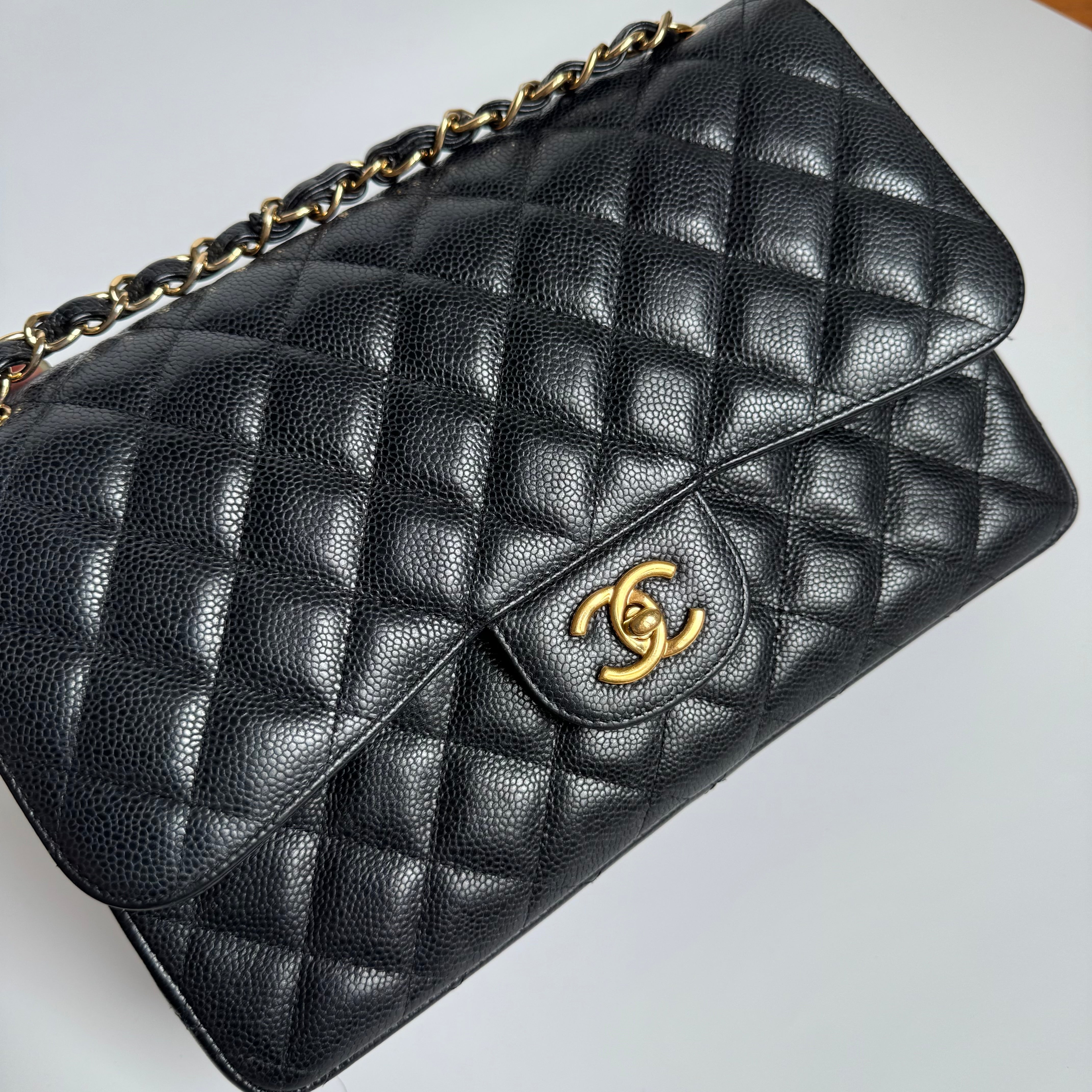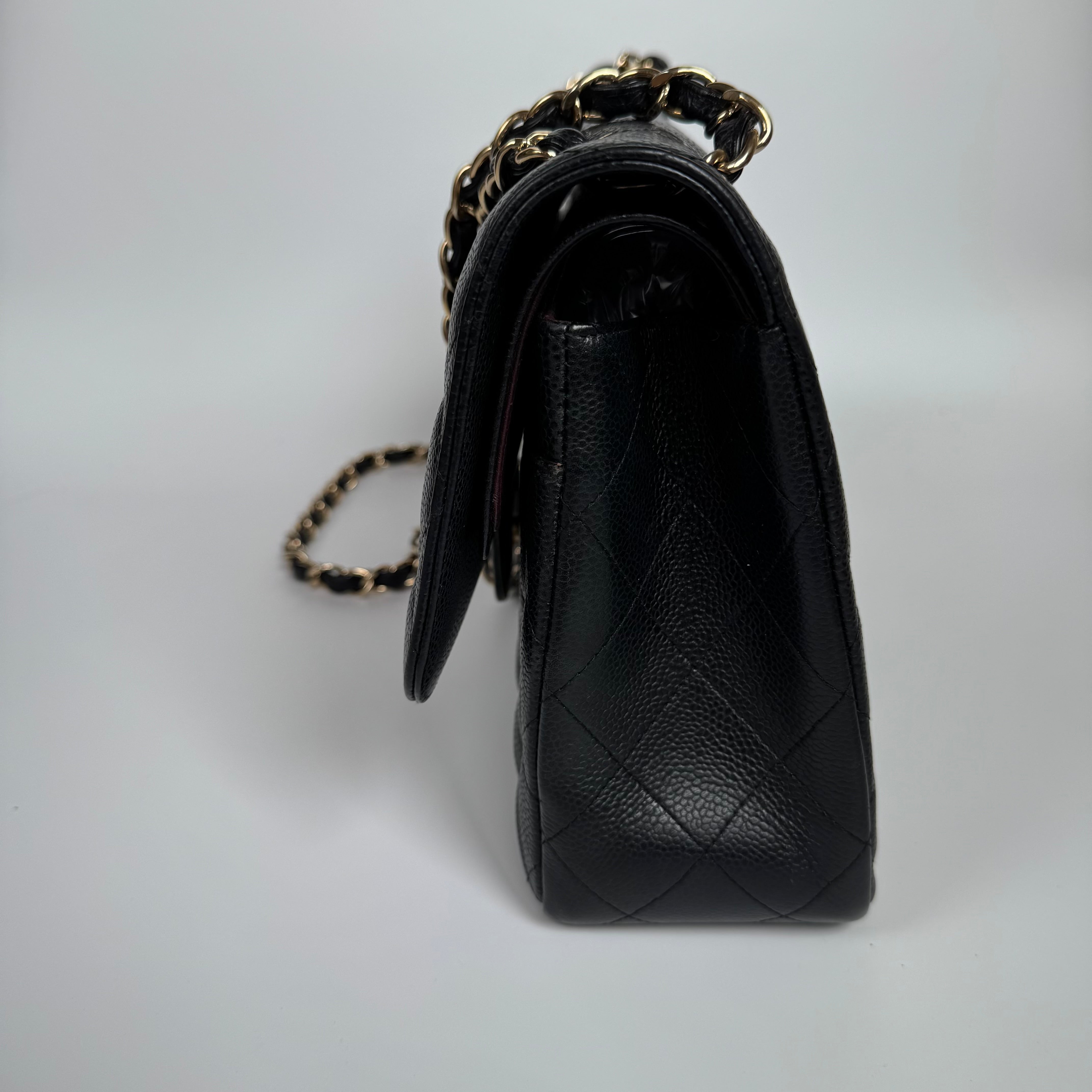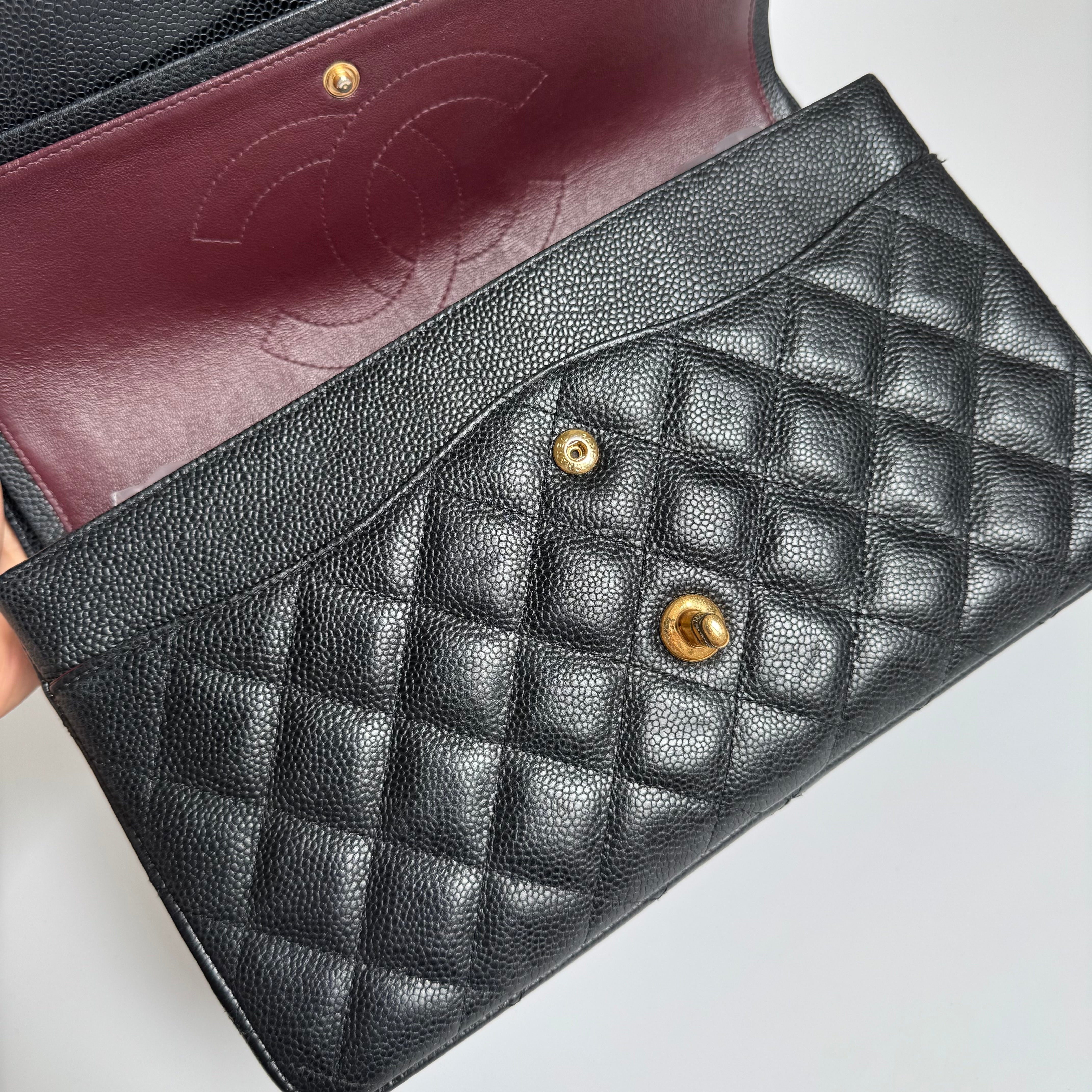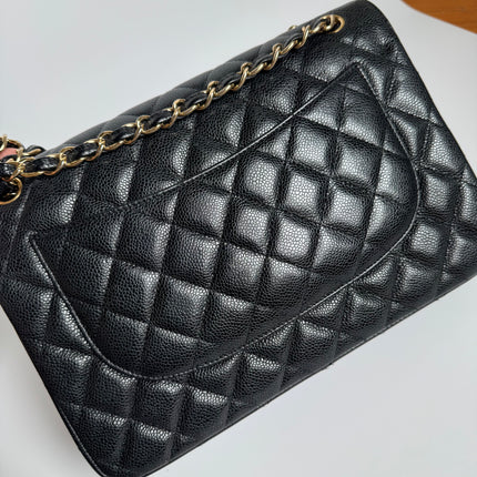 Chanel Classic Flap Jumbo Black Caviar Leather Double Flap with Gold Hardware