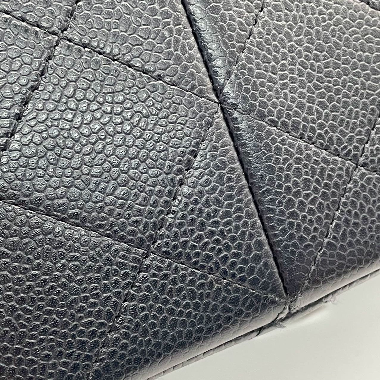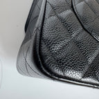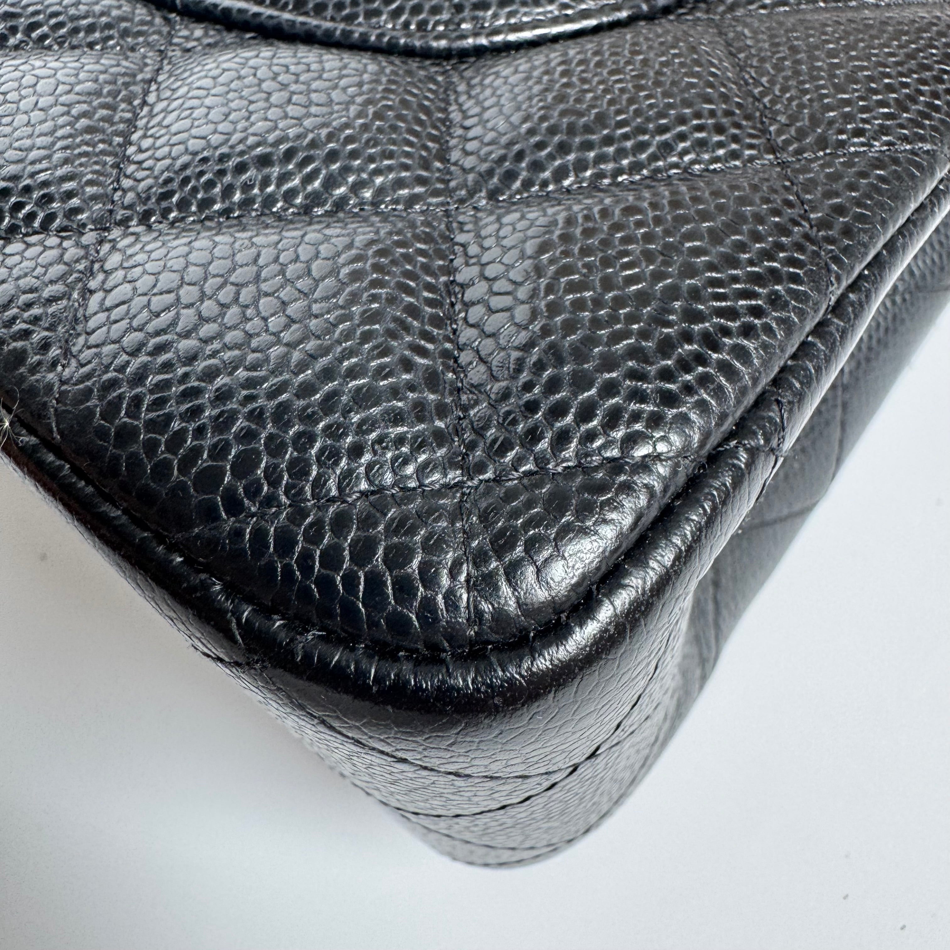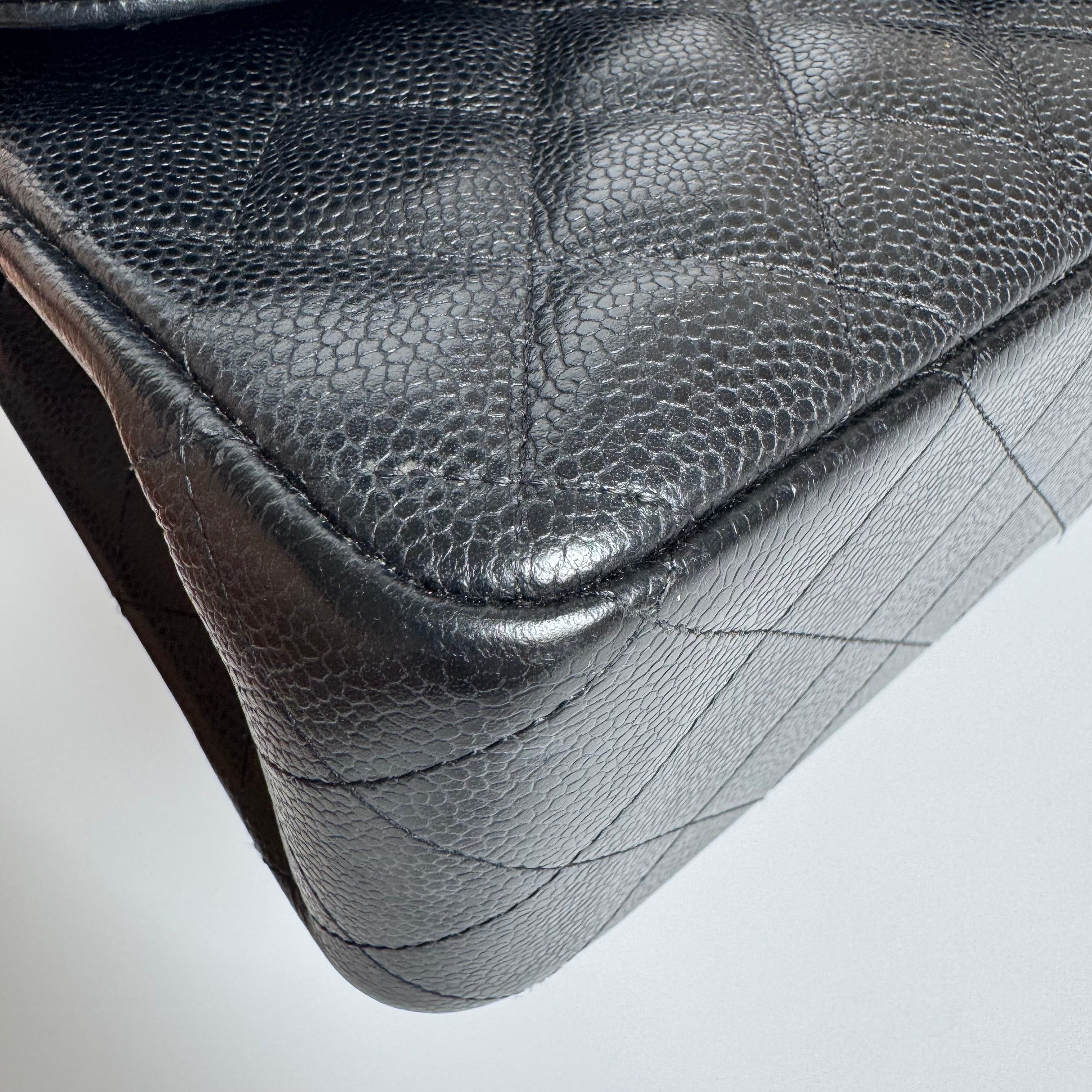 Embrace luxury with this timeless Chanel Classic Jumbo/Large Flap bag crafted in a scratch-resistant Caviar black leather and finished with gleaming silver hardware.