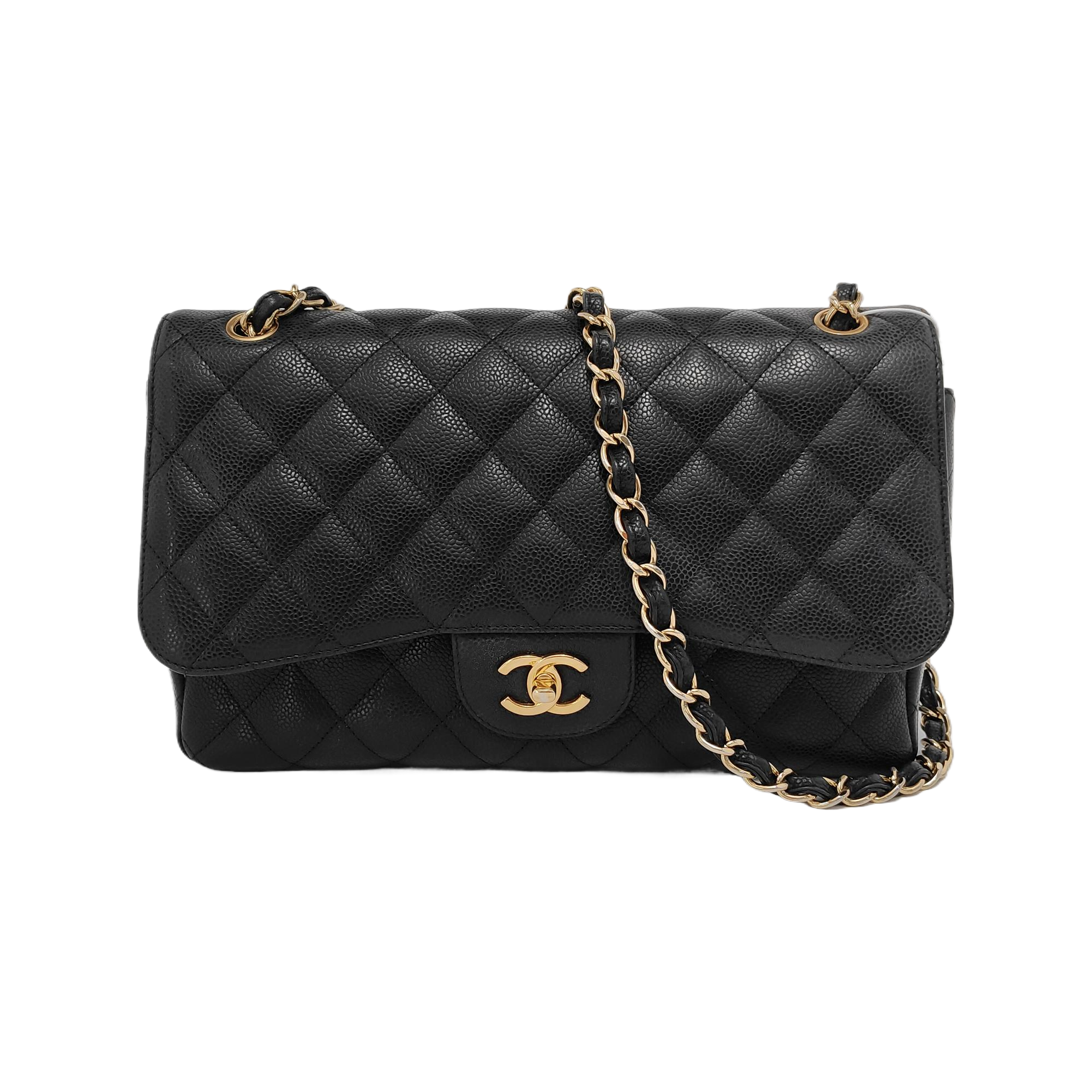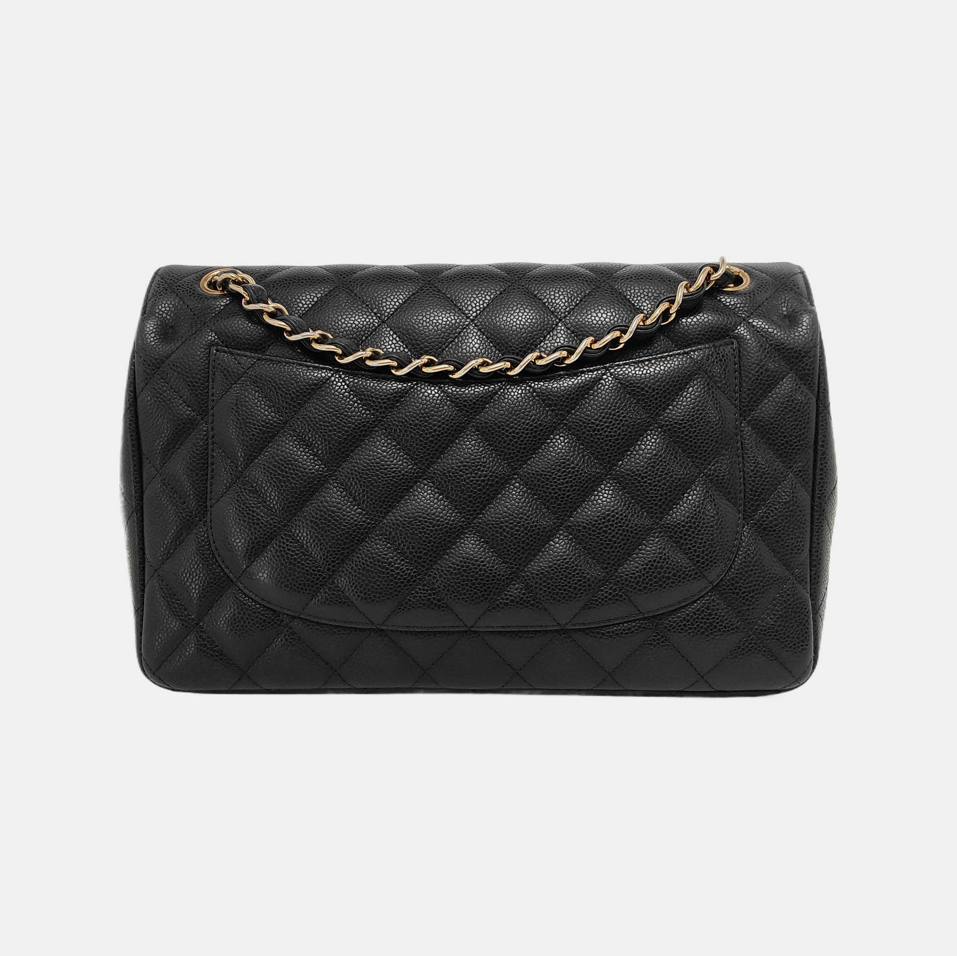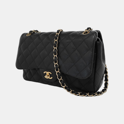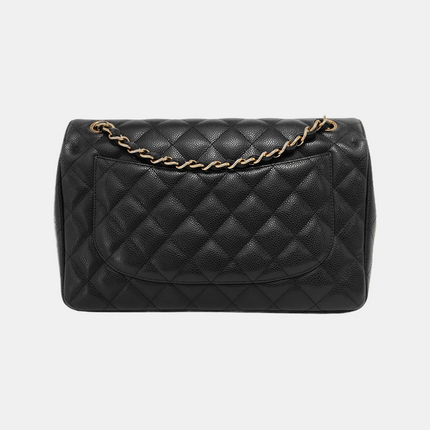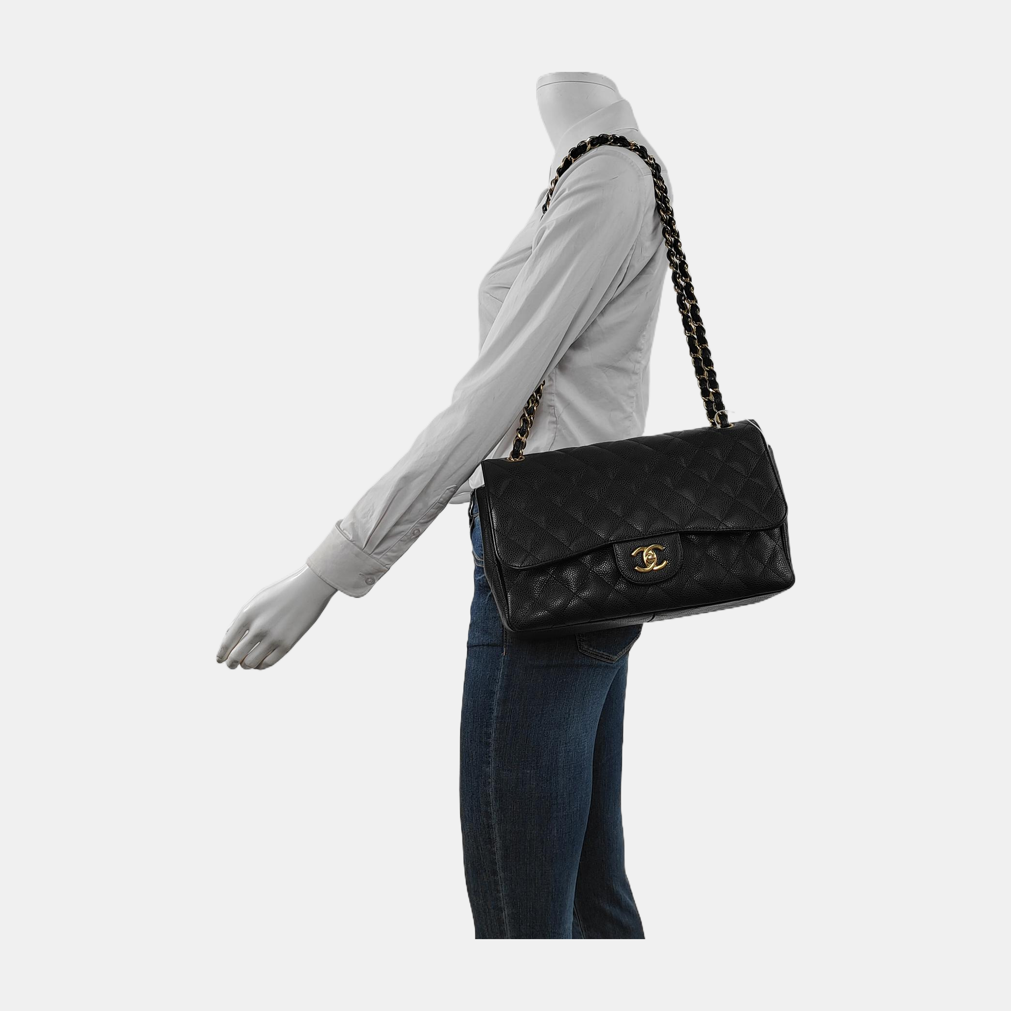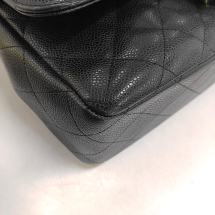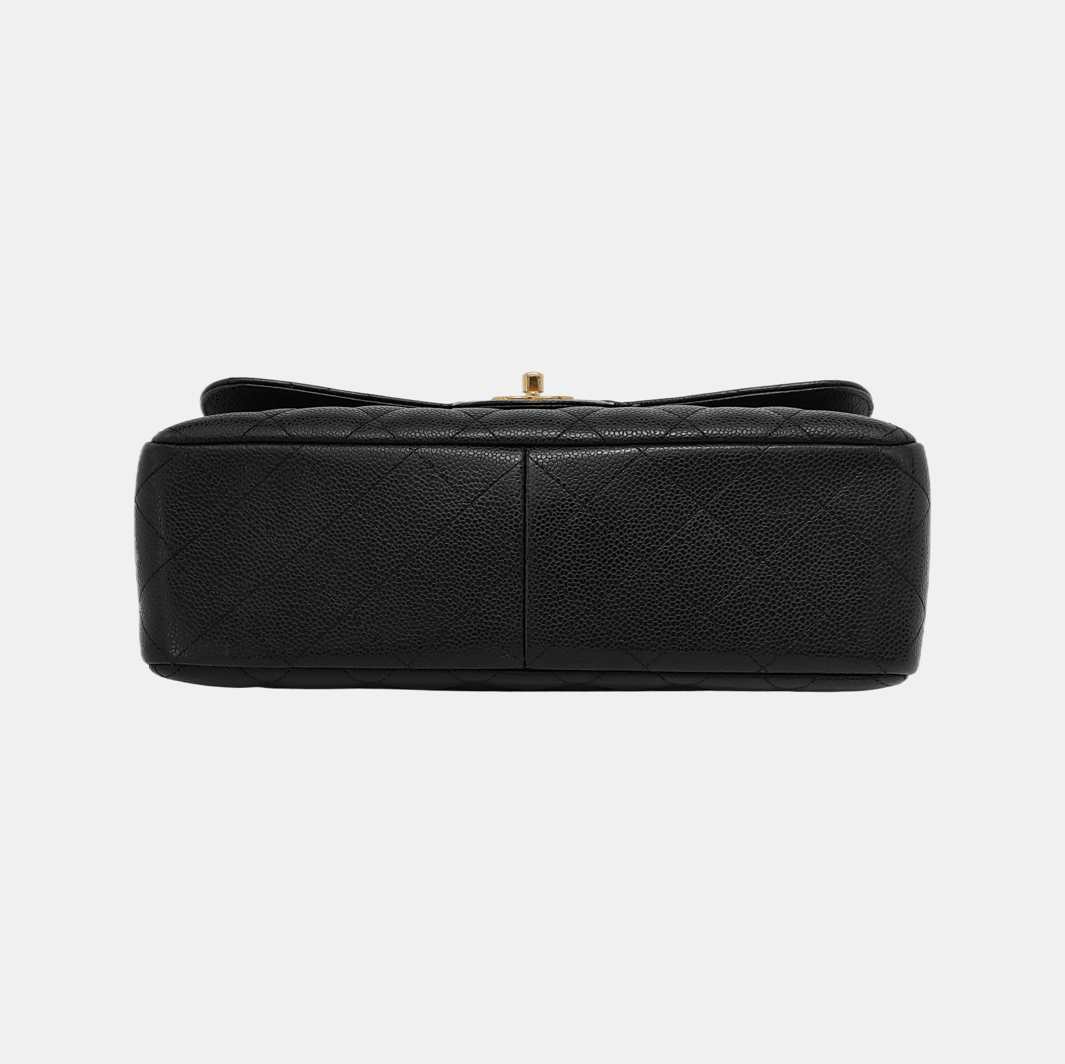 Chanel Classic Flap Jumbo Black Caviar Leather Double Flap with Gold Hardware