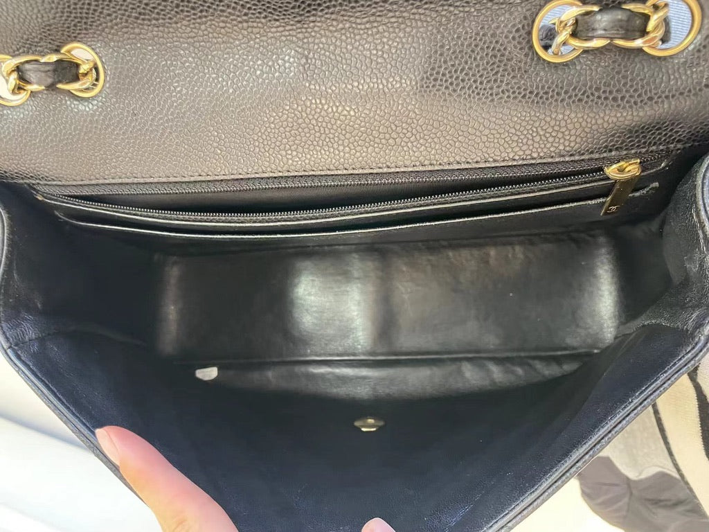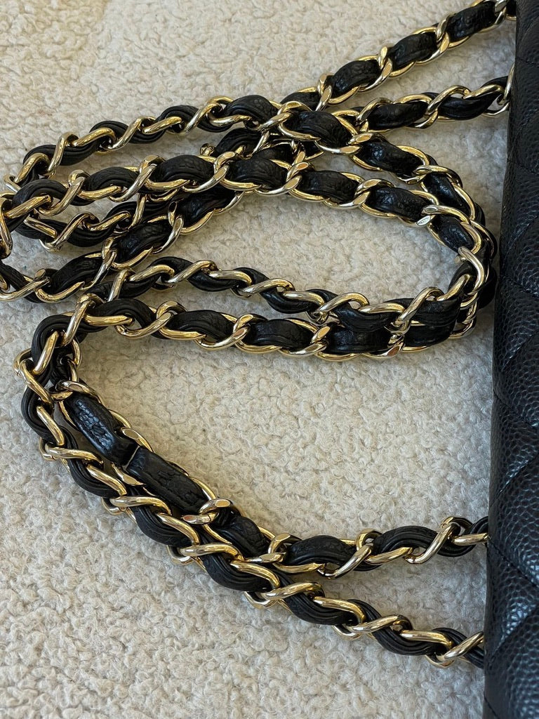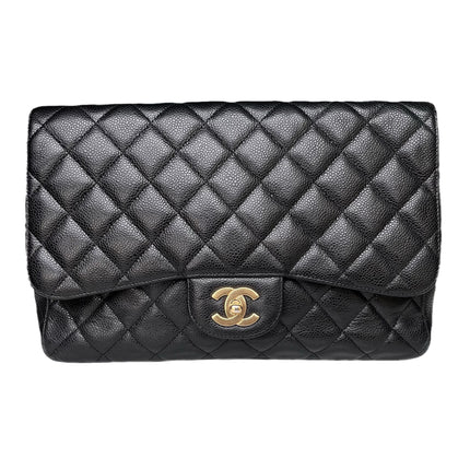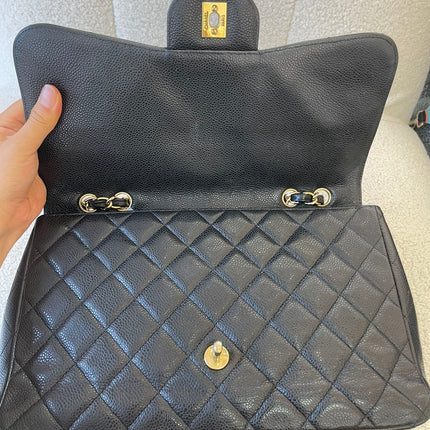 Sold Chanel Classic Flap Jumbo/Large Black Caviar Leather with Gold Hardware