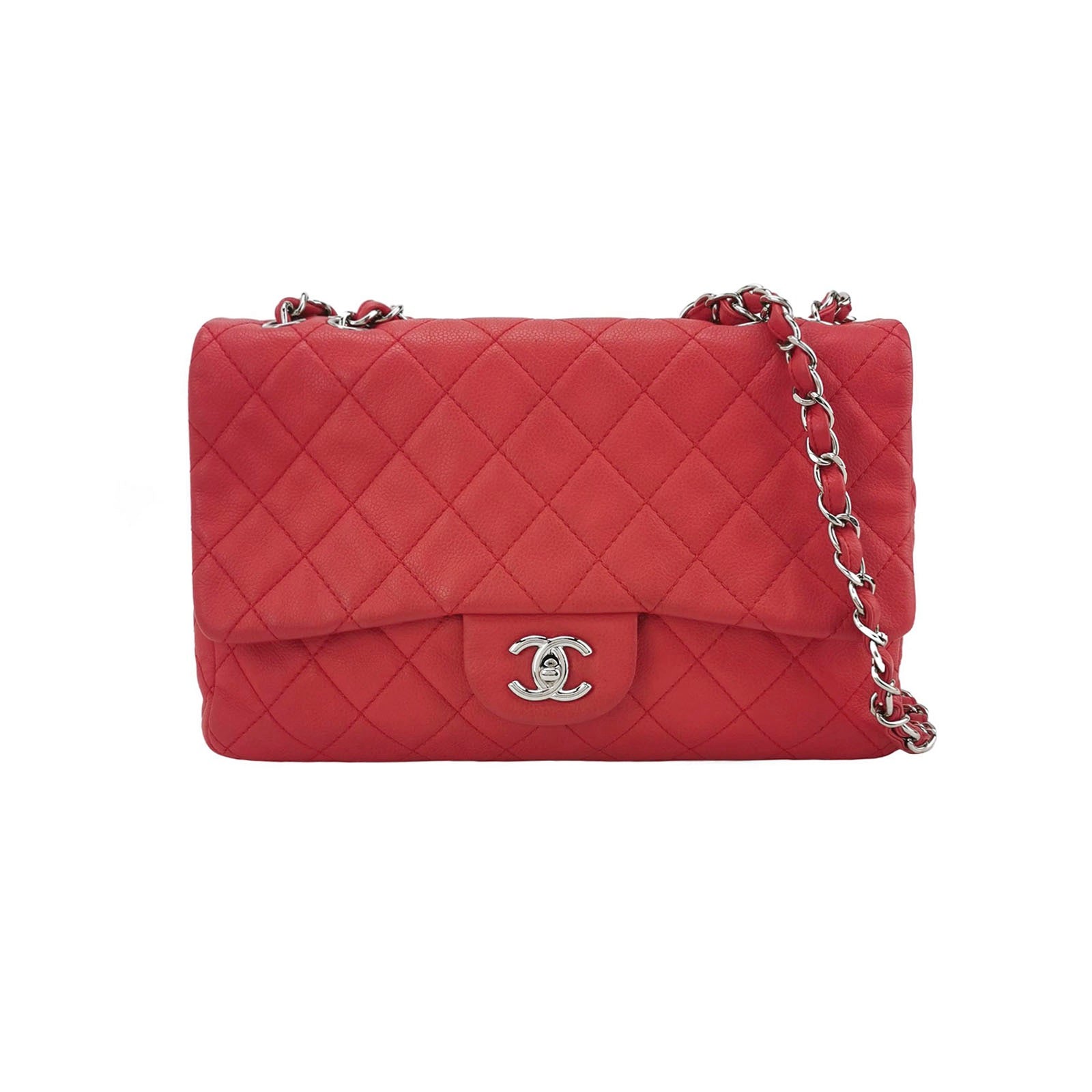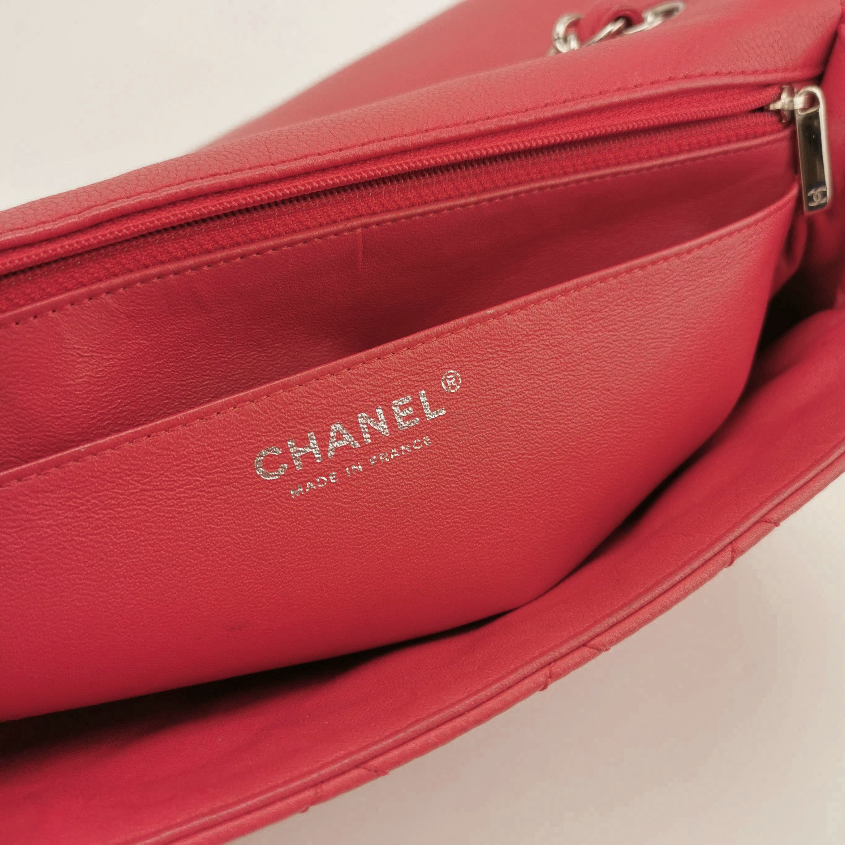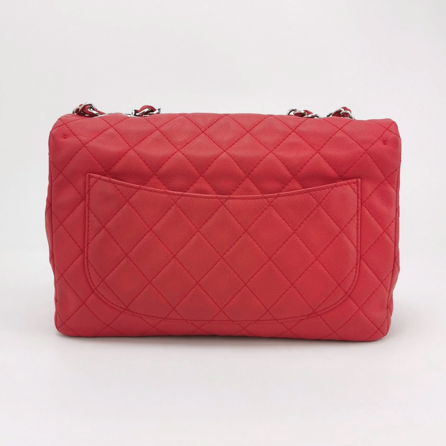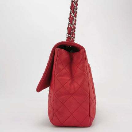 Chanel Classic Flap Jumbo Red Caviar Leather Single Flap Silver Hardware 2008-2009