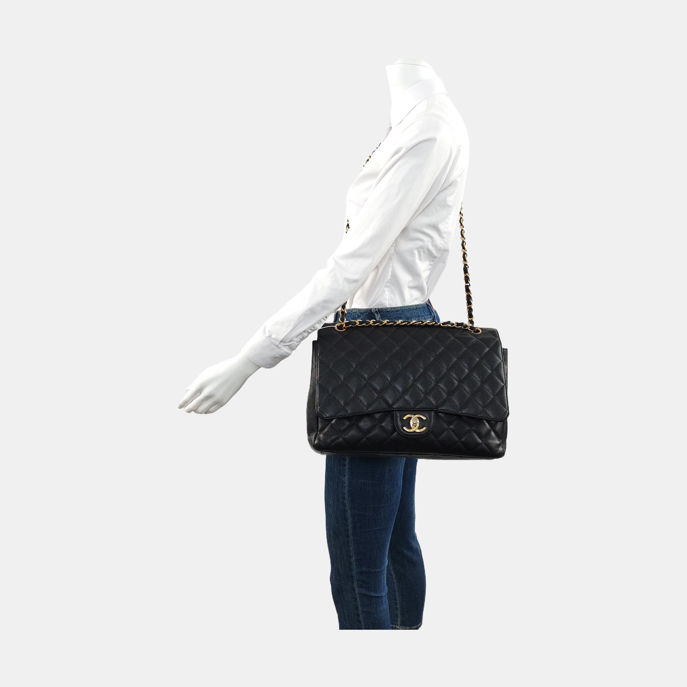 Chanel Classic Flap Maxi 2011 Black Caviar Leather Double Flap with Gold Hardware