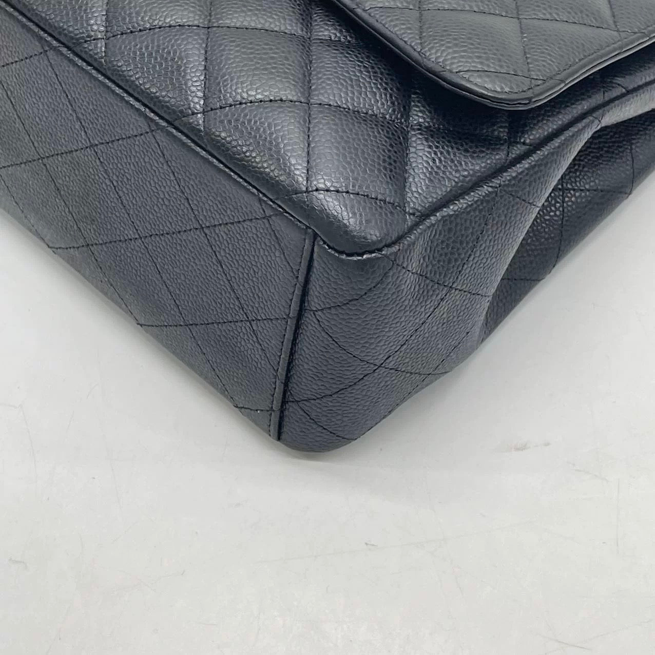 Chanel Classic Flap Maxi 2012 Black Caviar Leather Double Flap with Gold Hardware