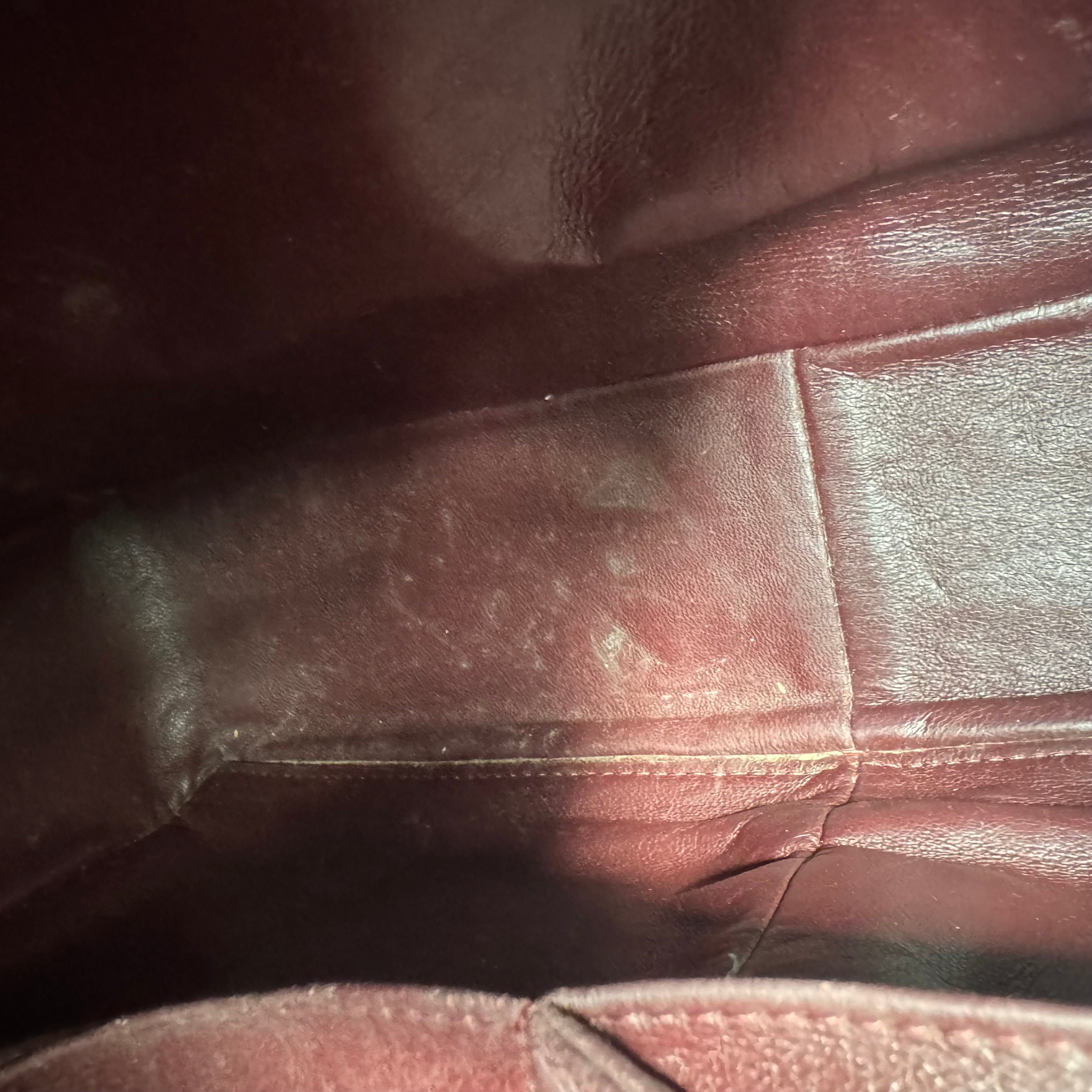 Excellent condition like light signs of wear. Rubbing around the corners. Scratches inside. Leather creases. Scratches to hardware.