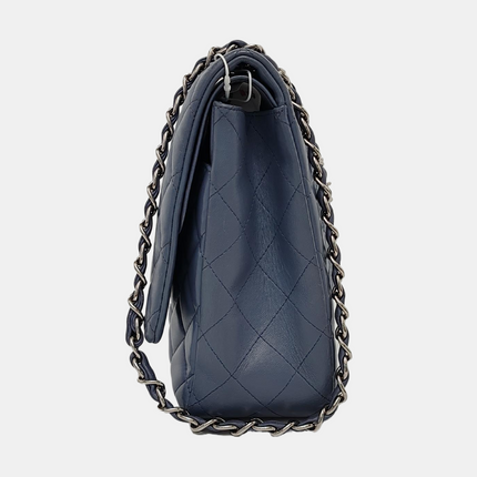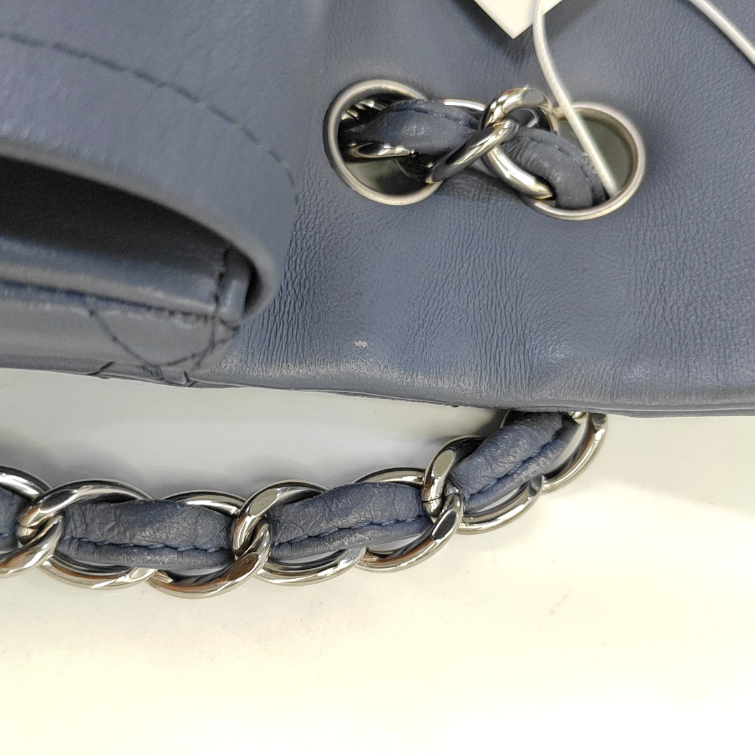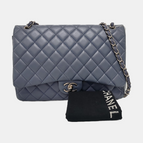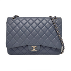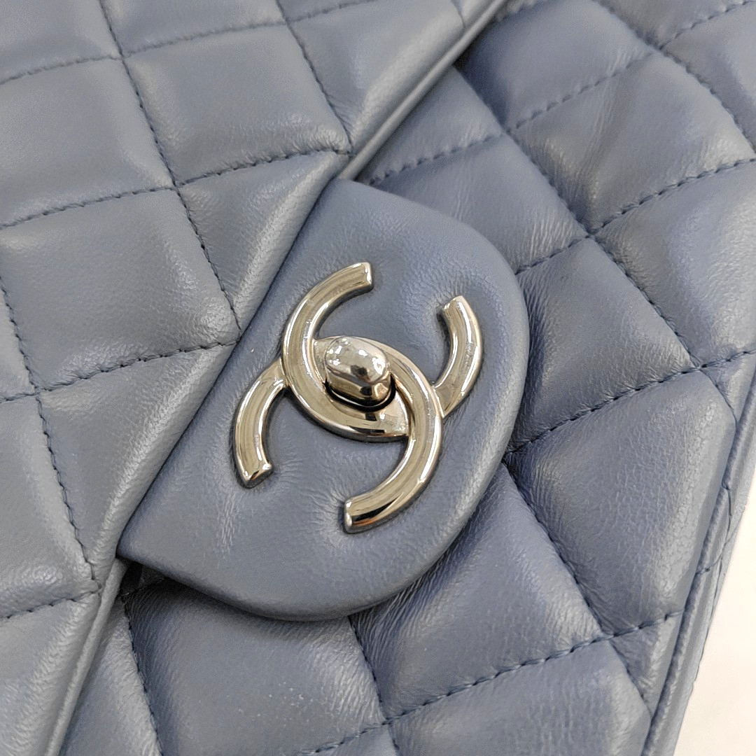 Chanel Classic Flap Maxi Misty Blue Lambskin Leather Double Flap with Silver-tone Hardware