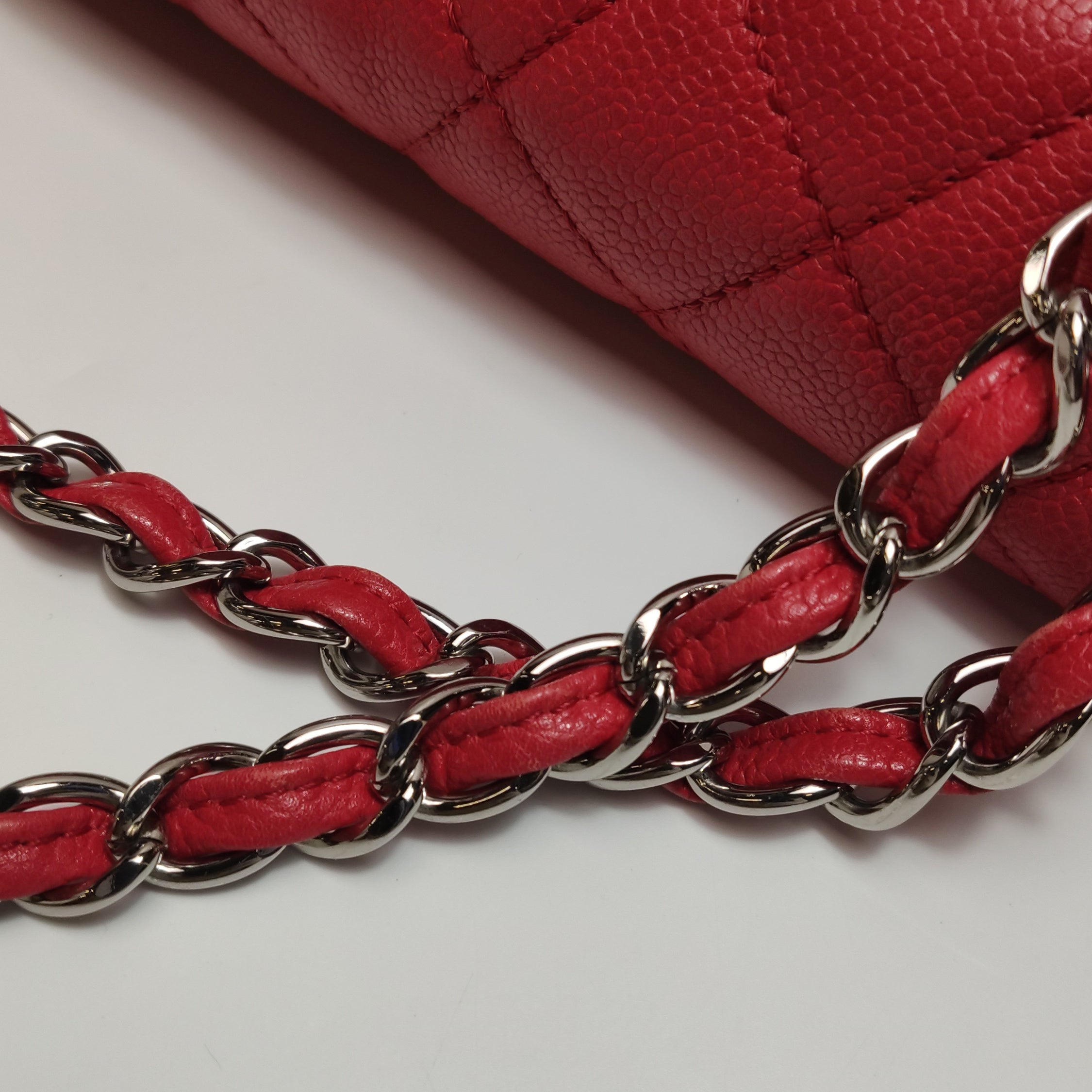 Chanel Classic Flap Maxi Red Caviar Leather Silver-tone Hardware Giant CC Logo