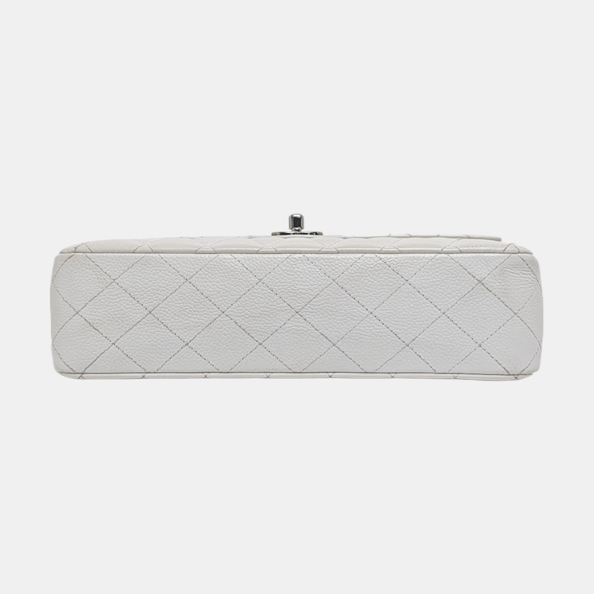 Chanel Classic Flap Medium 2008 White Caviar Leather Silver Hardware