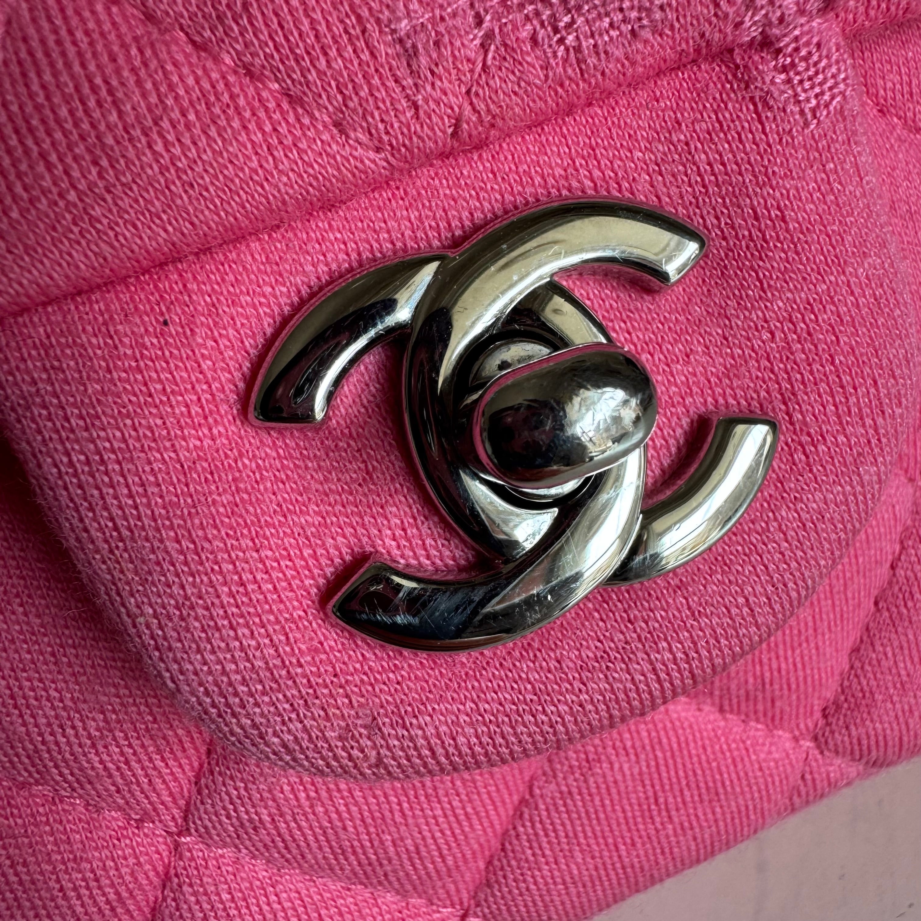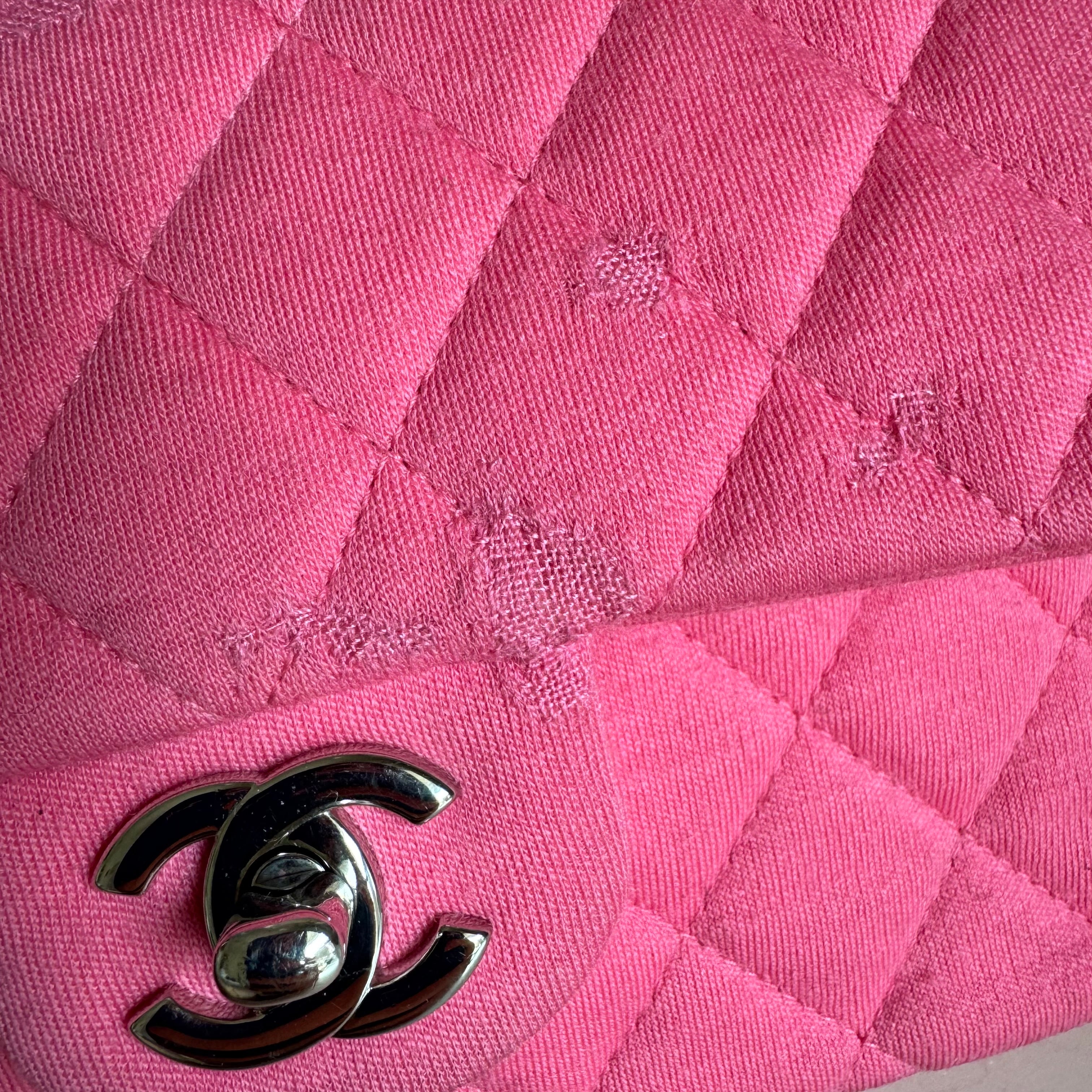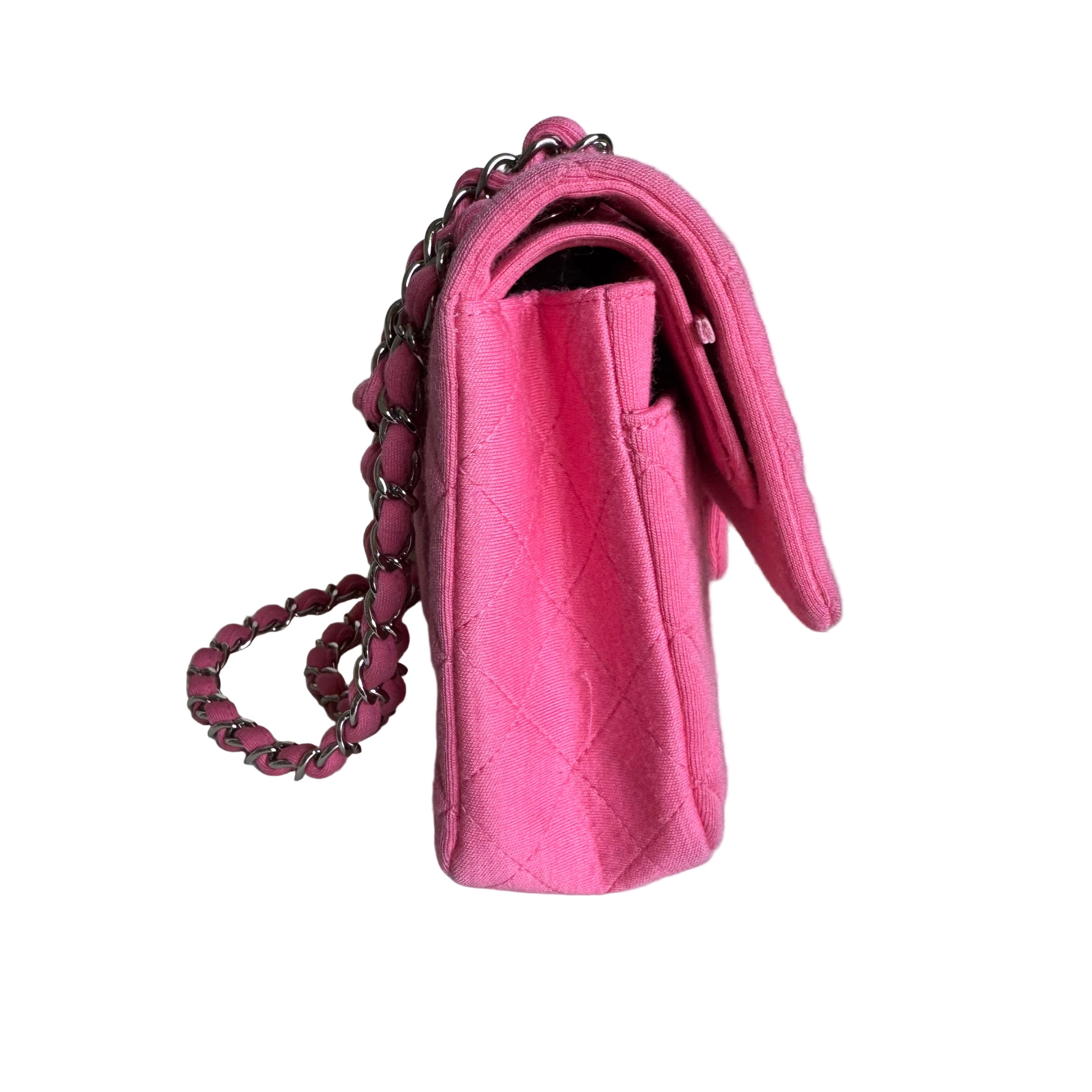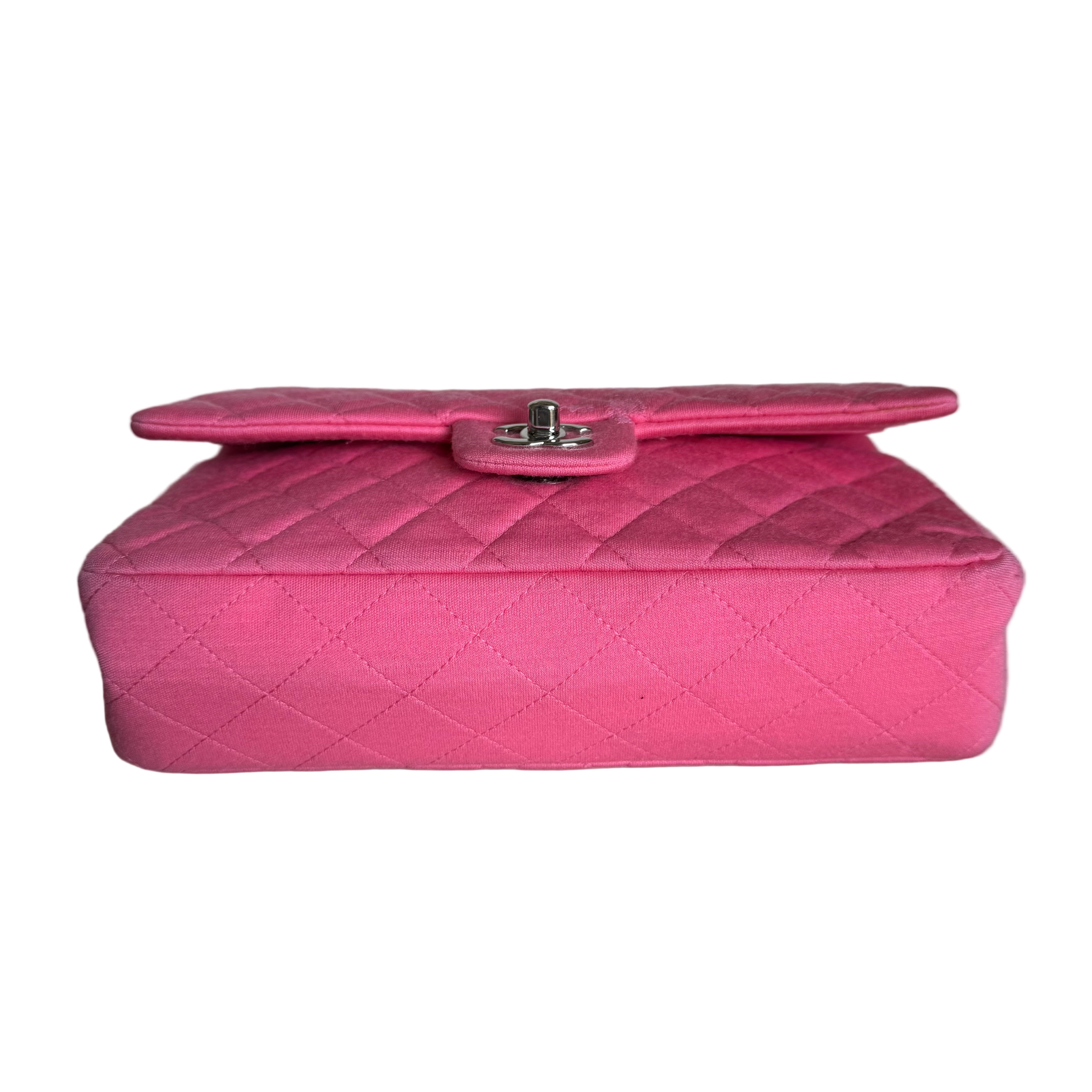 Chanel Classic Flap Medium Double Flap Pink Jersey Silver Hardware 2014