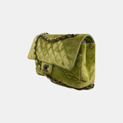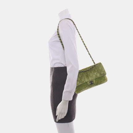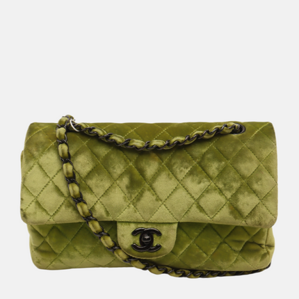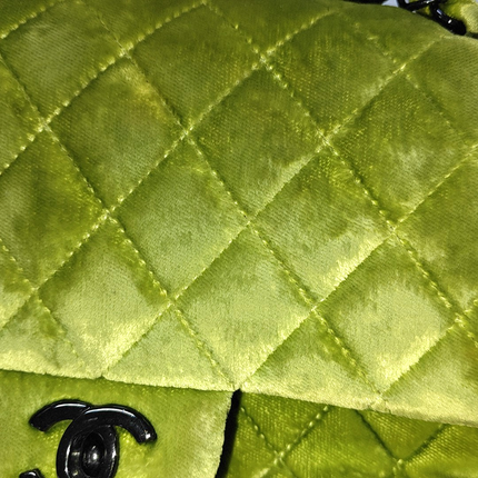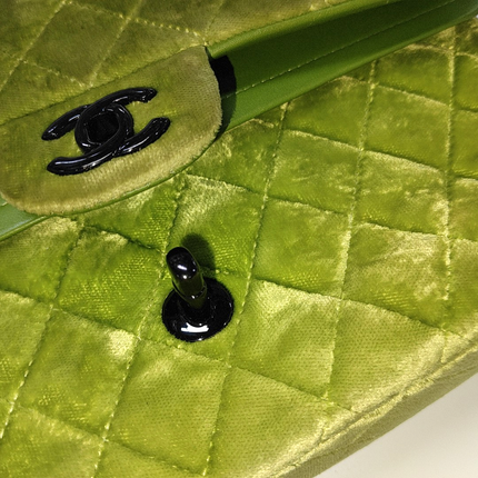 Chanel Classic Flap Medium Green Velvet Black Hardware, 2014-2015