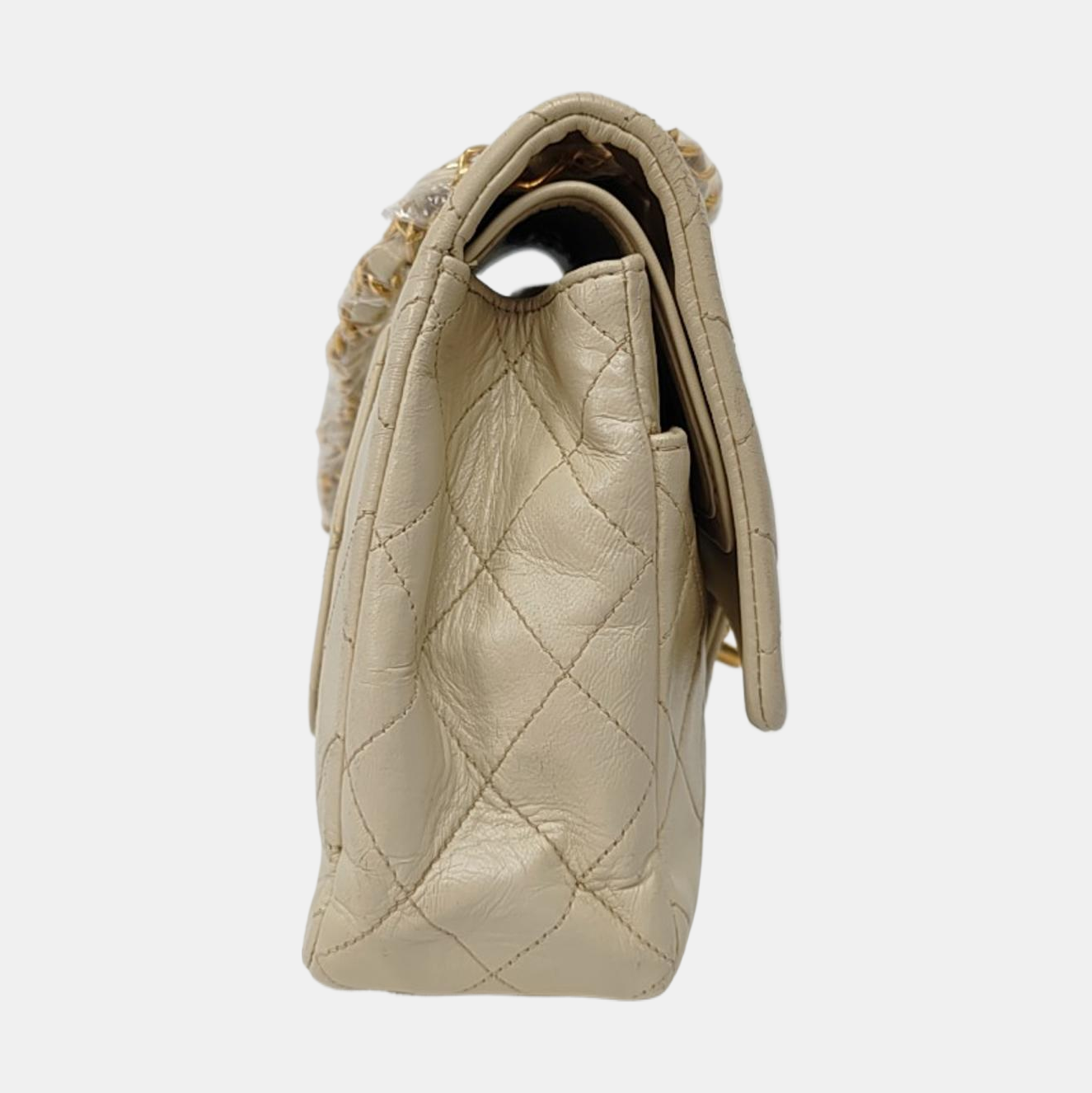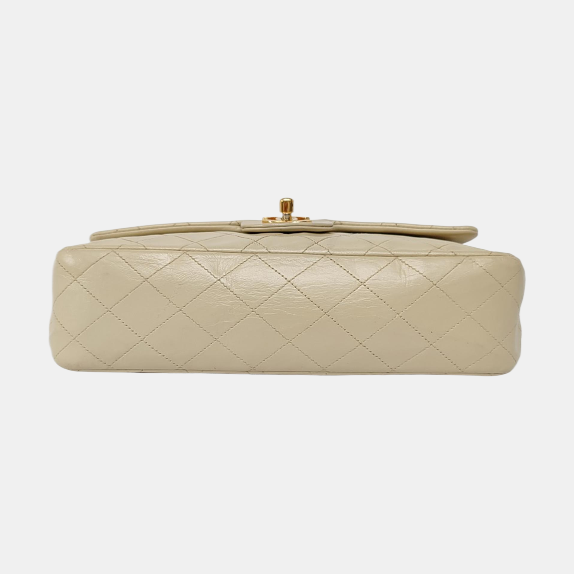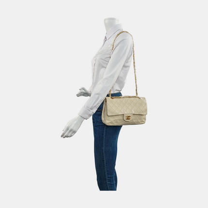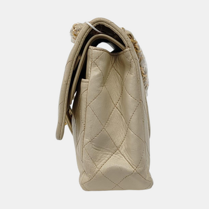 Chanel Classic Flap Medium Light Beige Lambskin Leather with Gold Hardware 1991-1994