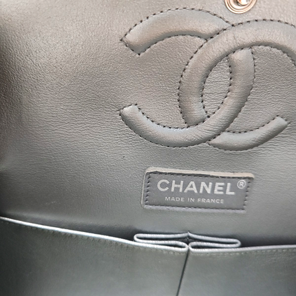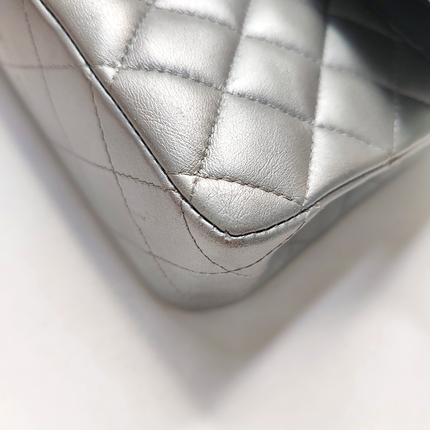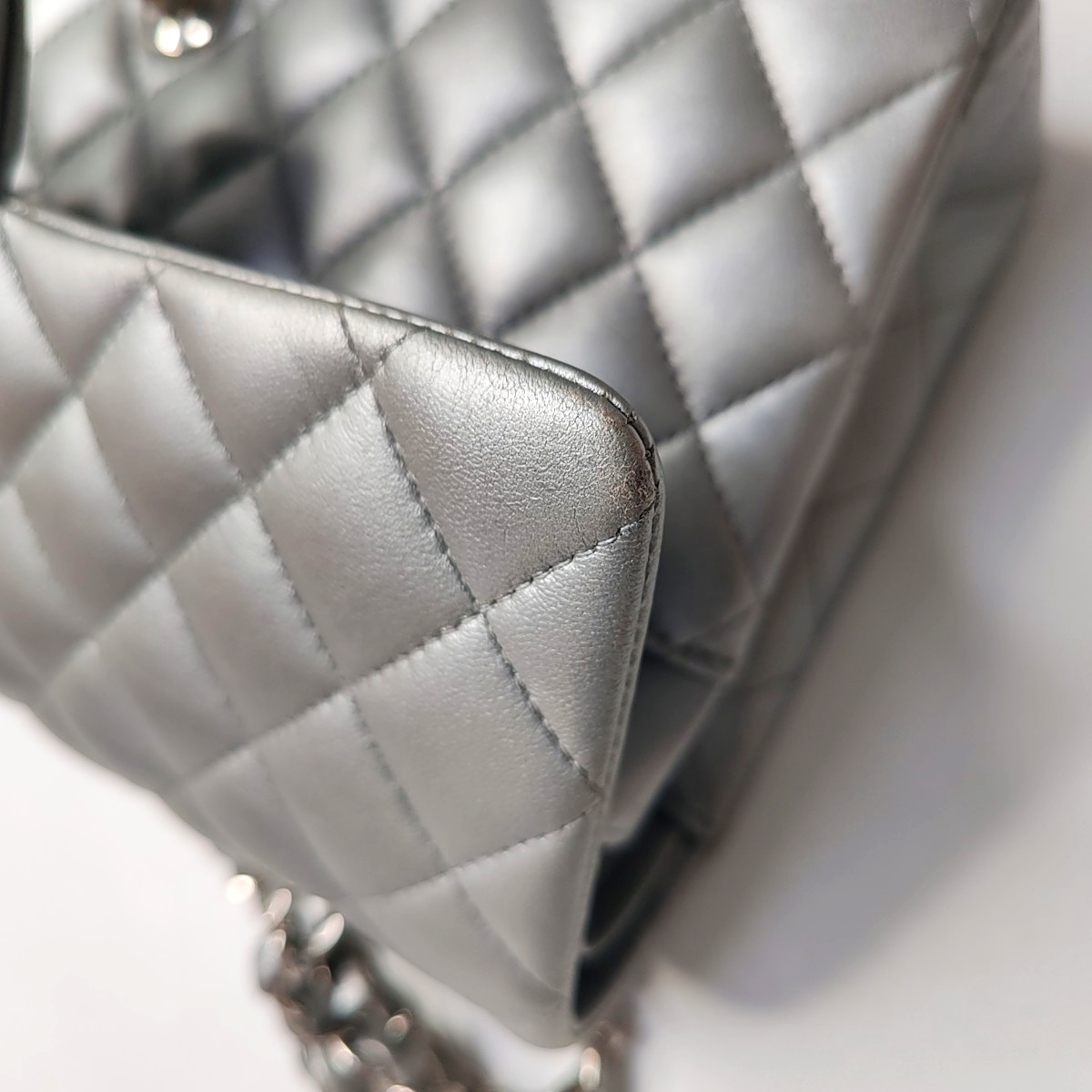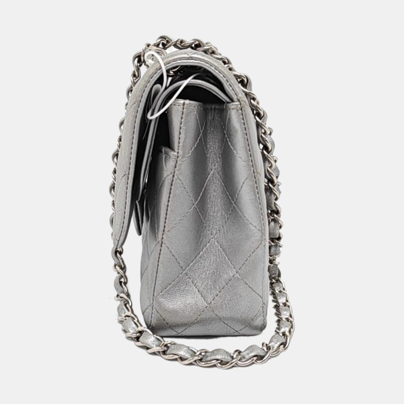 Chanel Classic Flap Medium Silver Grey Lambskin Leather Silver Hardware