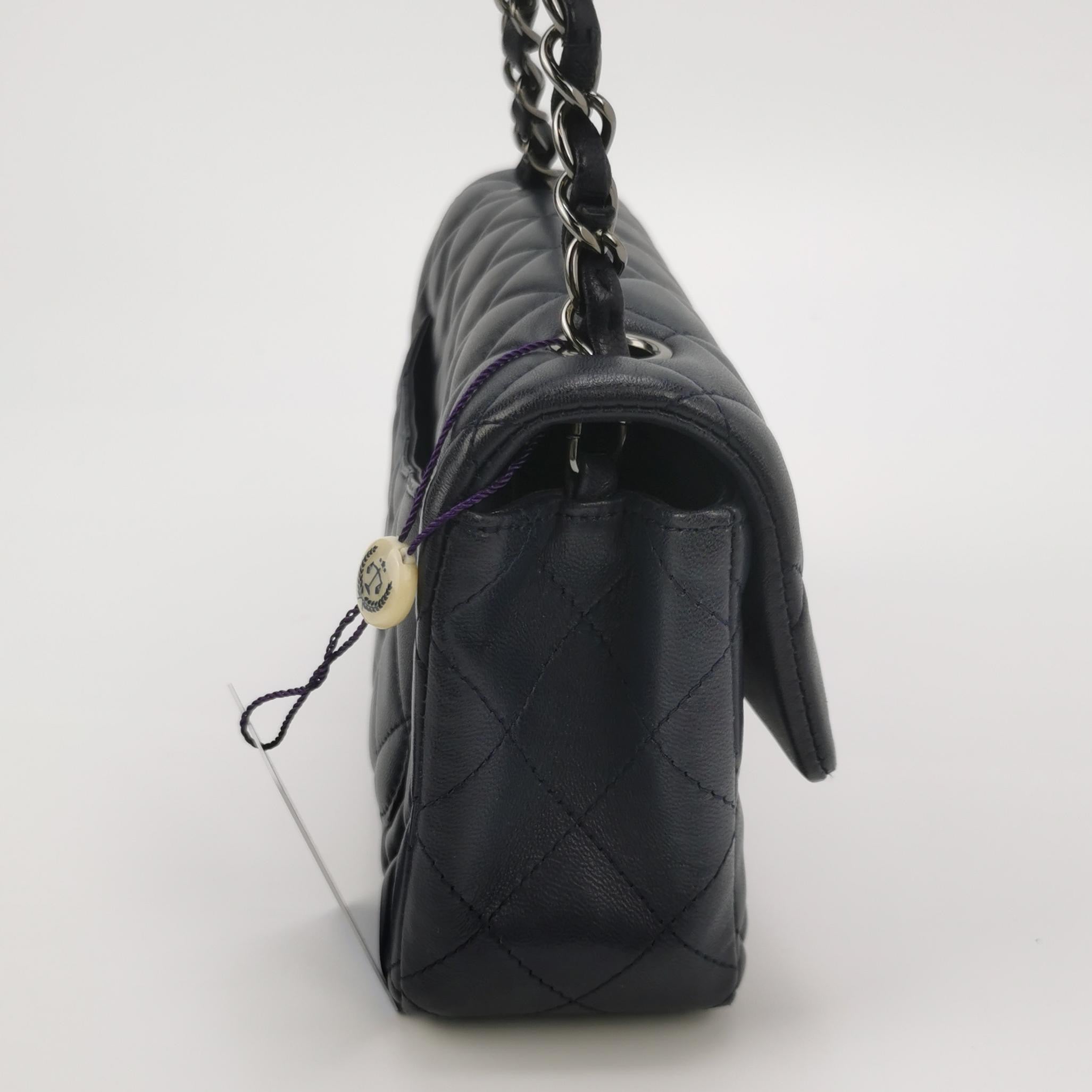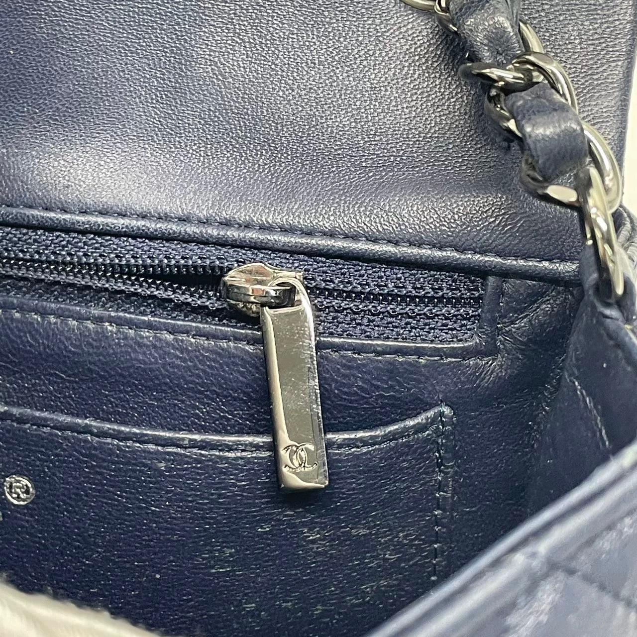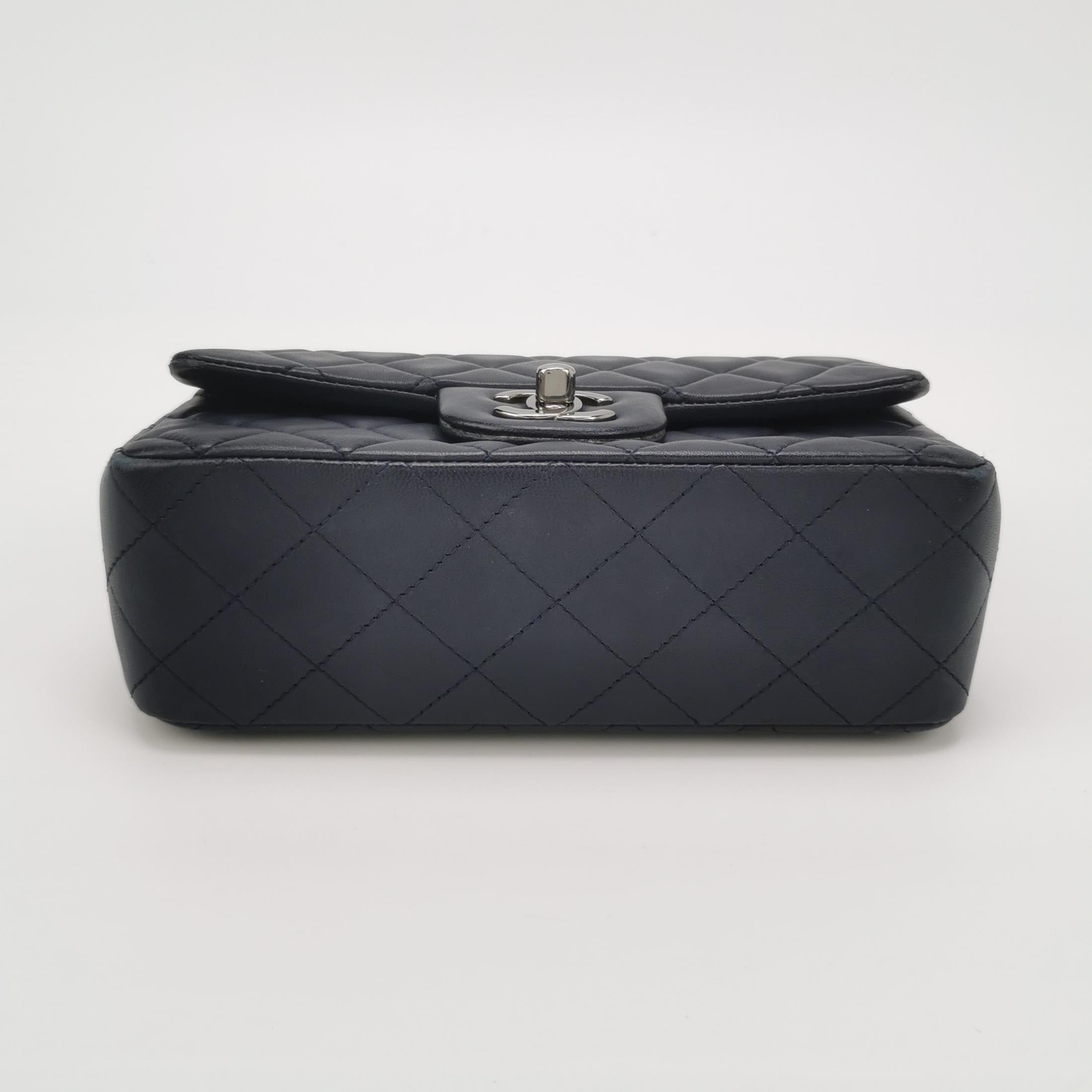 Chanel Classic Flap Mini 2014 Navy Lambskin Leather Silver Hardware