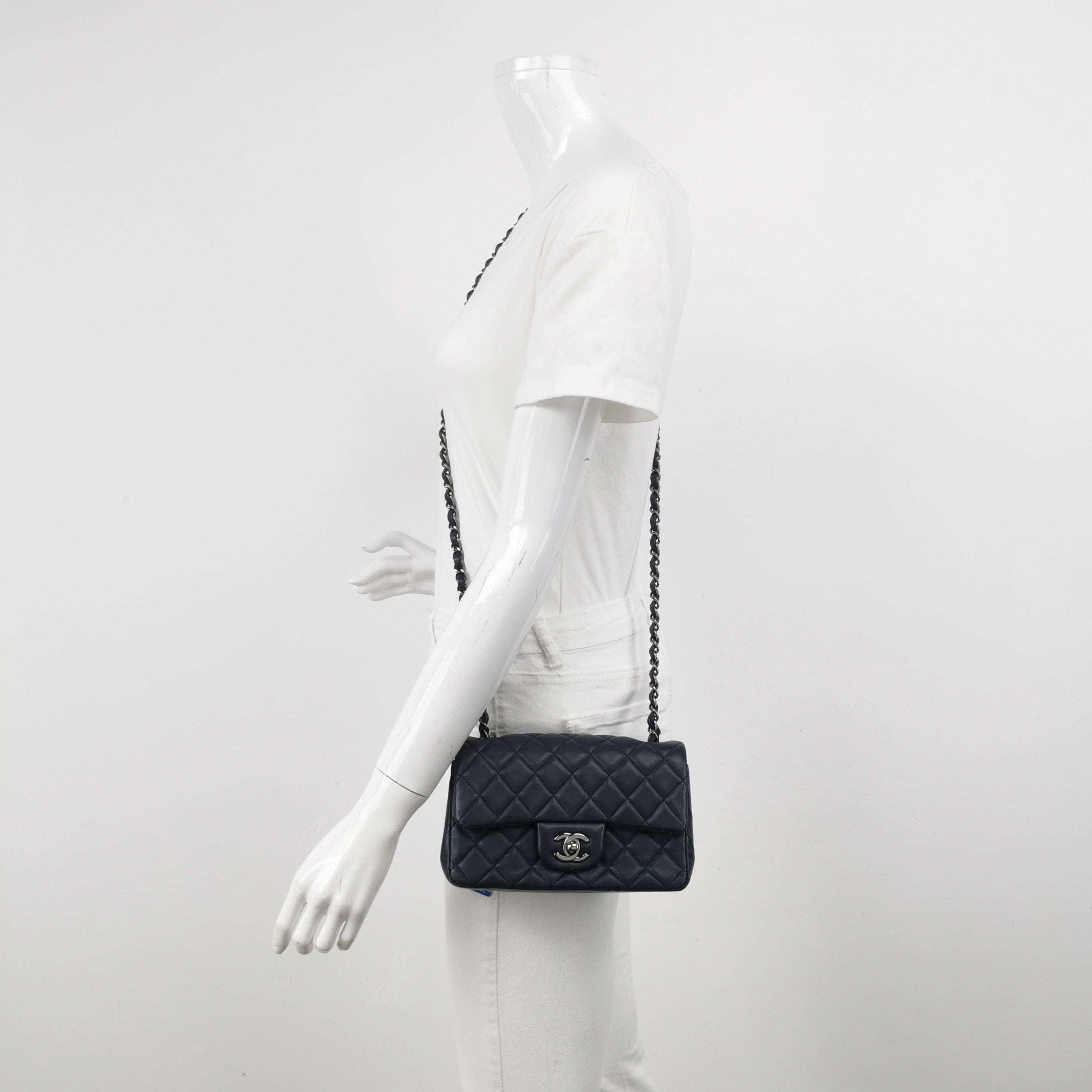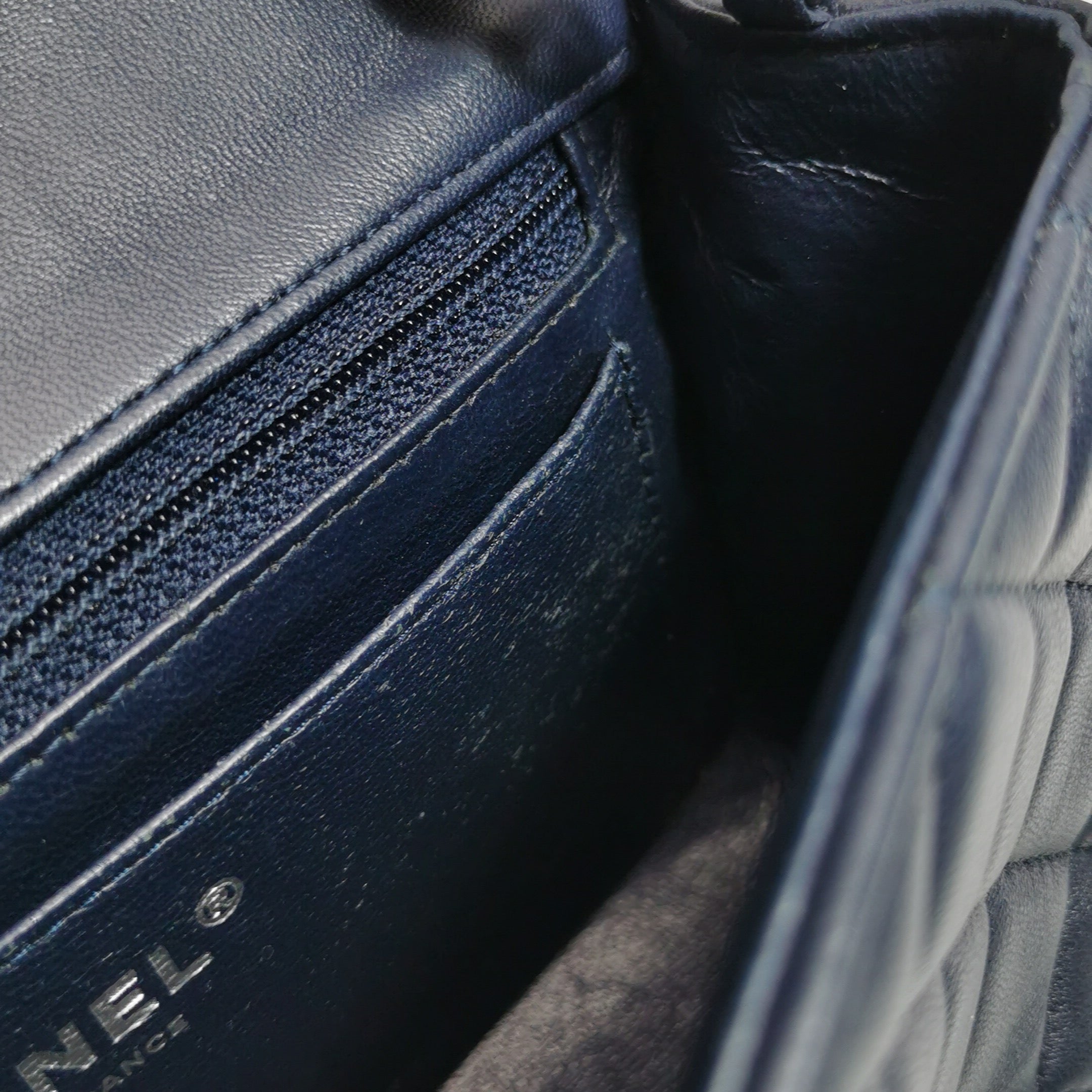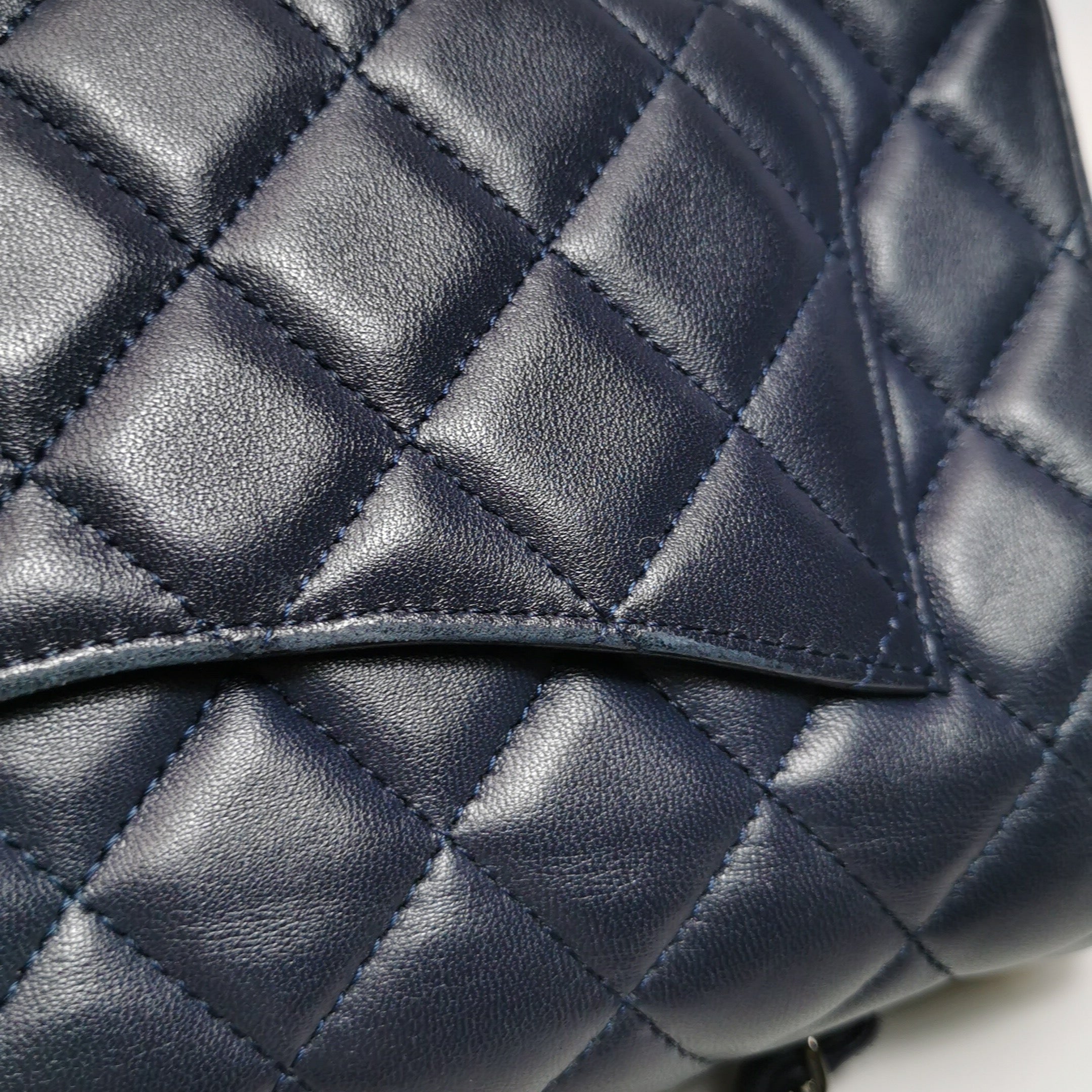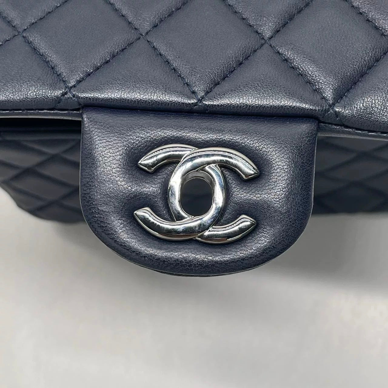 Chanel Classic Flap Mini 2014 Navy Lambskin Leather Silver Hardware
