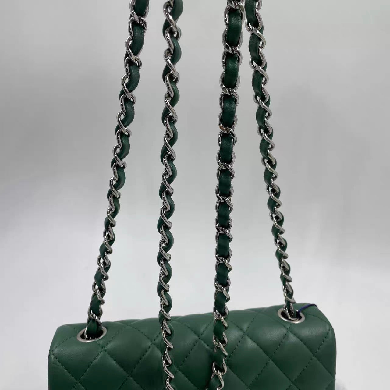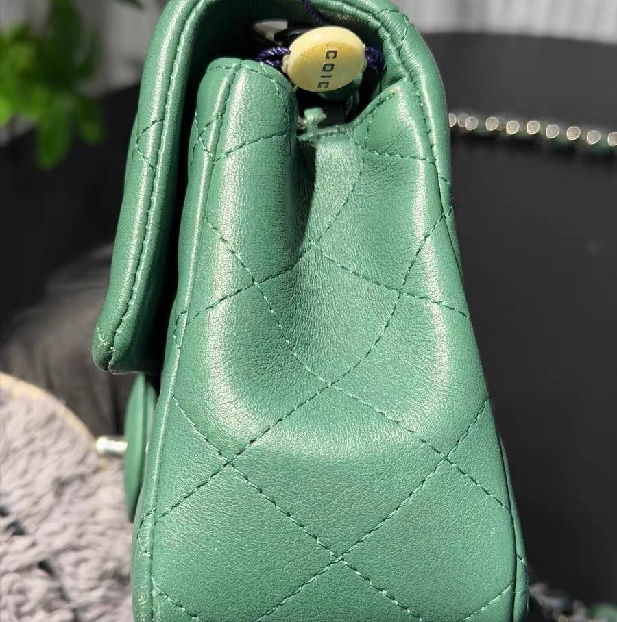 Chanel Classic Flap Mini 2019 Green Lambskin Leather Silver Hardware