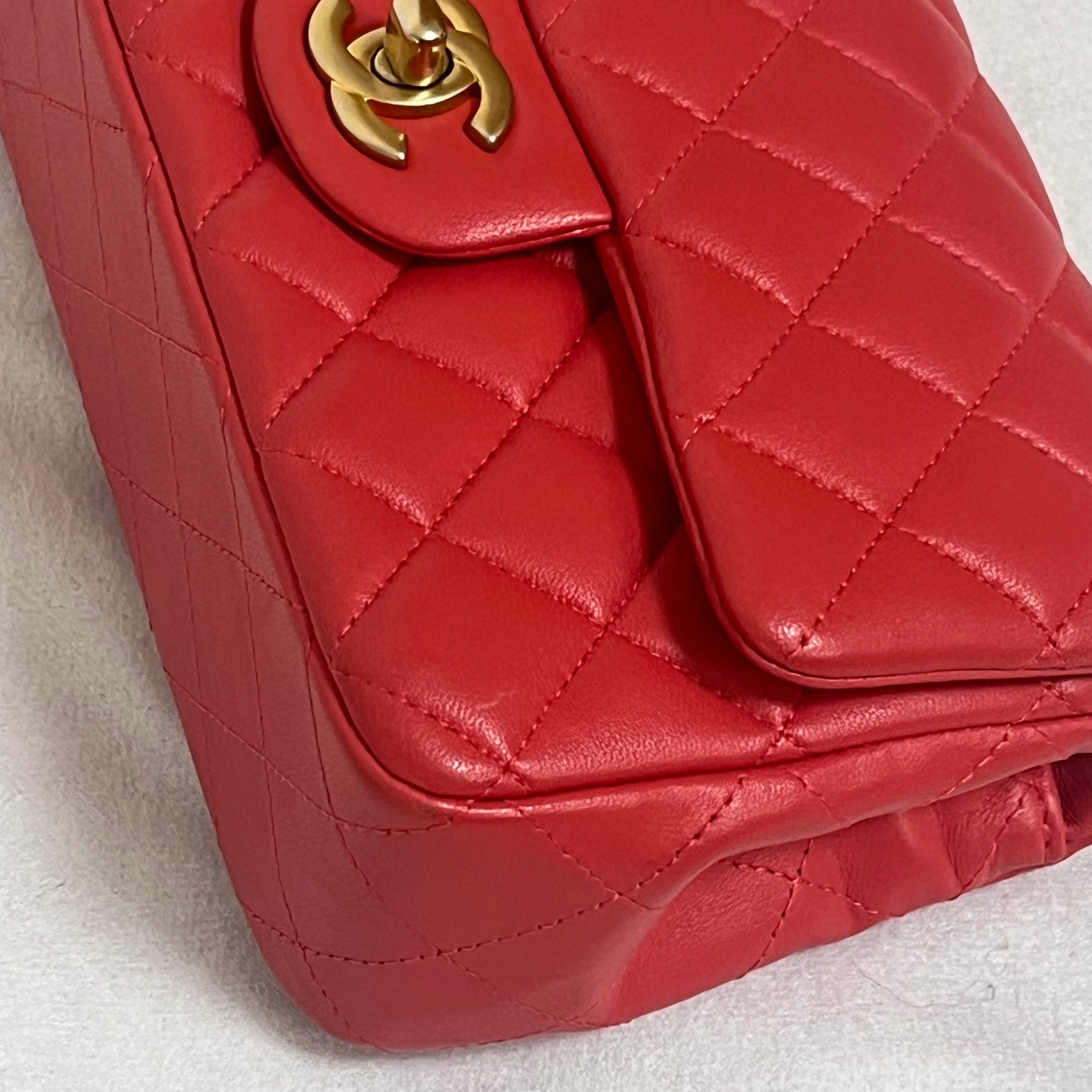 Chanel Classic Flap Mini 2019 Red Lambskin Leather Gold Hardware