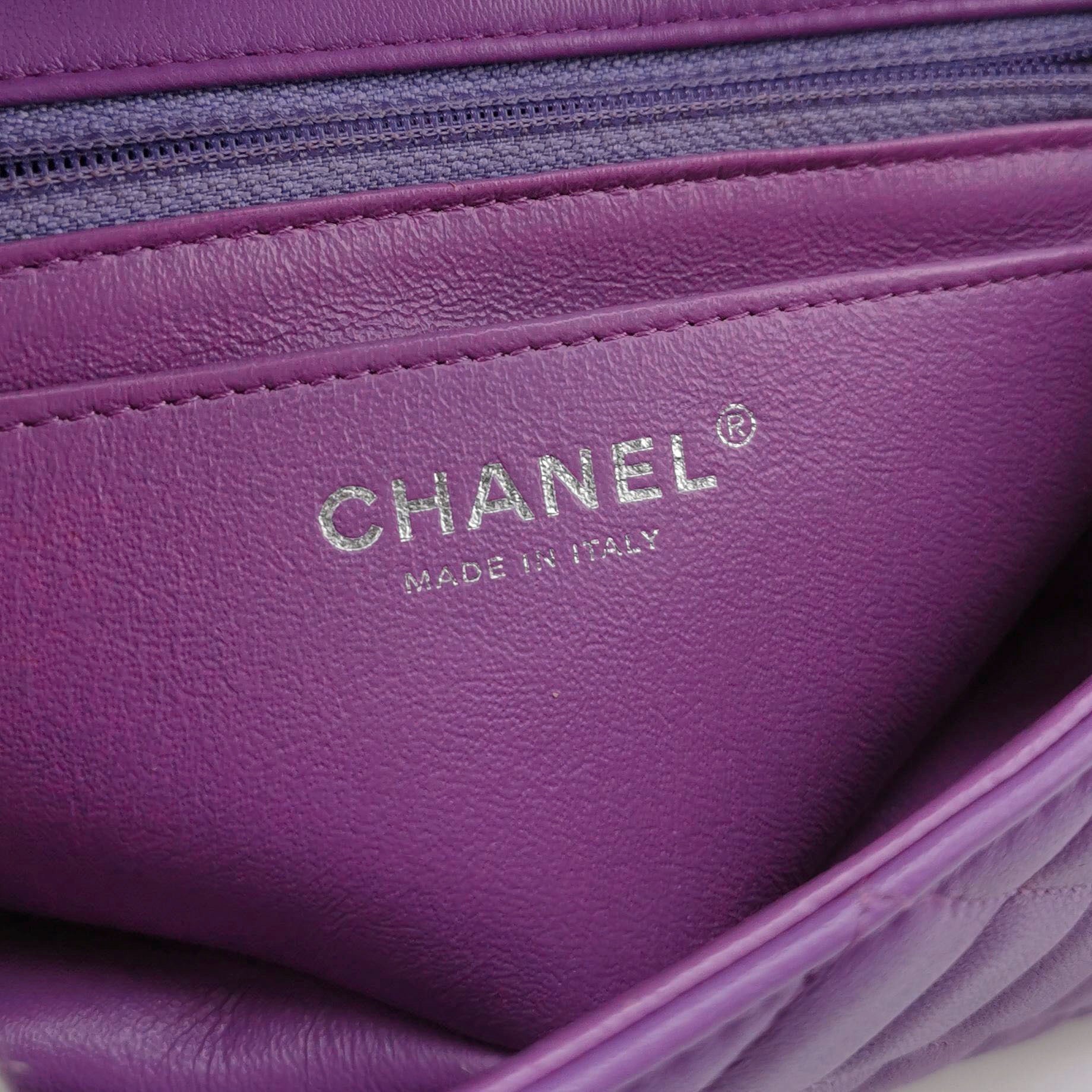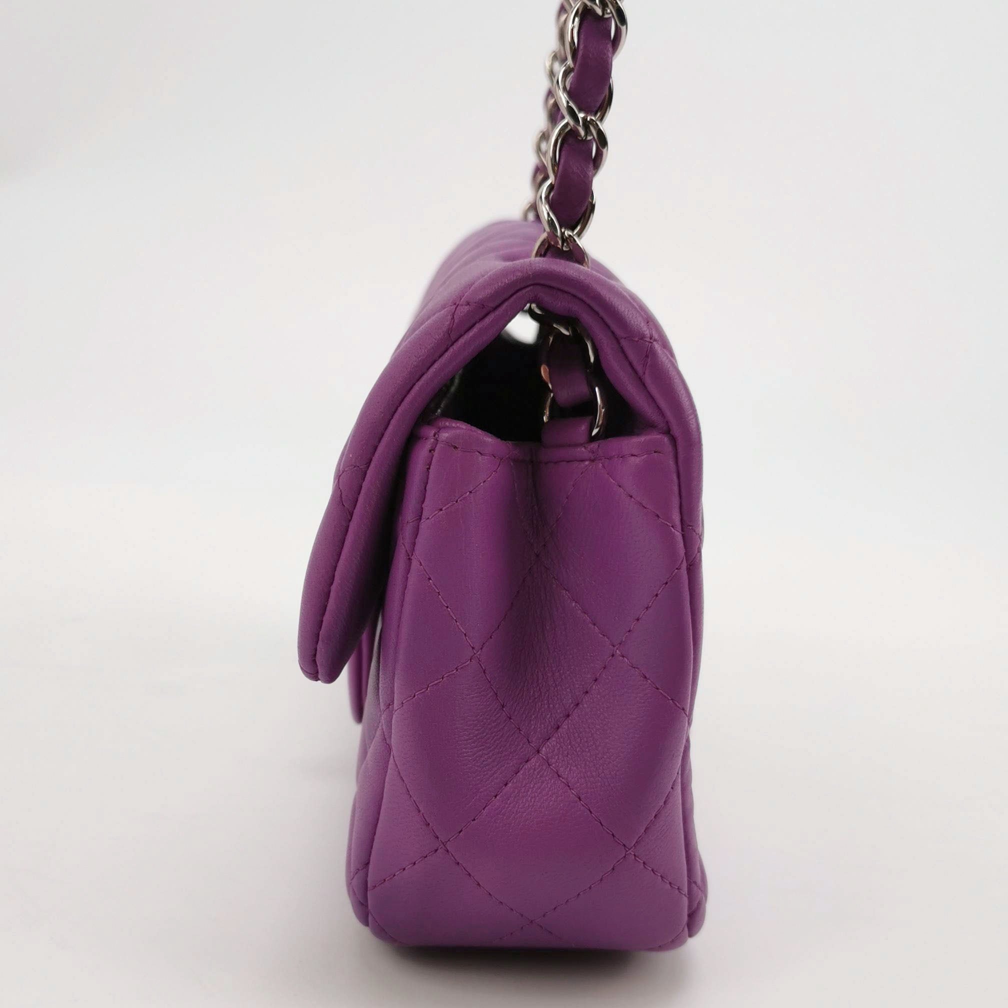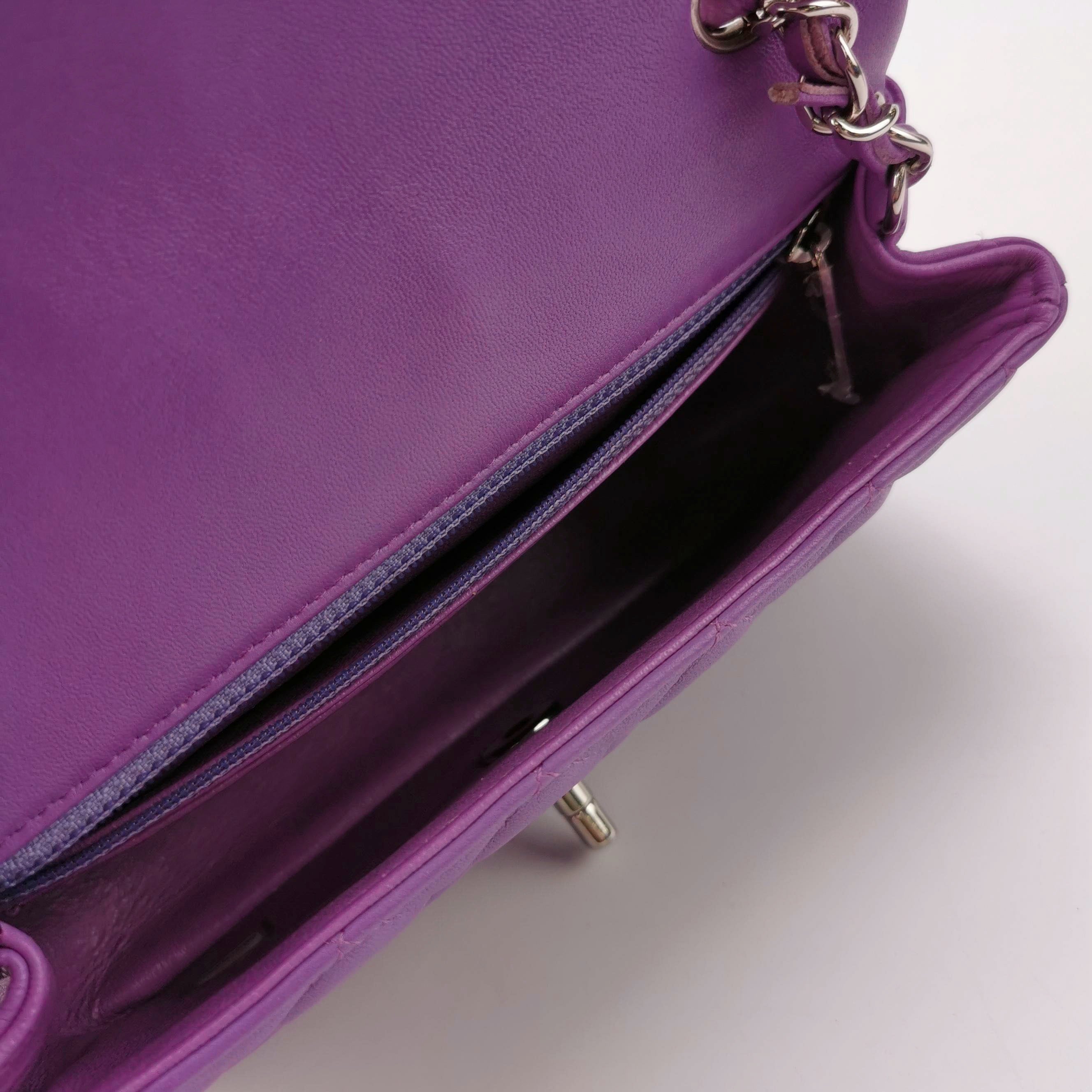 Chanel Classic Flap Mini Purple Lambskin Leather Silver Hardware