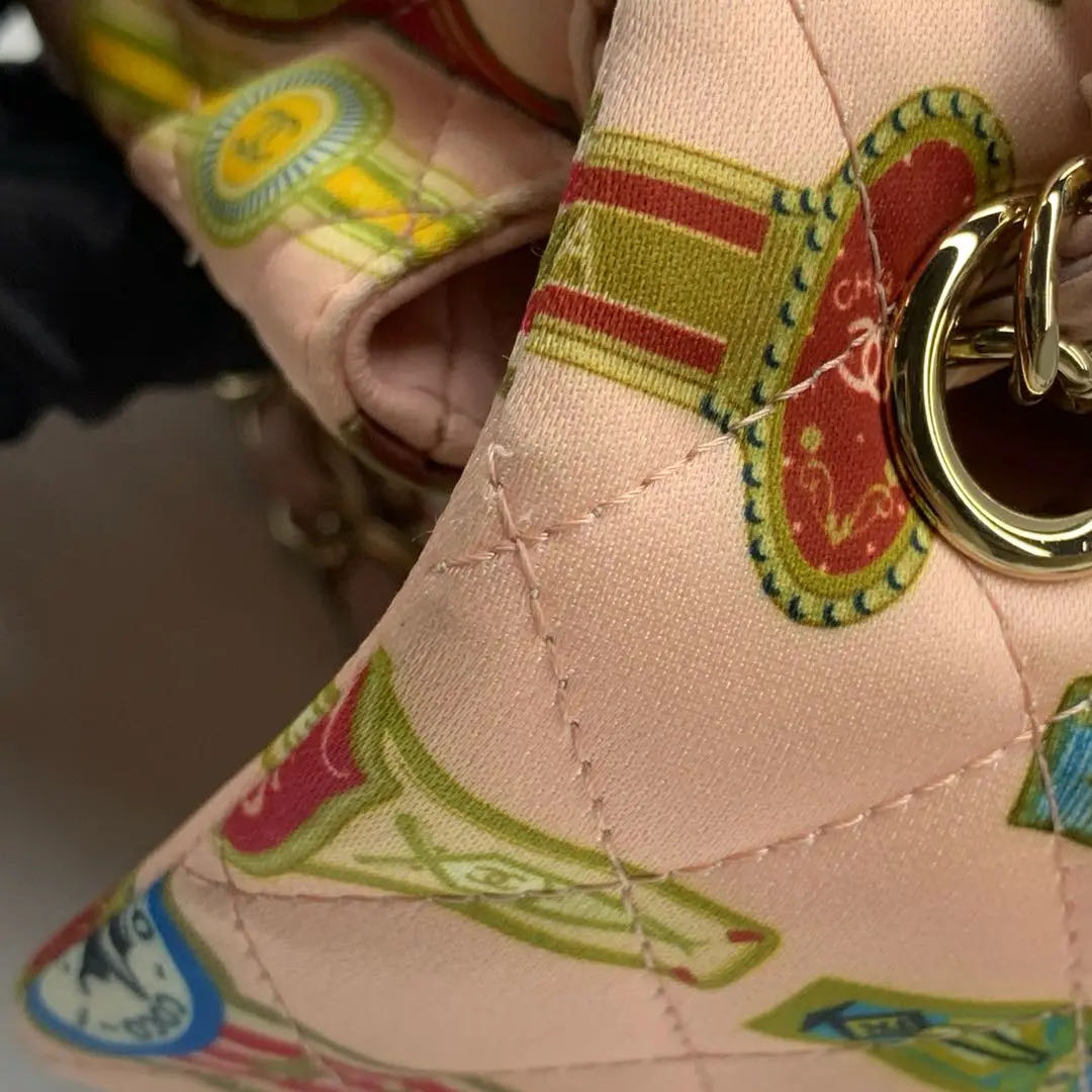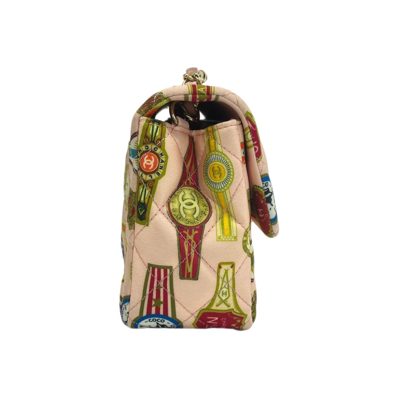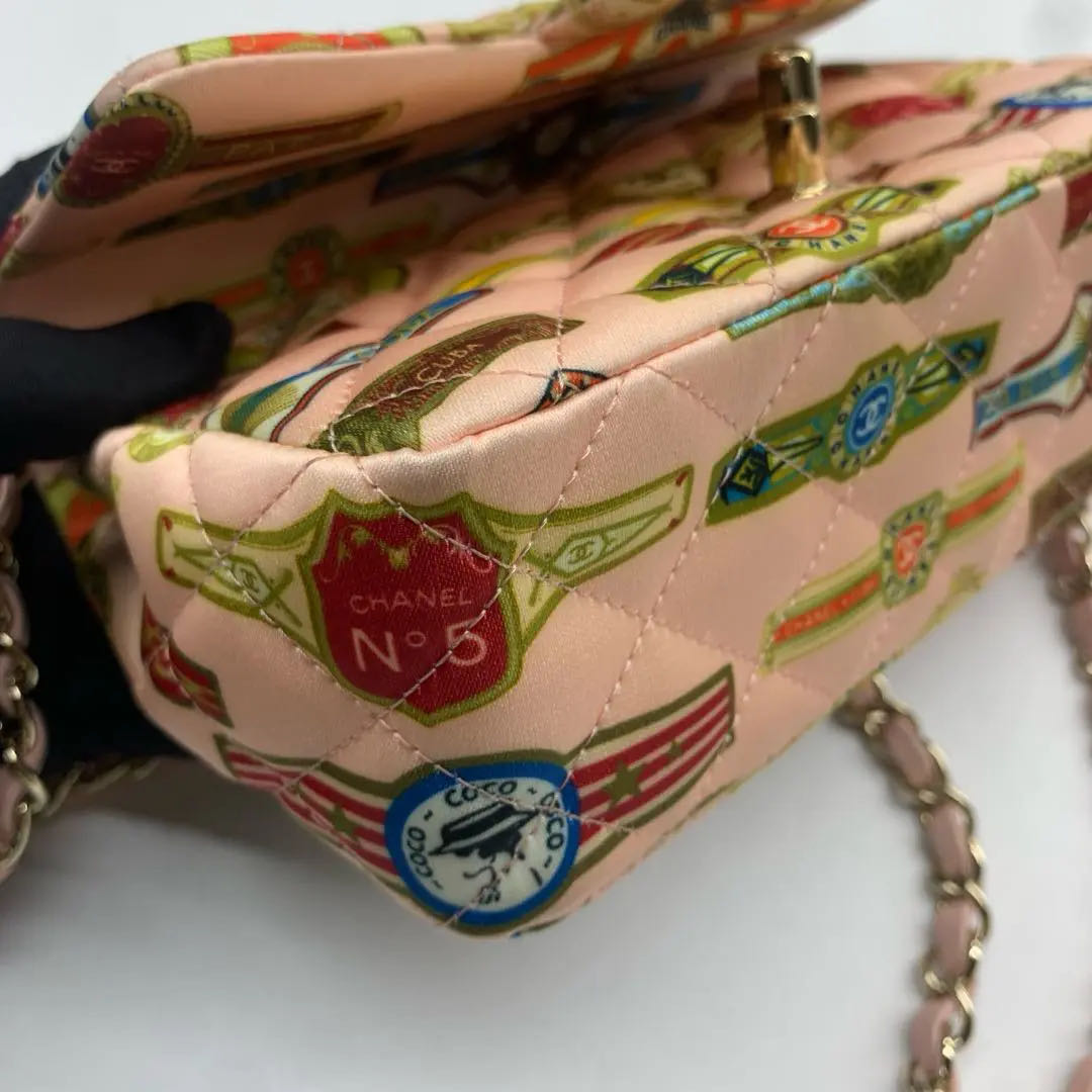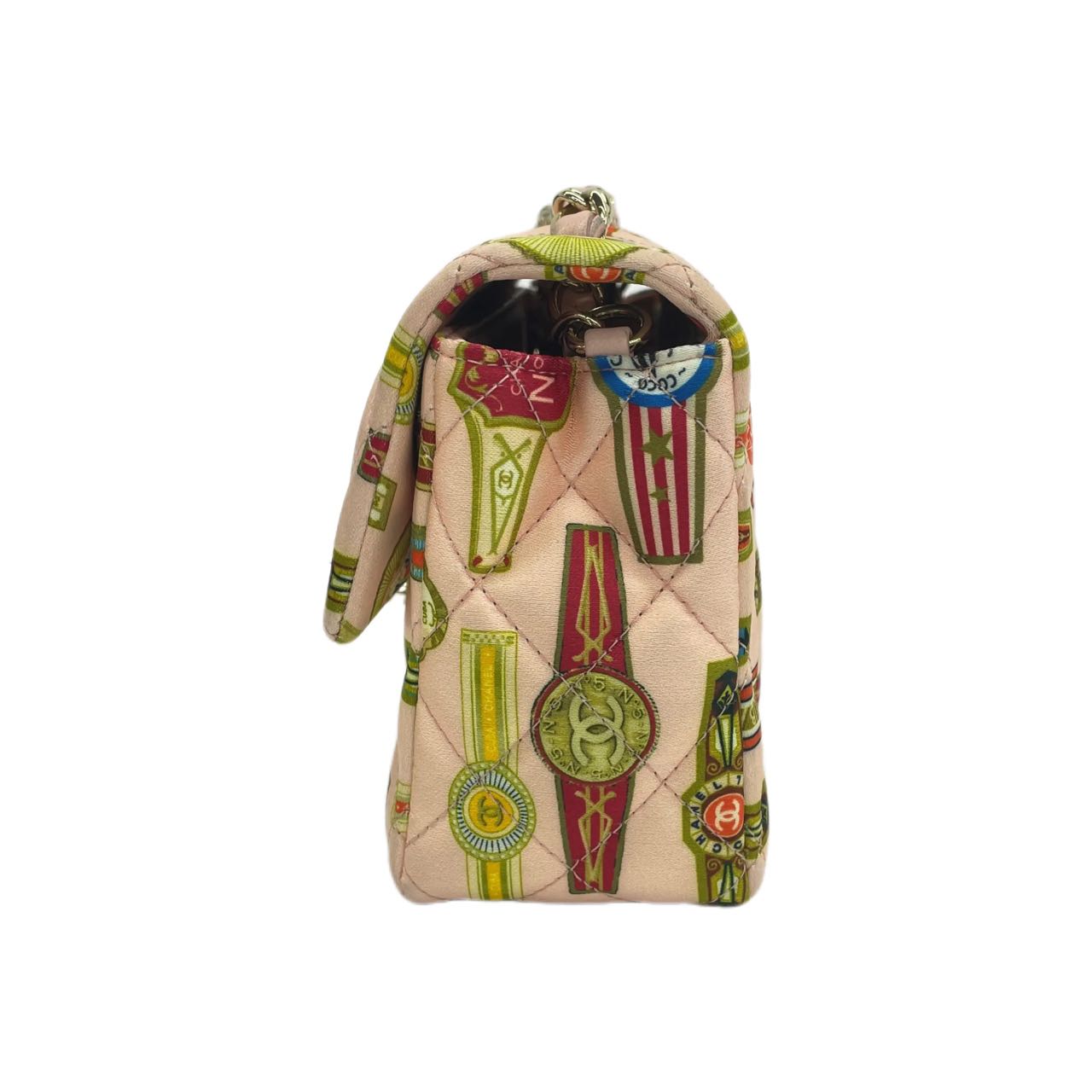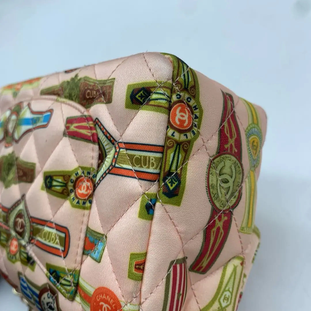 Chanel Classic Flap Mini Satin Paris Cuba Cigar Label Print Pink Multicolor, 2017