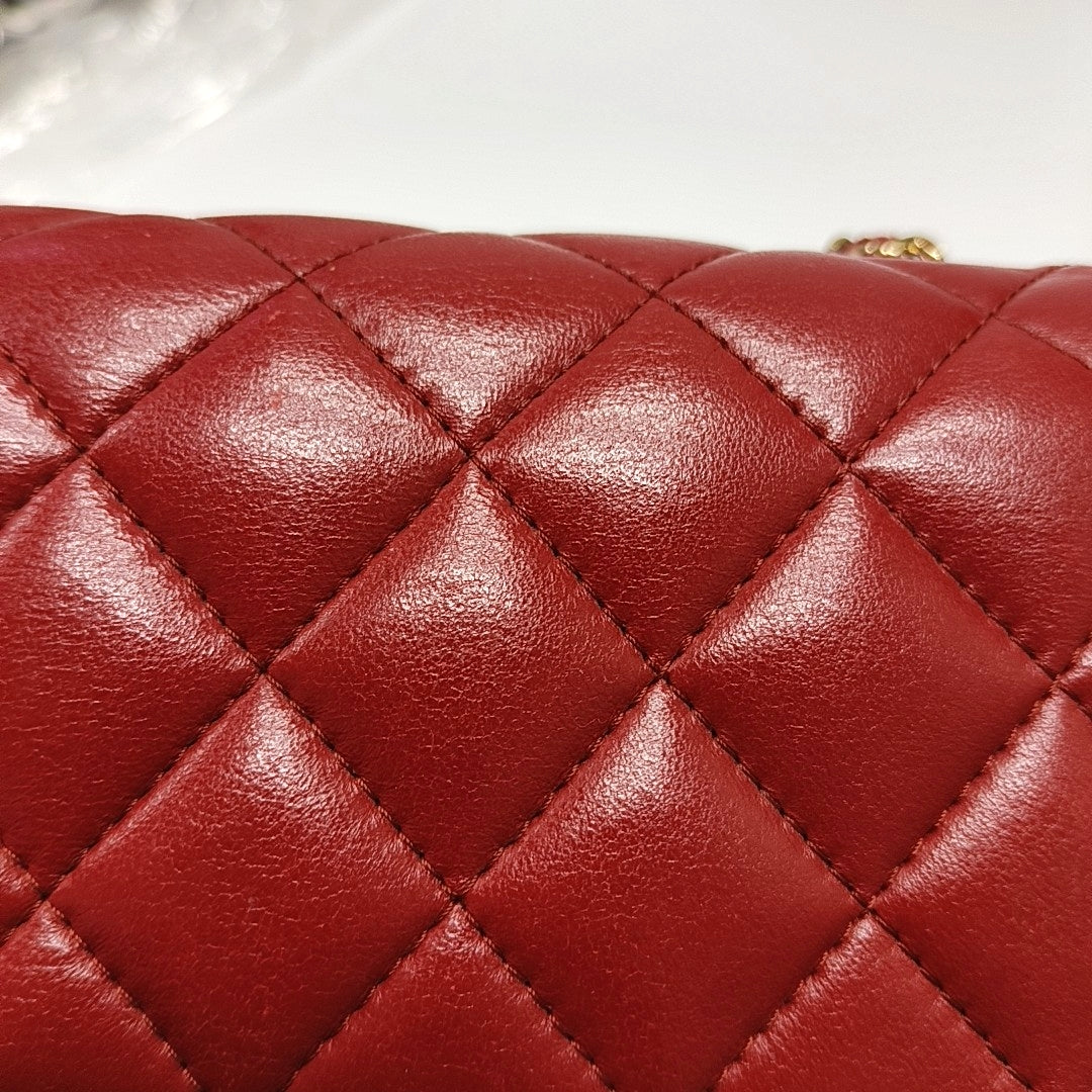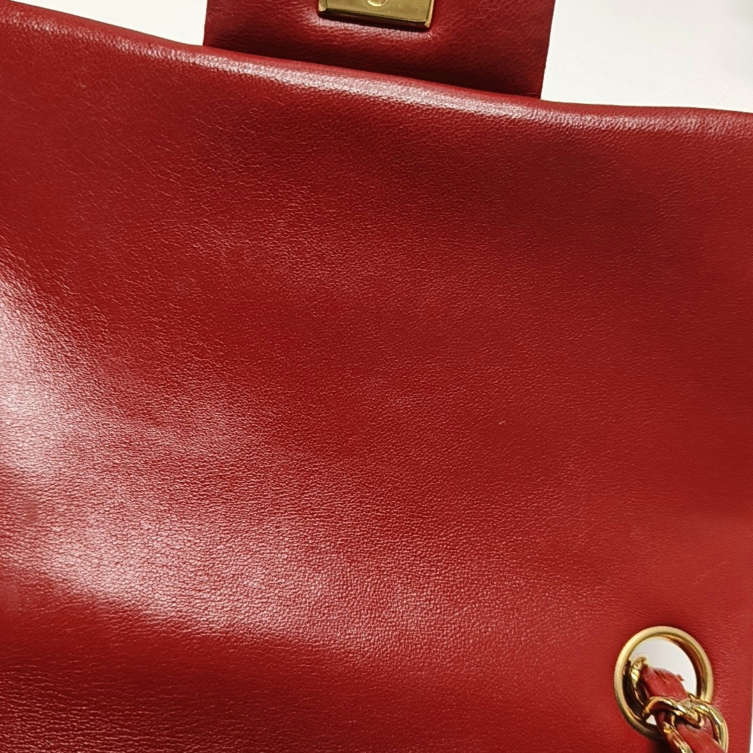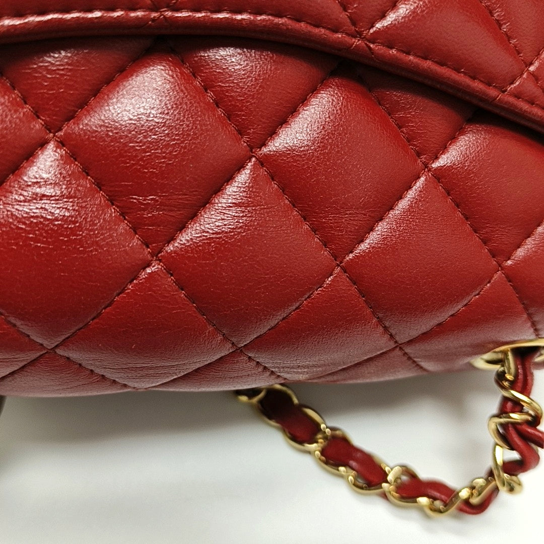 Chanel Classic Flap Mini Square Red Lambskin Leather Gold Hardware