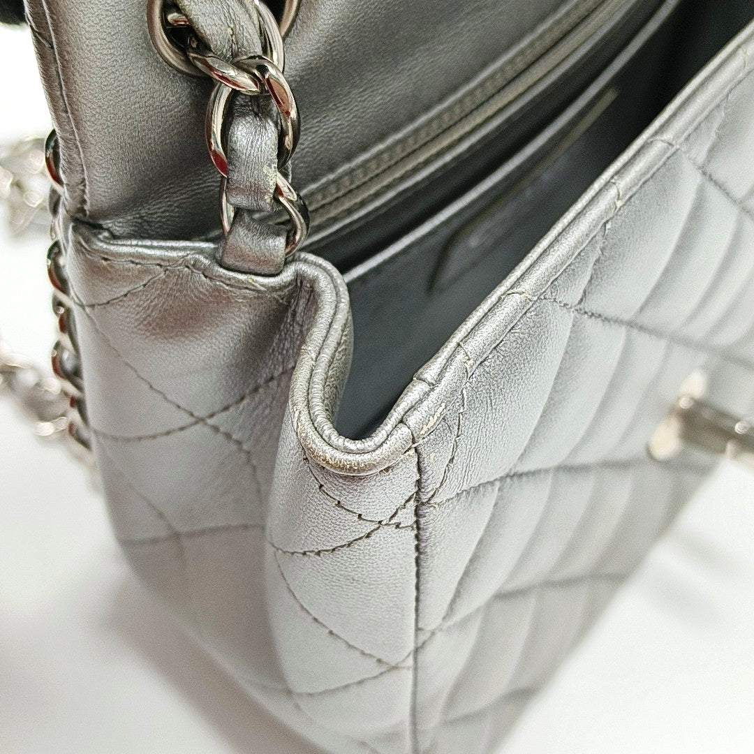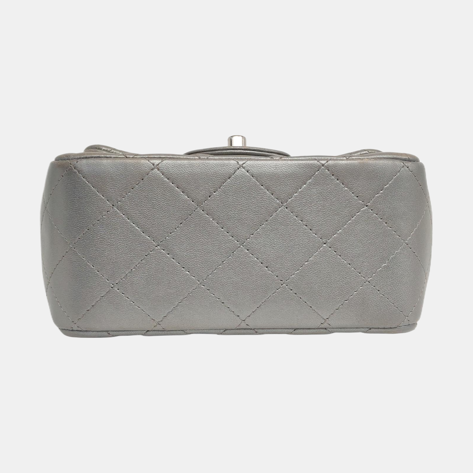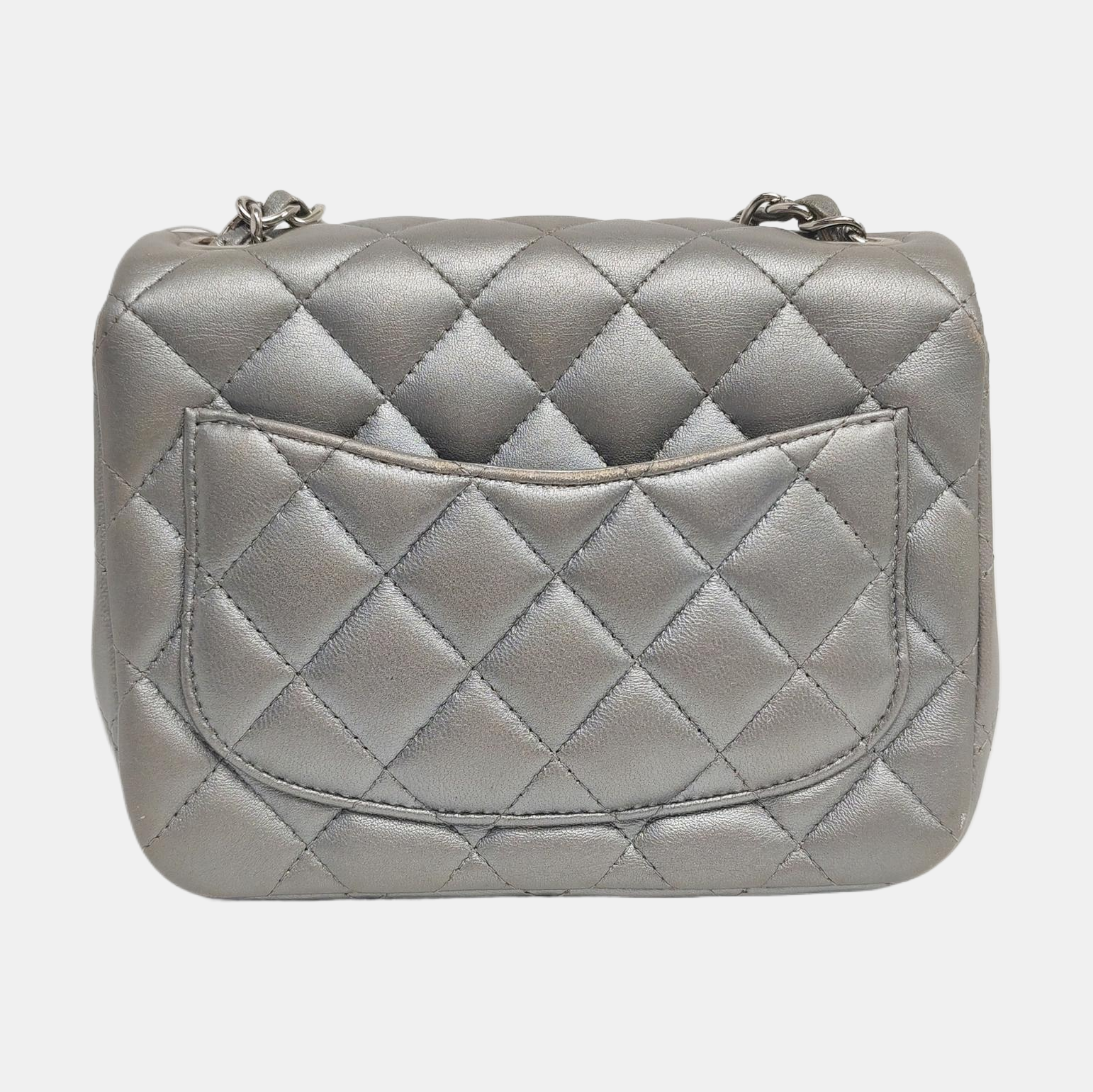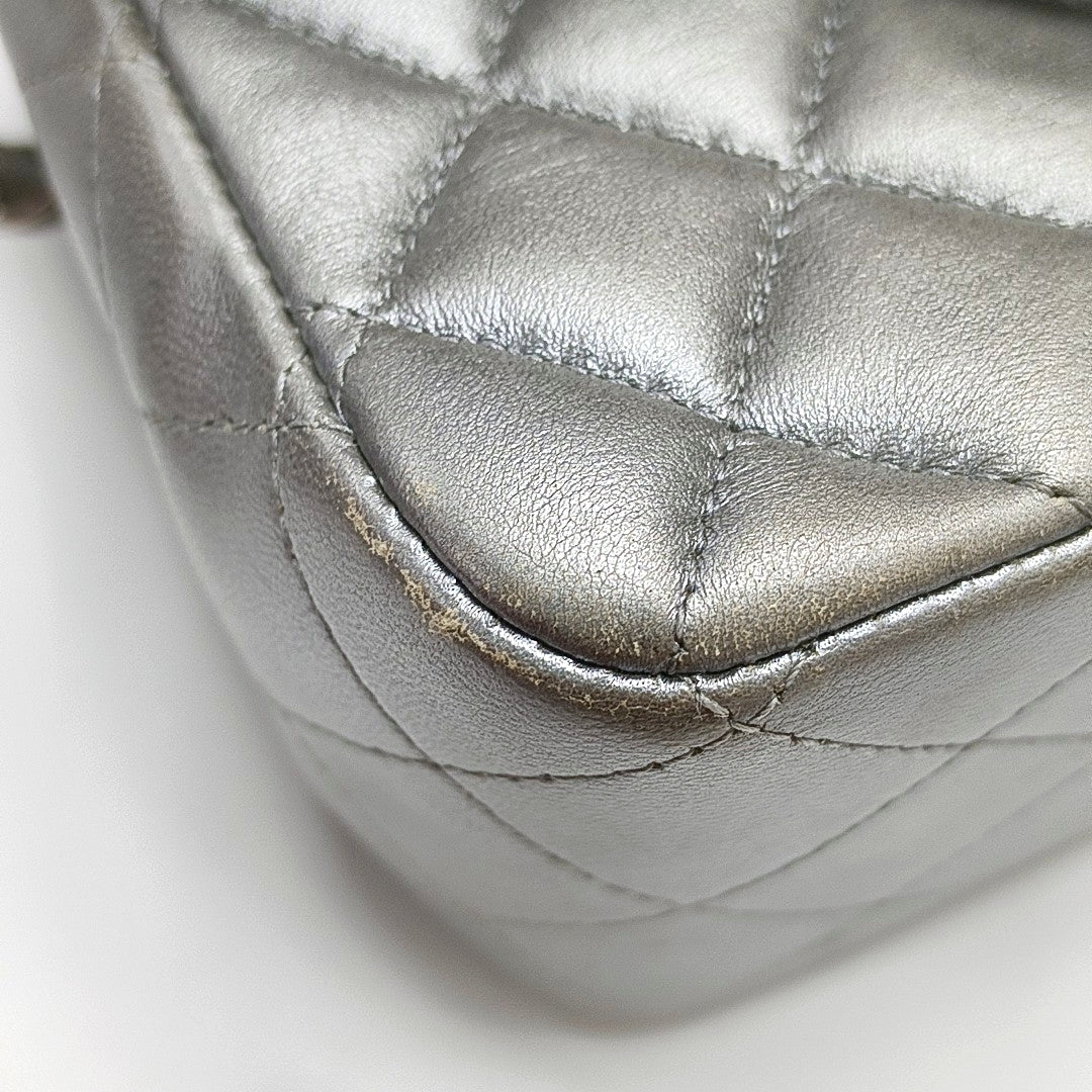 Chanel Classic Flap Mini Square Silver Lambskin Leather