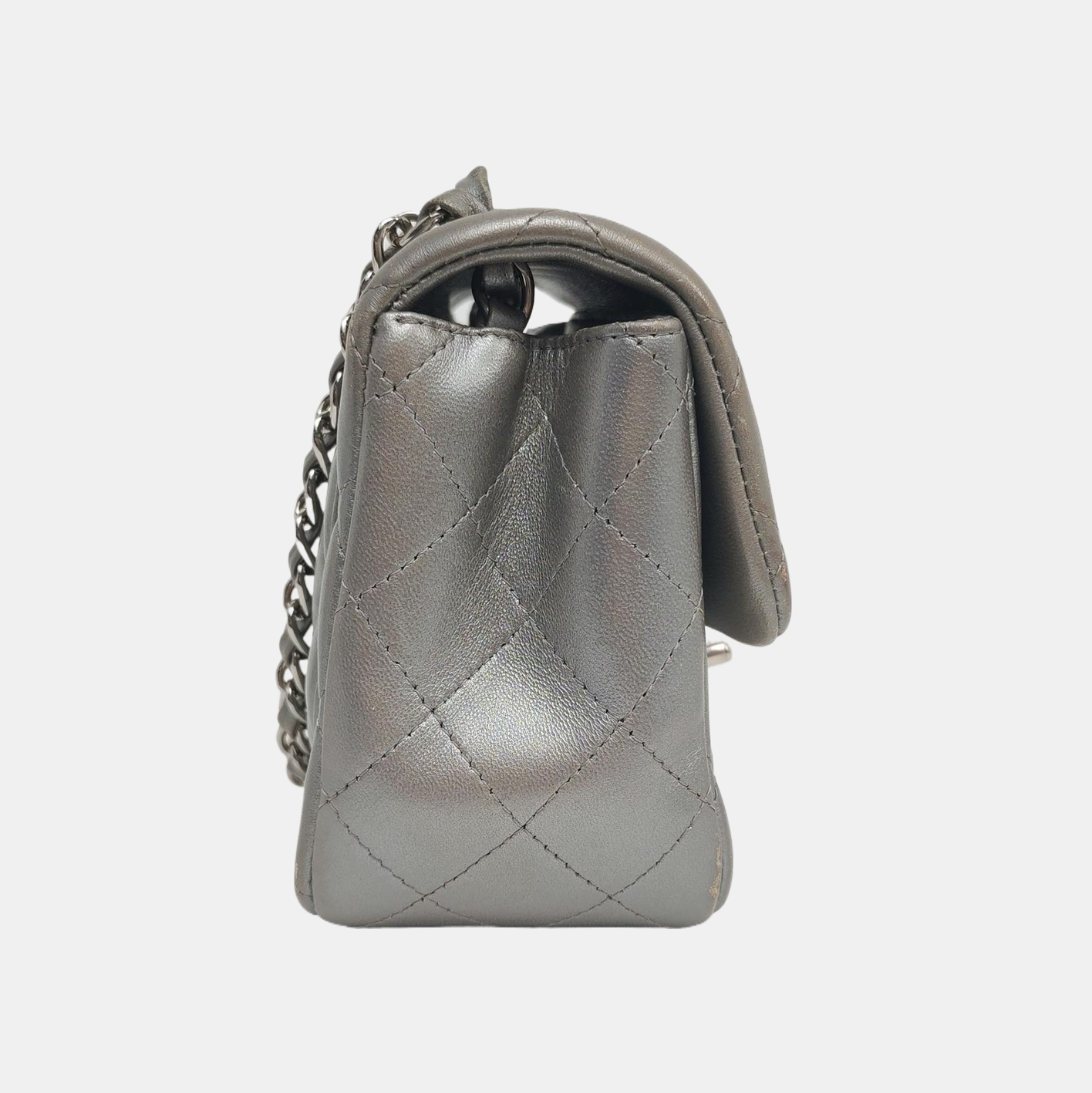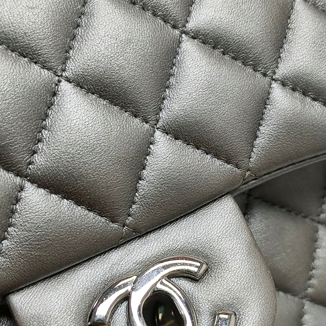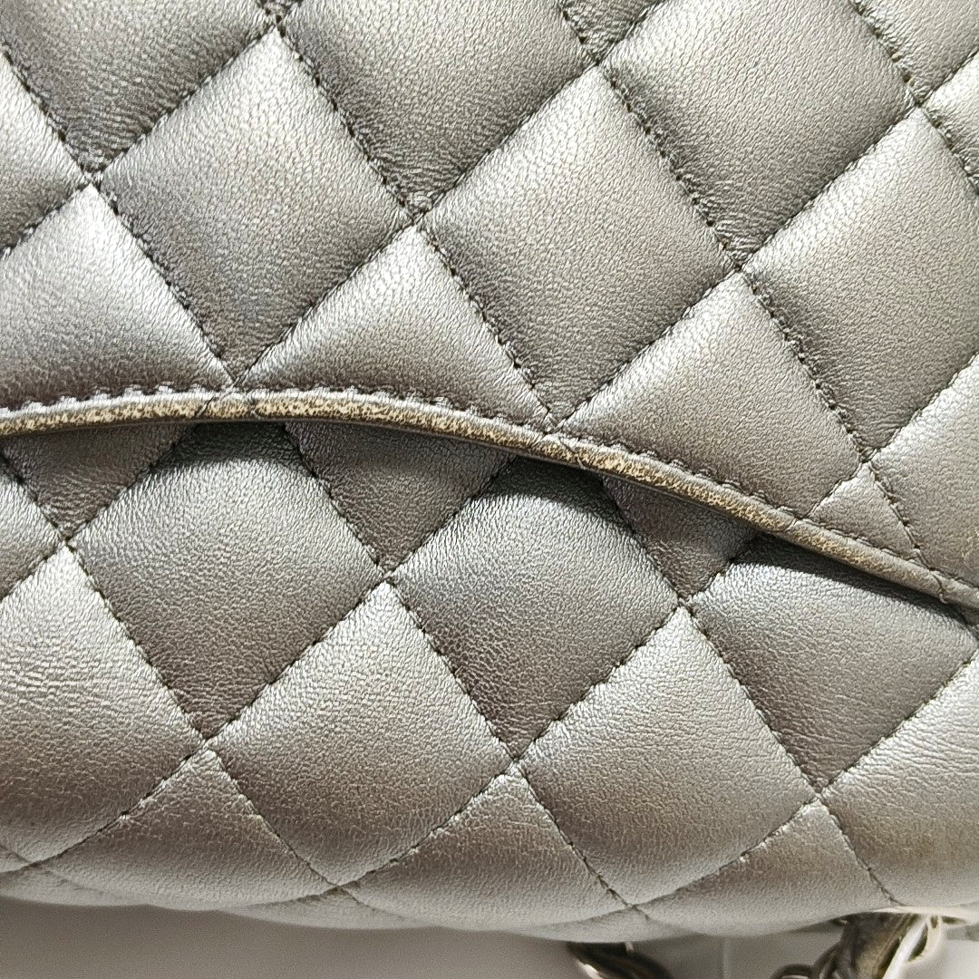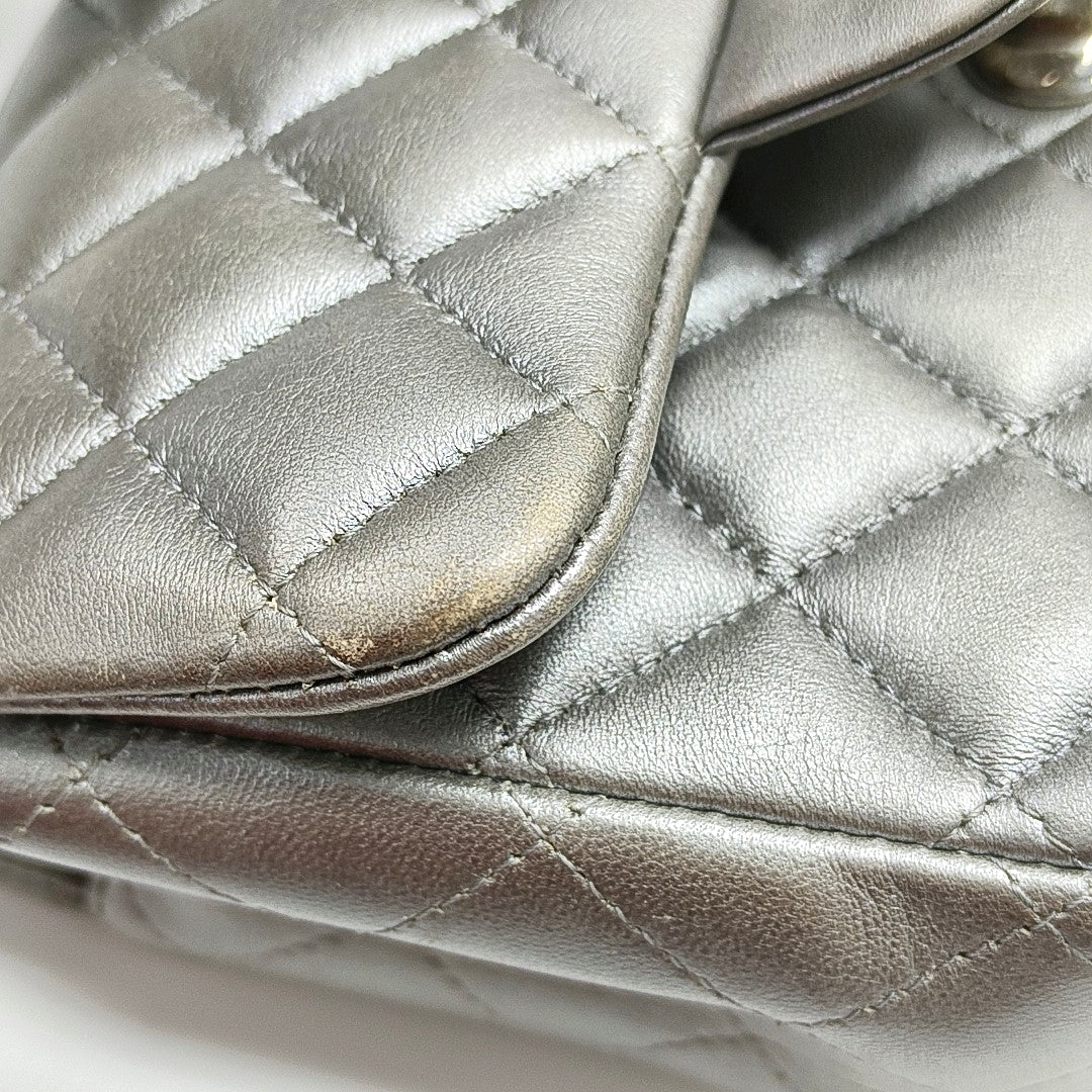 Chanel Classic Flap Mini Square Silver Lambskin Leather