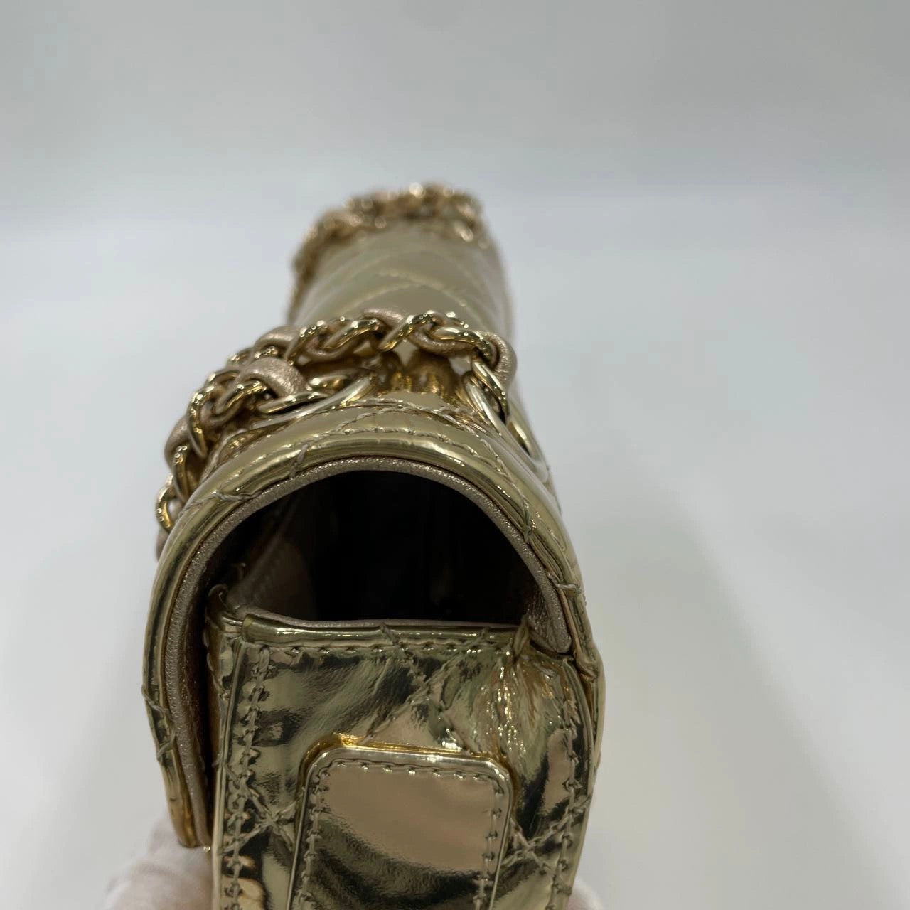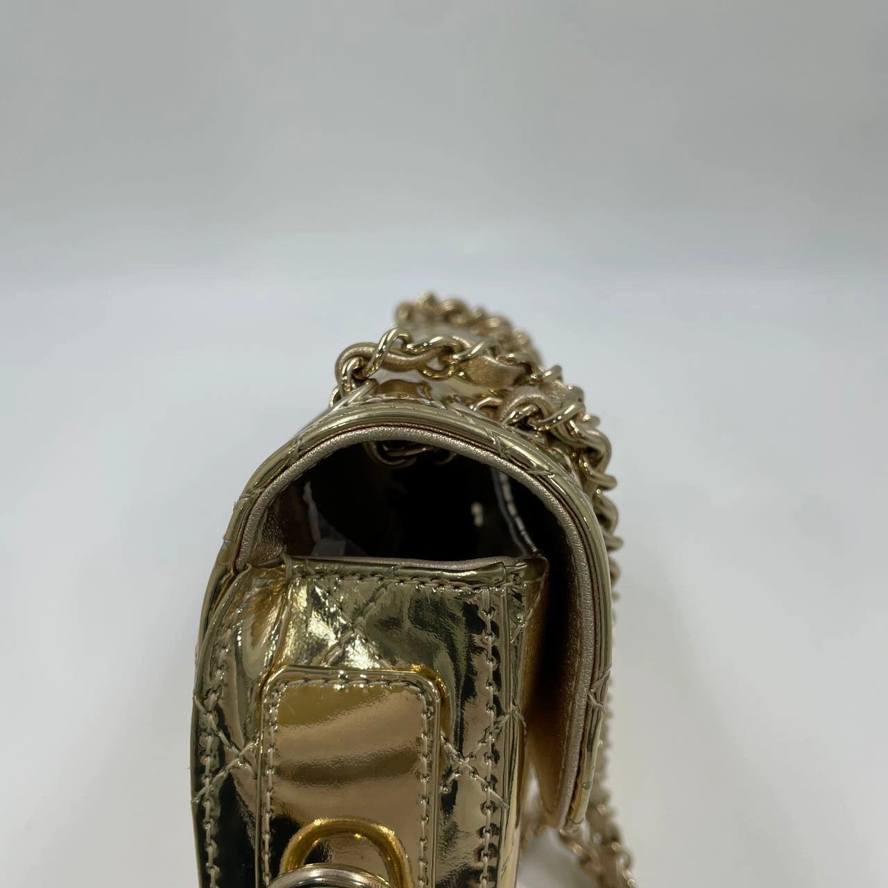 Chanel Classic Flap Mini Square Star Purse Gold Patent Calfskin Leather Mirror Glaze