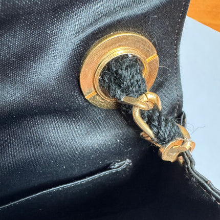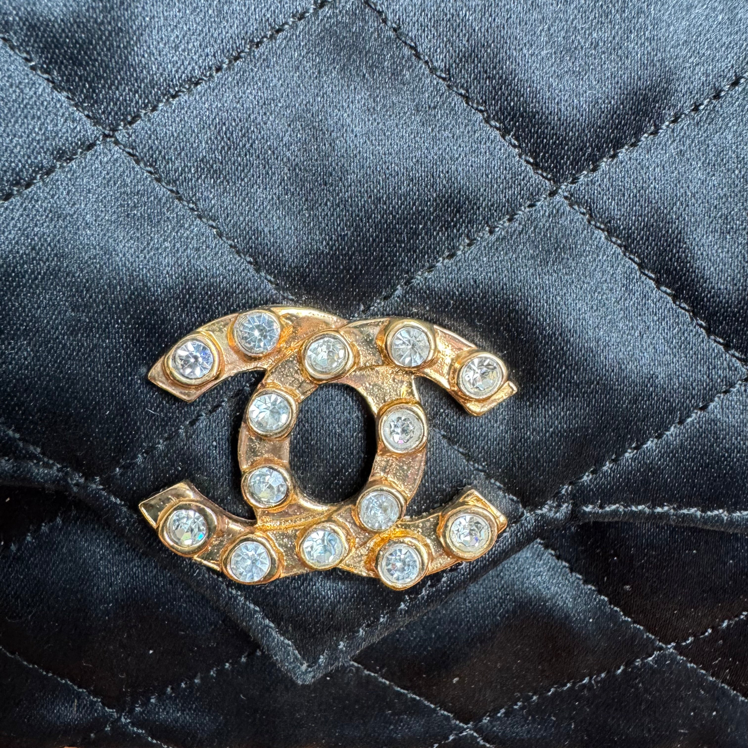 Chanel Classic Flap Mini Vintage Black Silk Satin Gem CC Buckle Crossbody Bag
