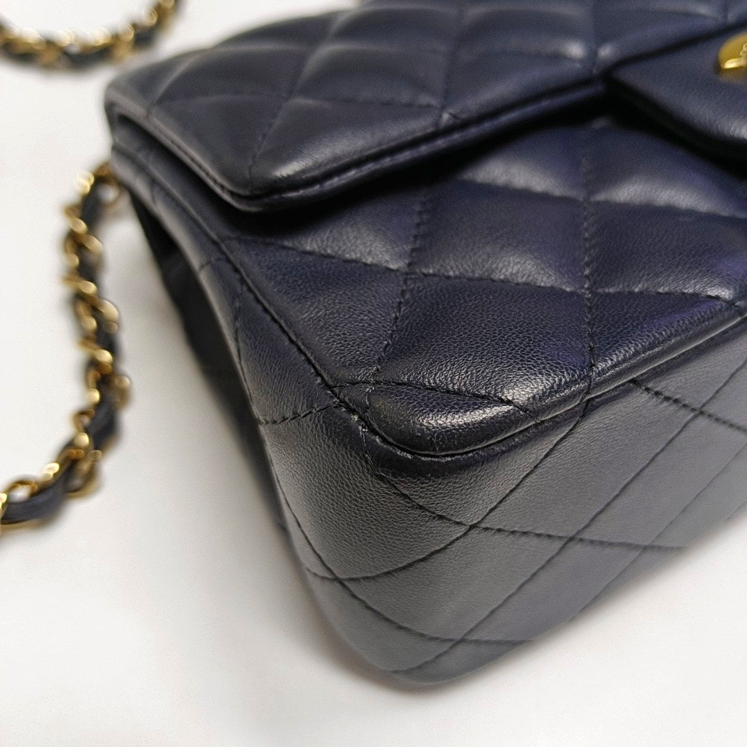Chanel Classic Flap Rectangular Mini 2015 Navy Lambskin Gold Hardware
