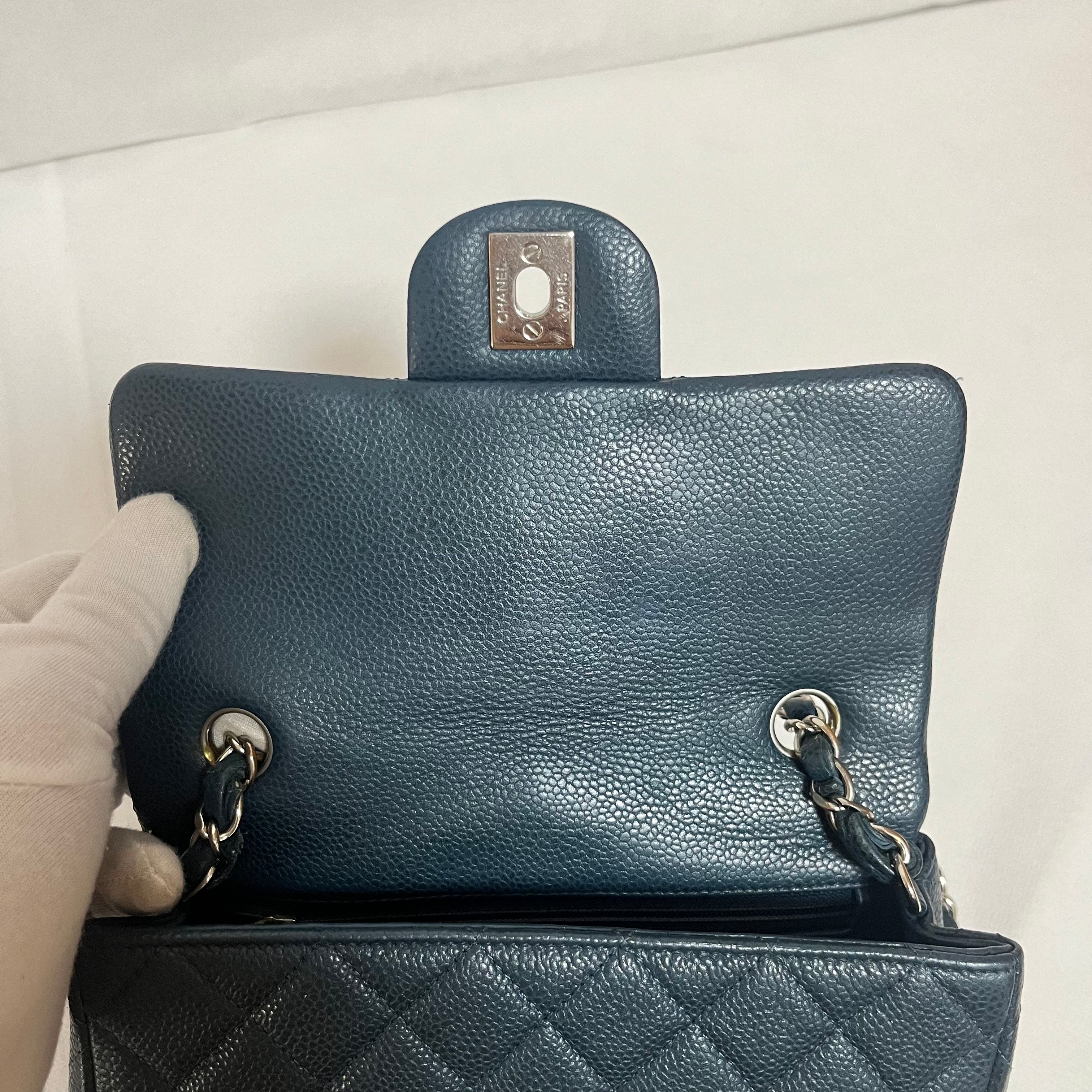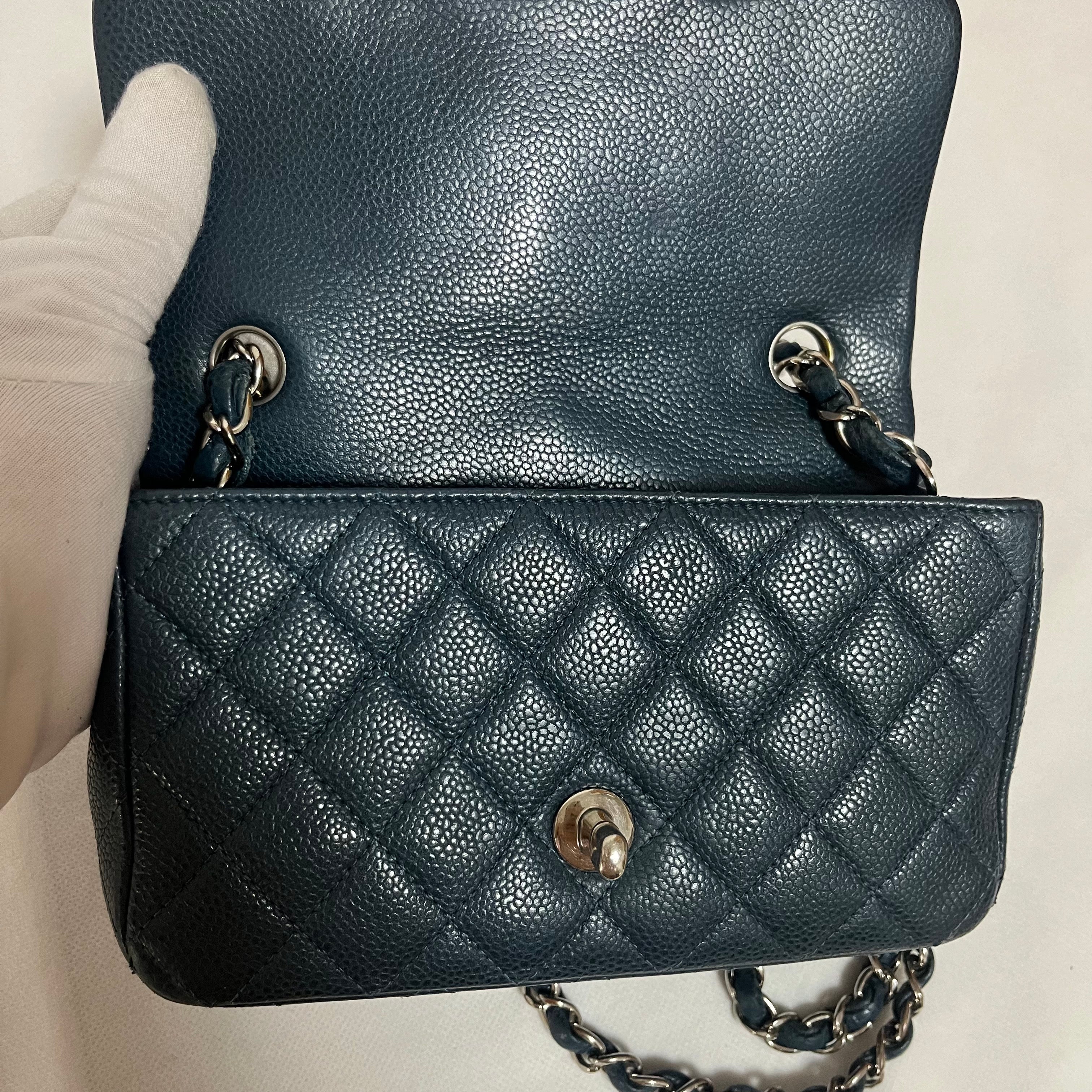 Chanel Classic Flap Rectangular Mini Navy Caviar Leather Silver Hardware 2015-16