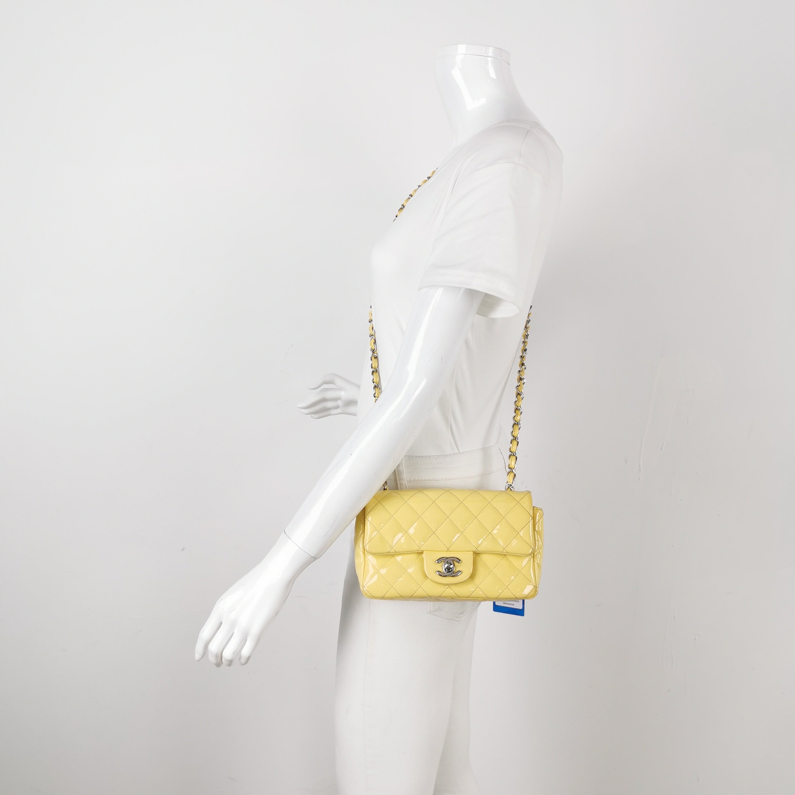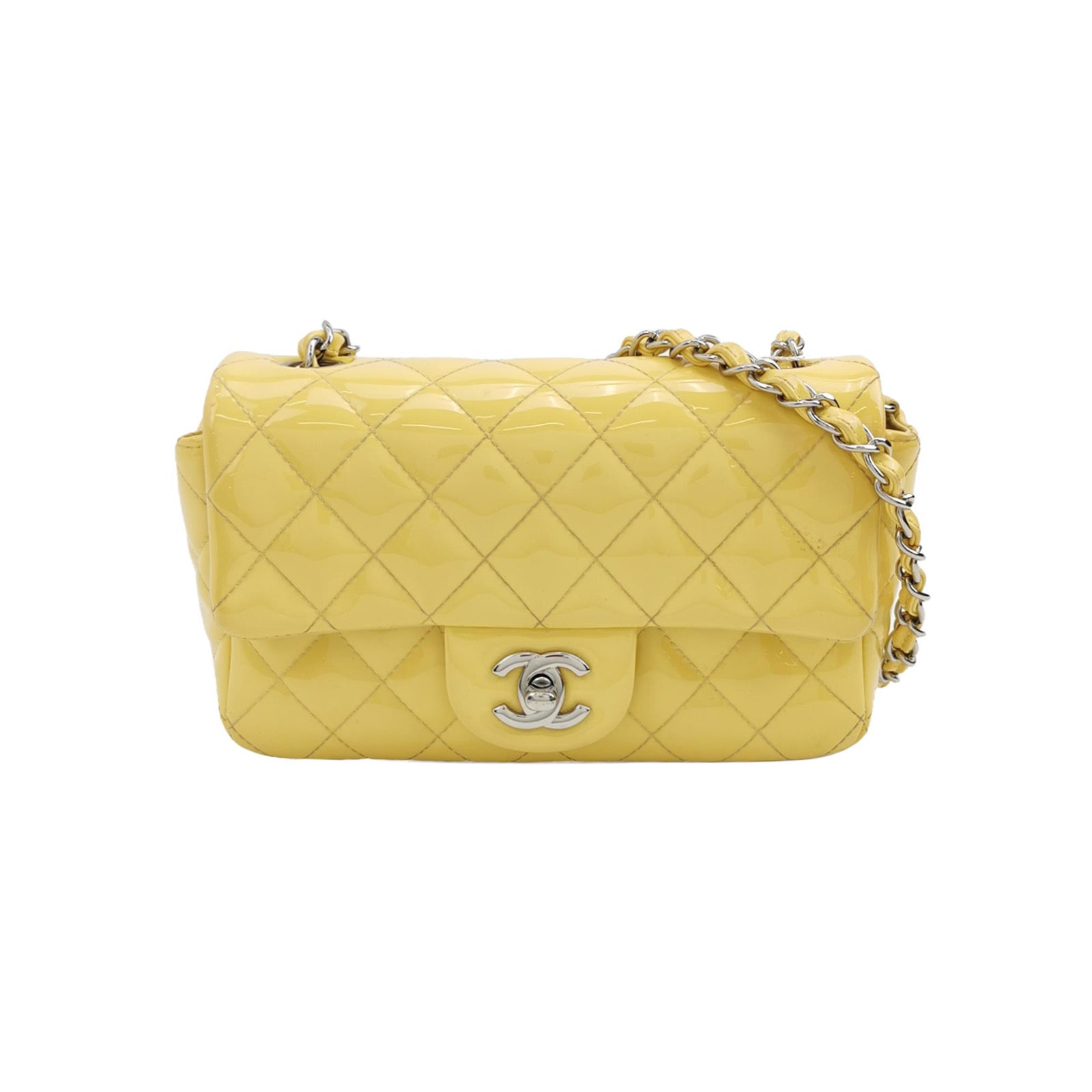 Chanel Classic Flap Rectangular Mini Yellow Patent Leather Silver HW, 2014-2015