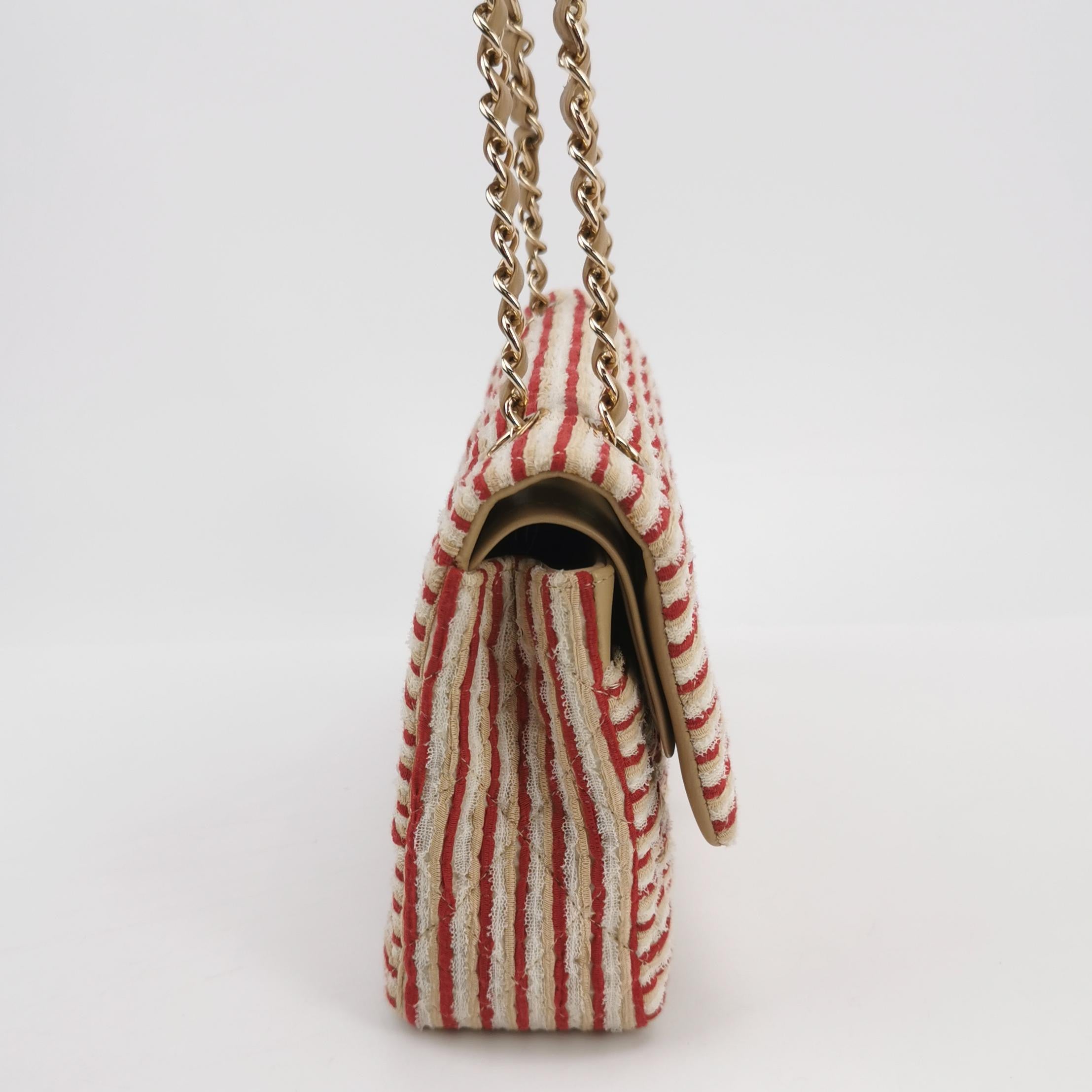 Chanel Classic Flap Red White Striped Medium Jersey Coco Sailor