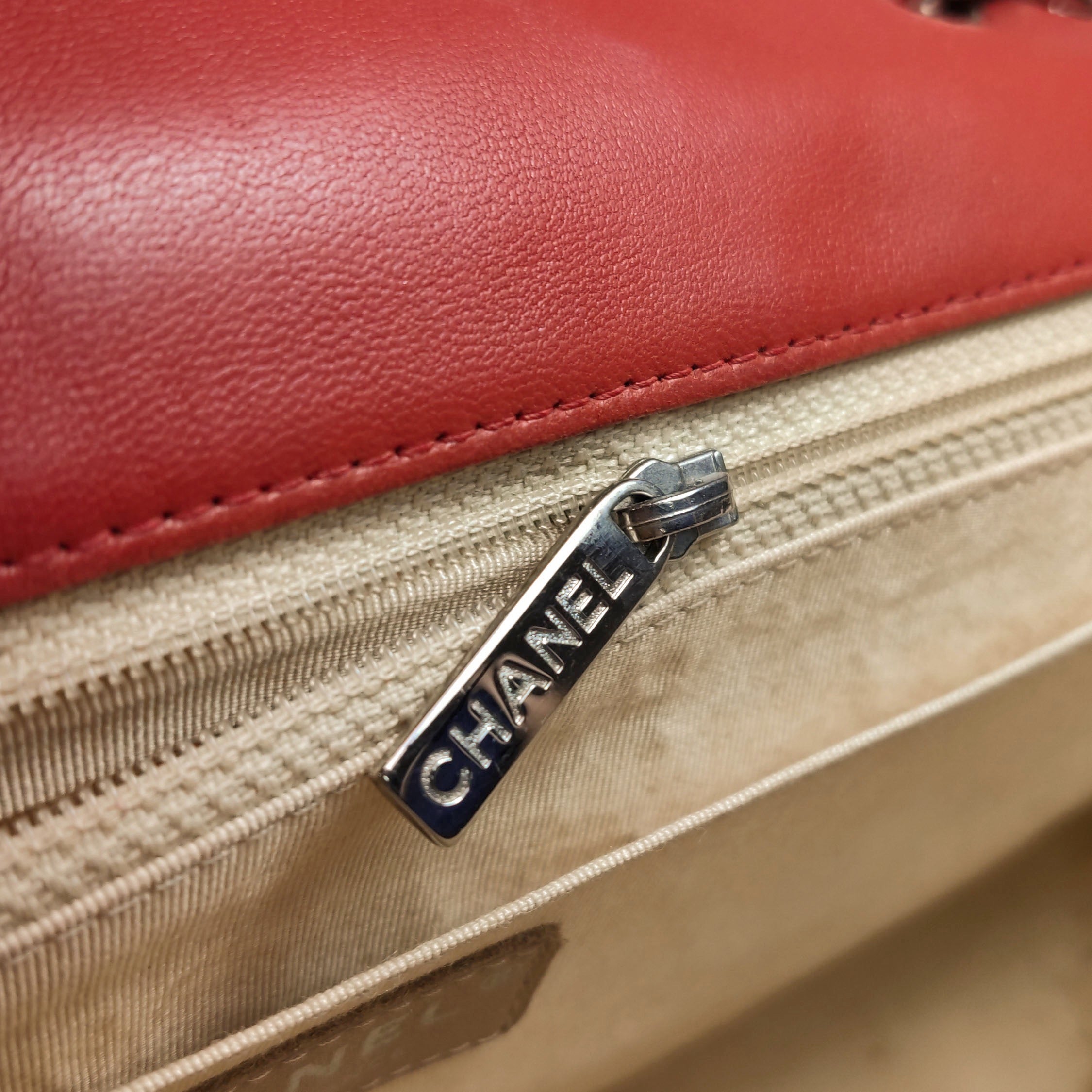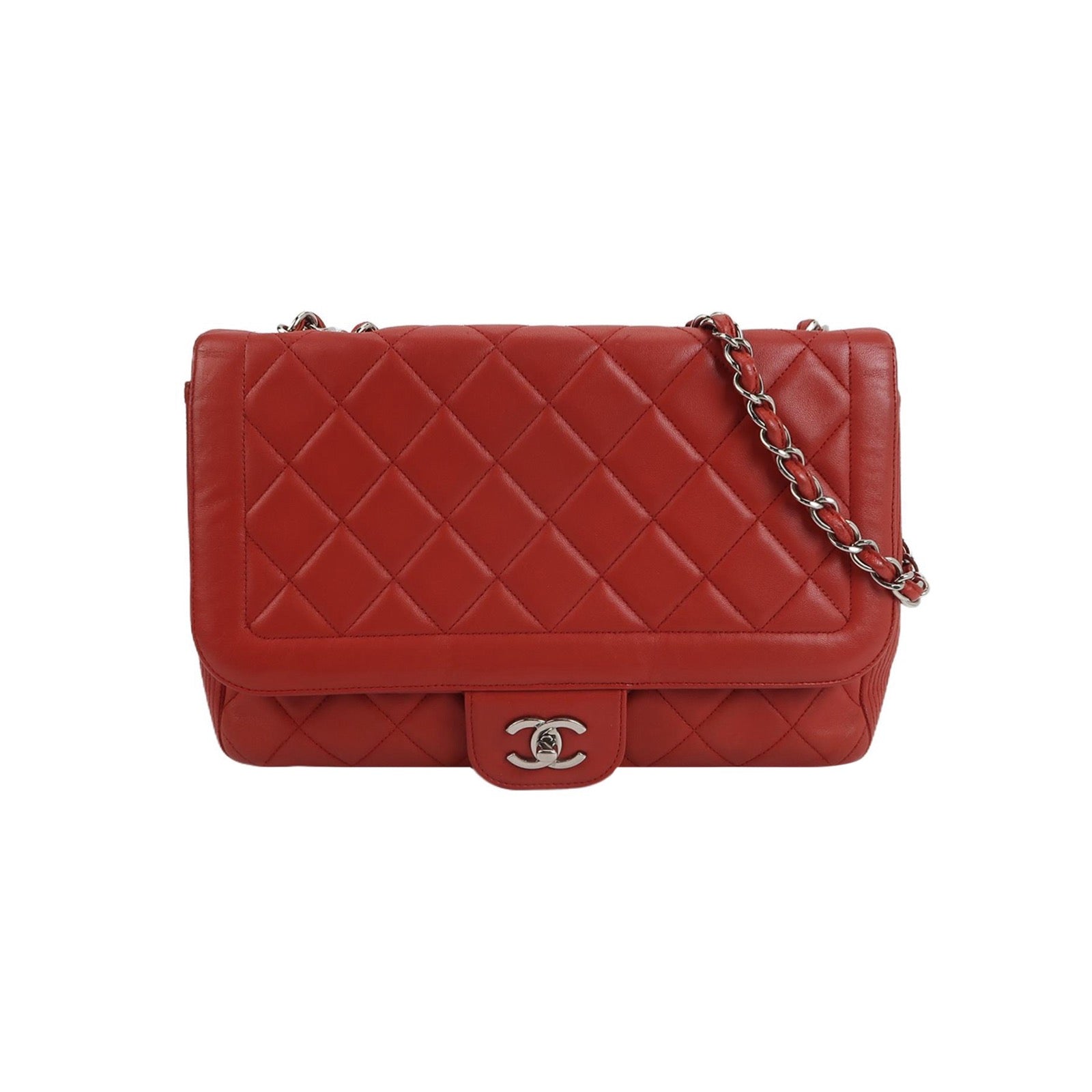 Chanel Classic Flap Single Flap Large Red Lambskin Leather Silver Hardware