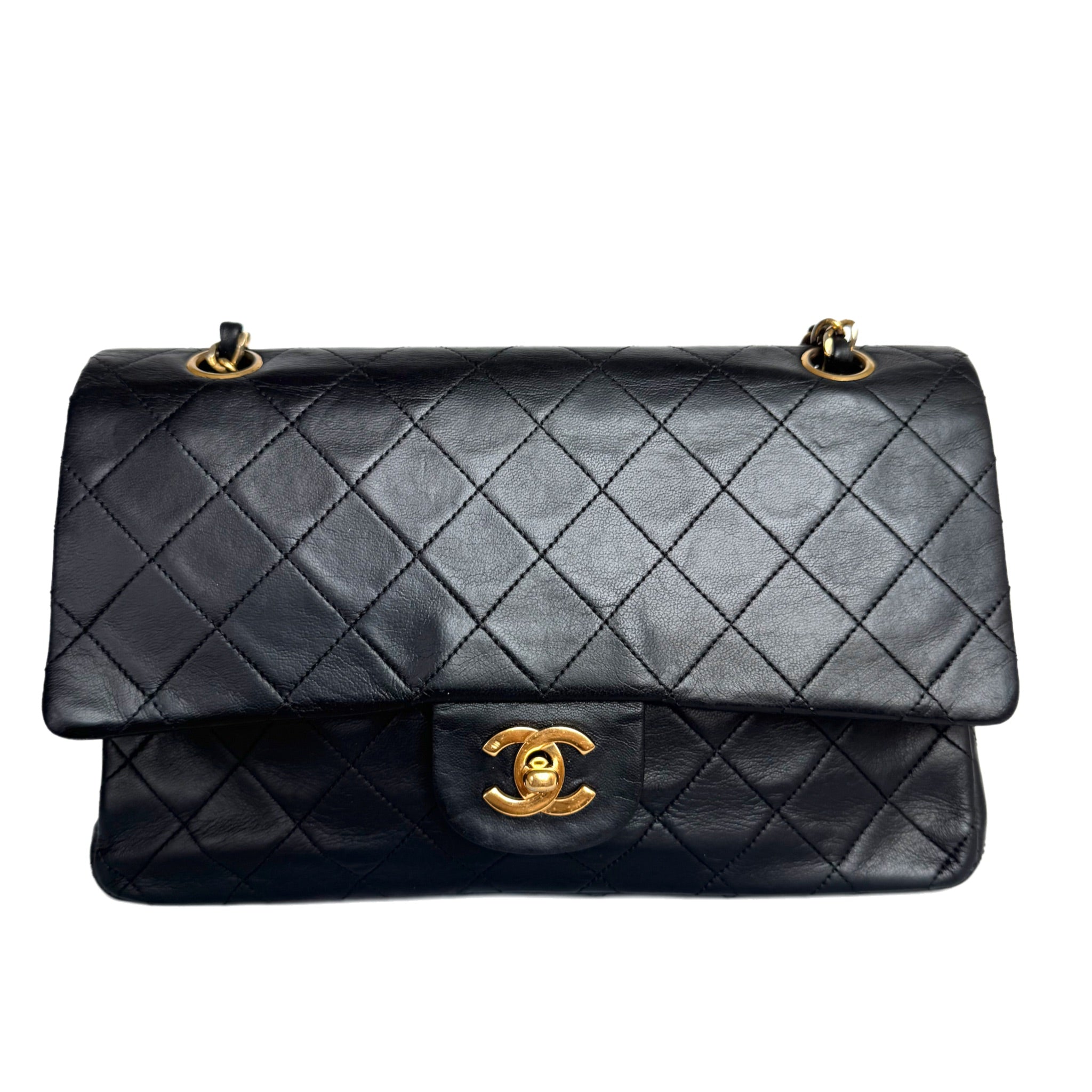 Chanel Classic Flap Vintage Medium Black Lambskin Leather with 24k Gold Hardware 1989-1991