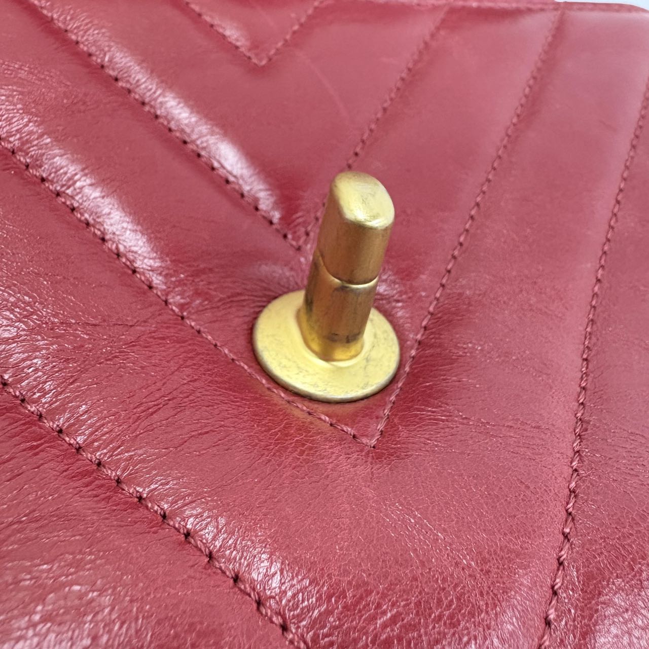 Chanel Coco Handle Small Red Lambskin Leather Chevron Stitching Gold Hardware, 2017-18