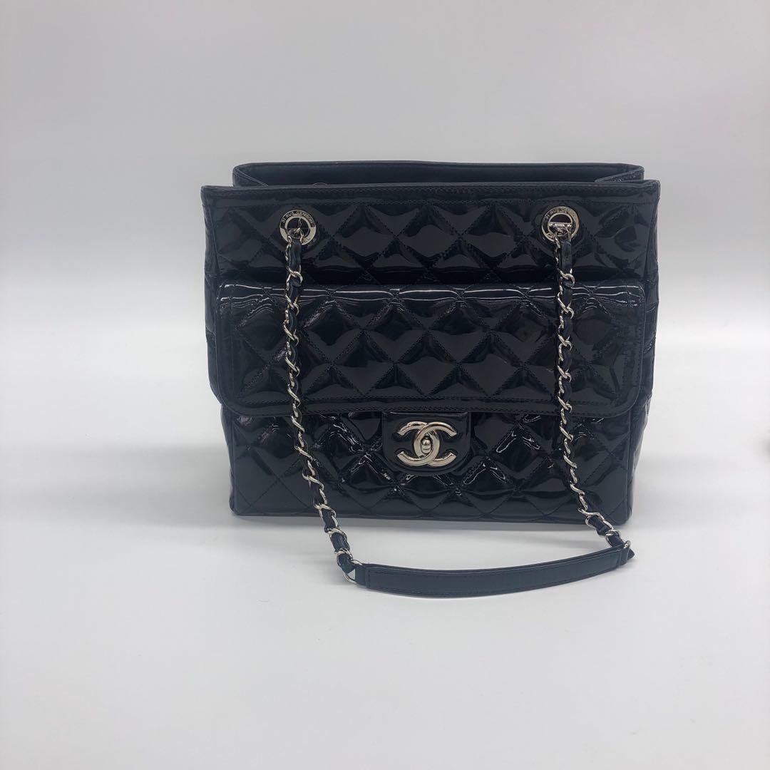 Chanel Coco Shine Small Tote Black Quilted Patent Leather Silver Hardware 2014-15