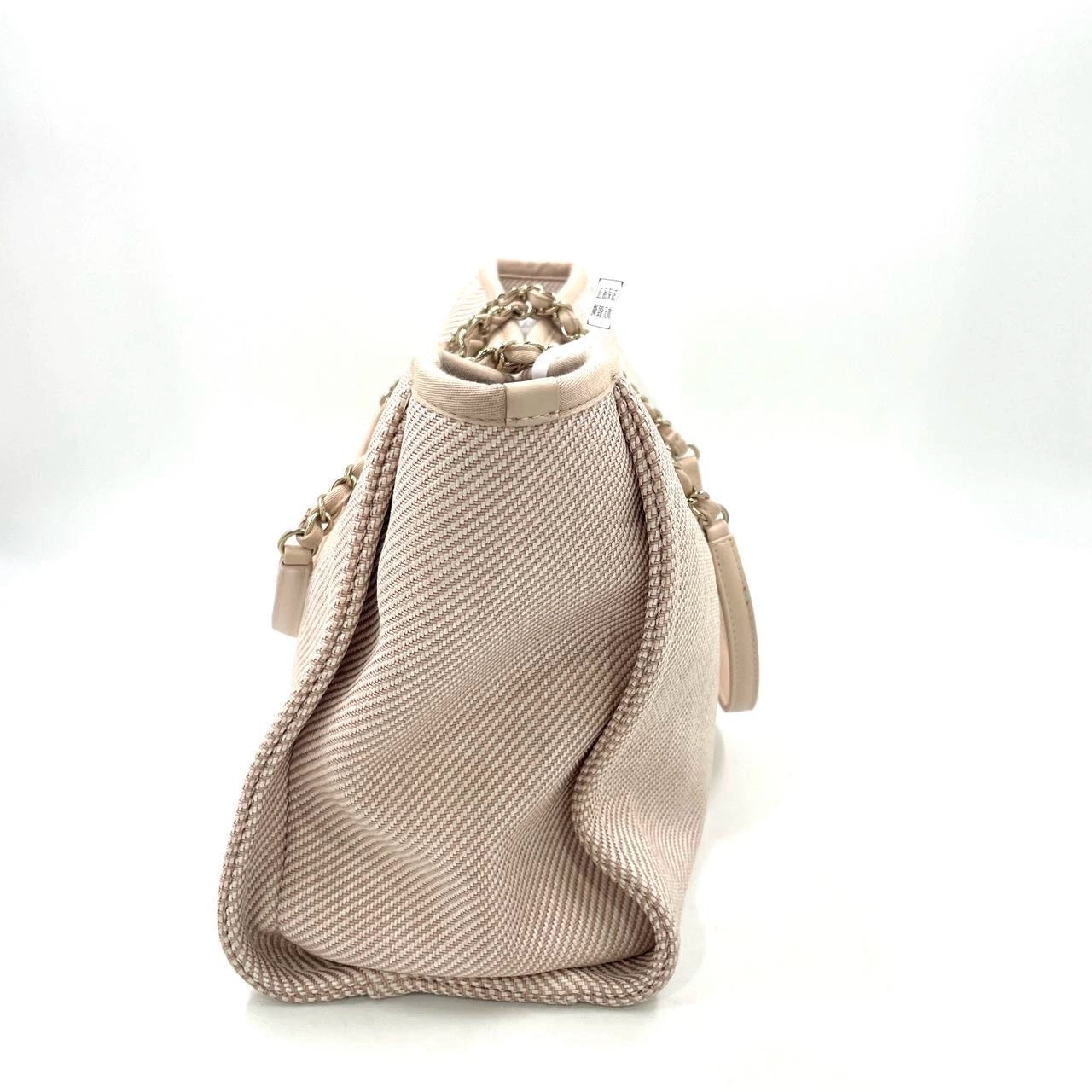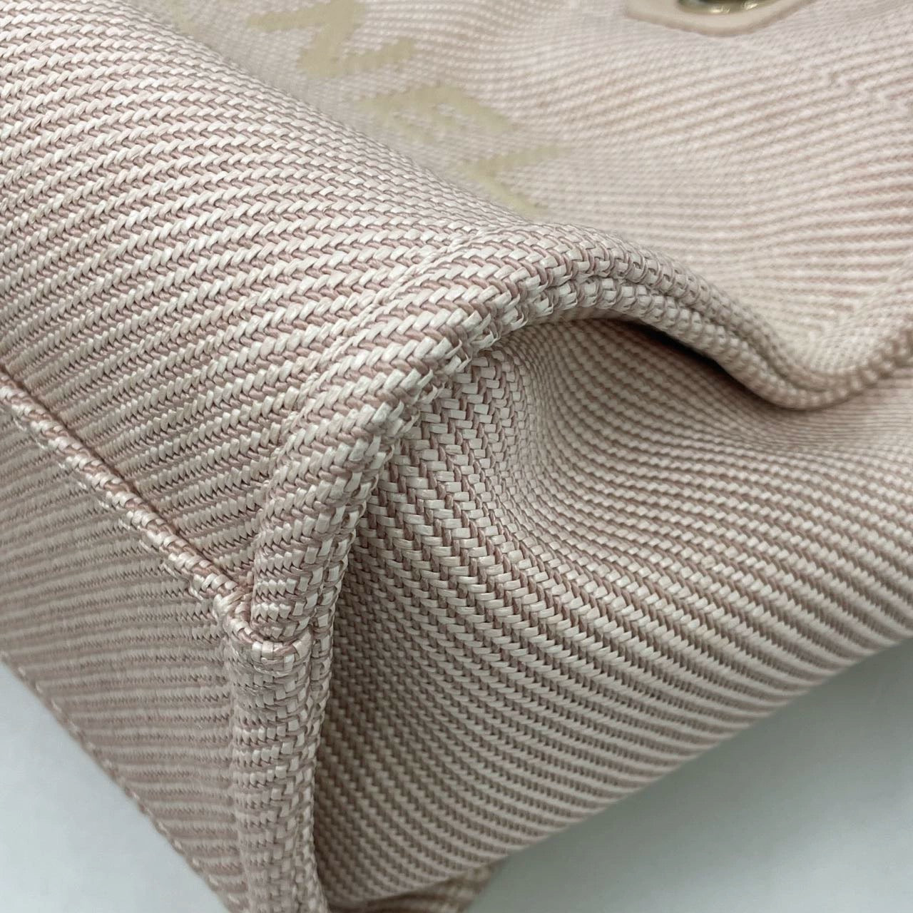 Chanel Deauville Tote Light Pink Cloth Leather Chain Strap Small 34cm