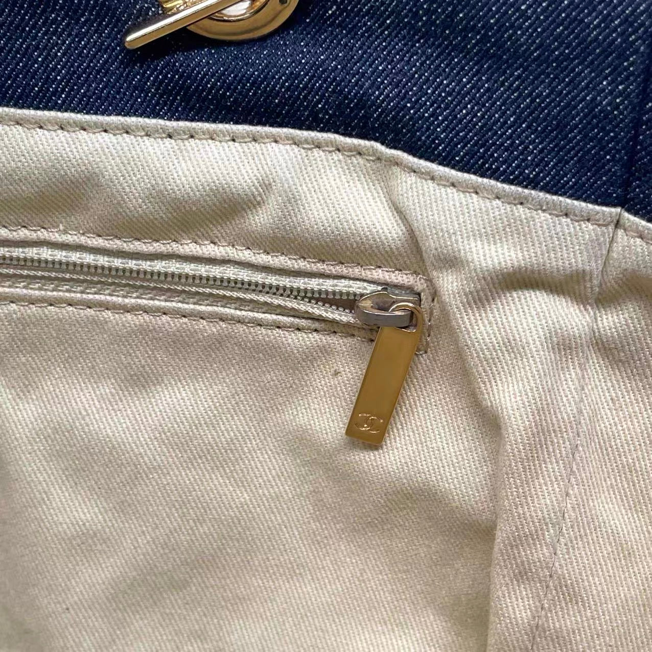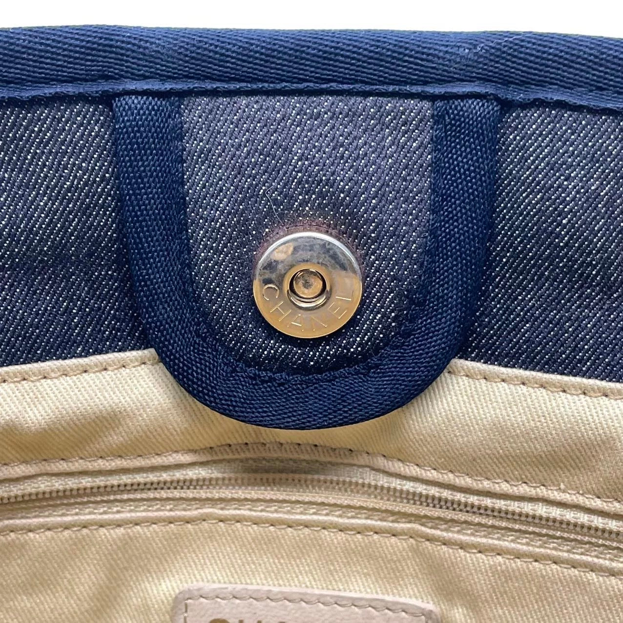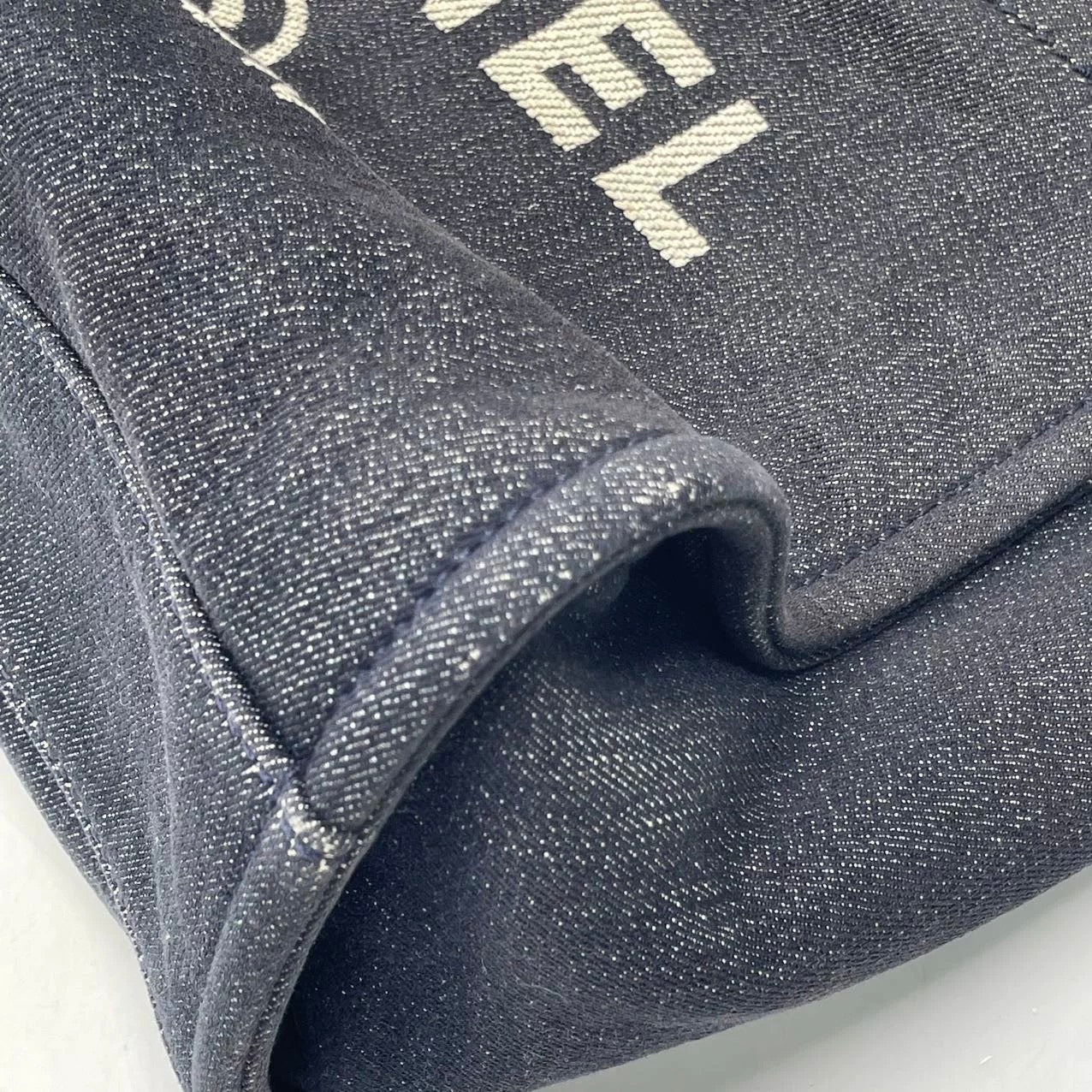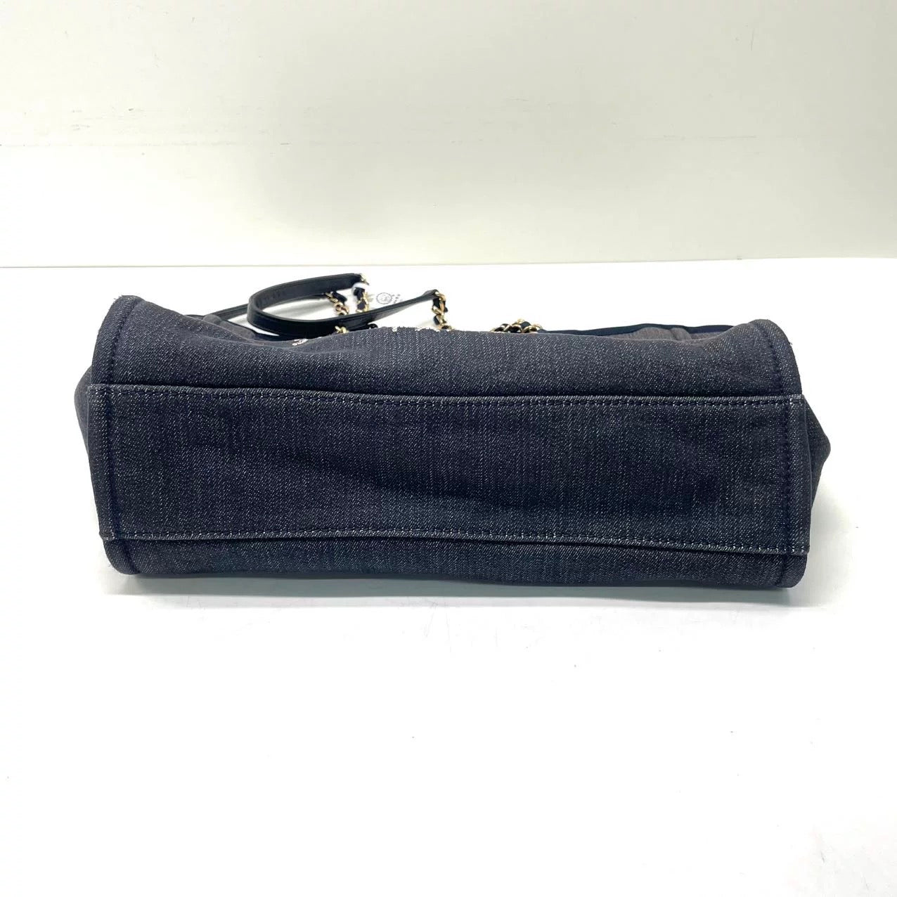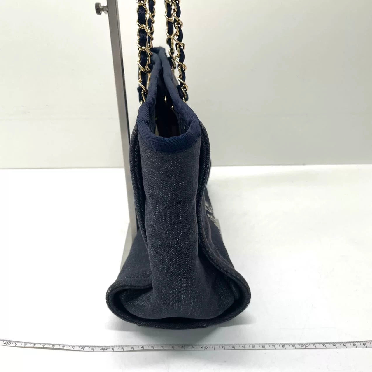 Chanel Deauville Tote Navy Denim Cloth Leather Chain Strap Small 34cm