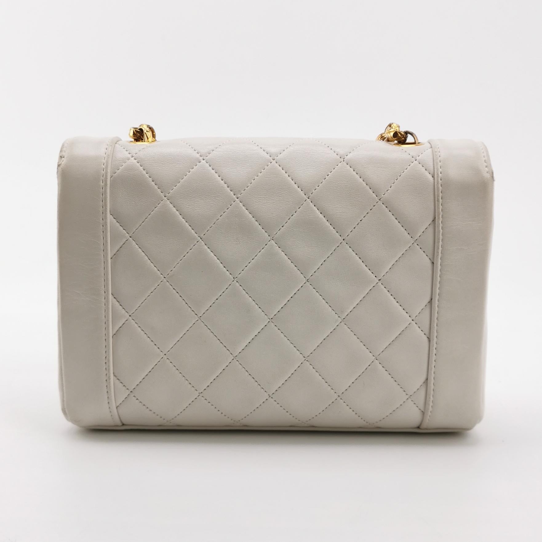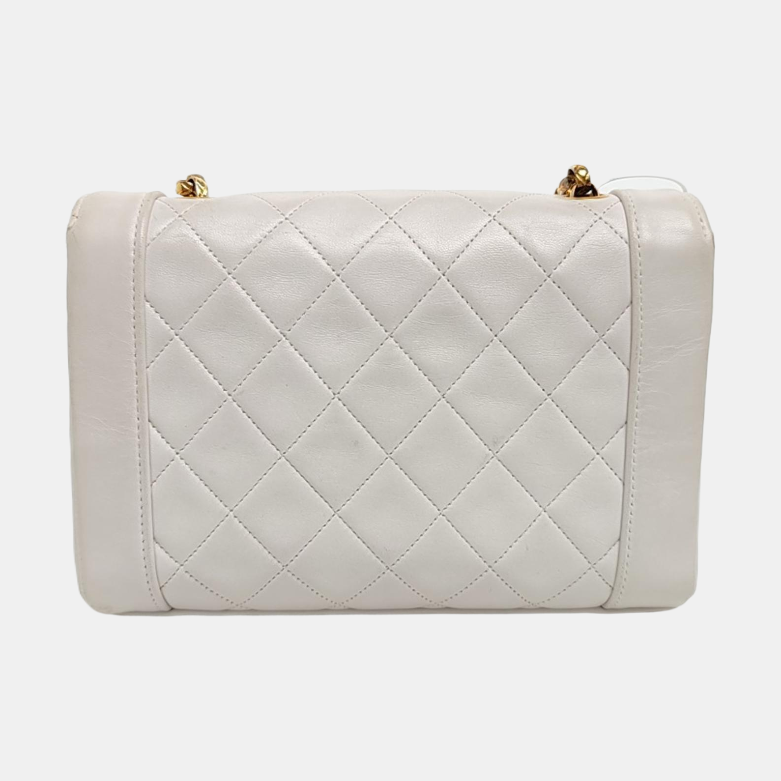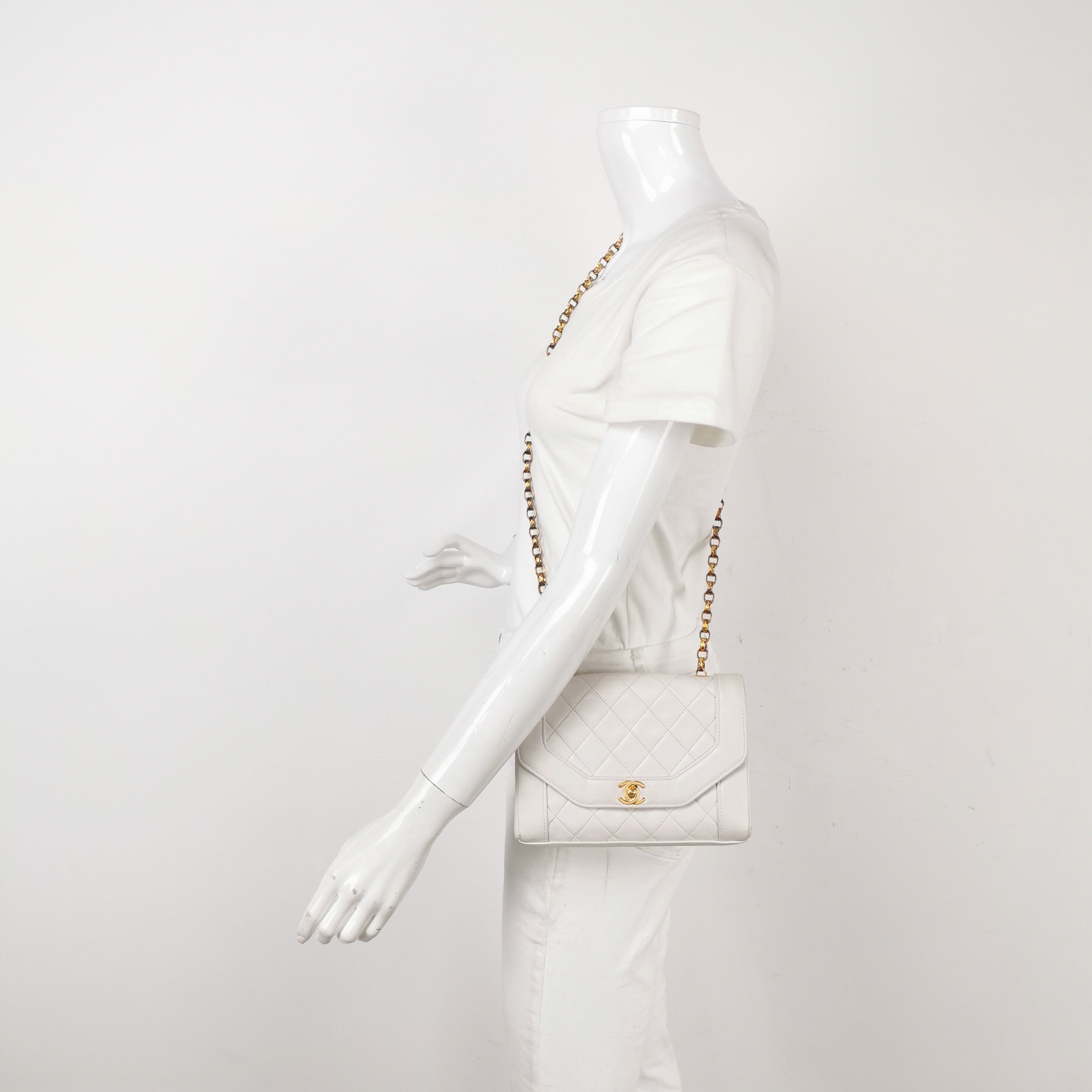 Chanel Diana CC Flap Bag Small Vintage White Lambskin Leather with 24k Gold HW, 1989-1991