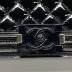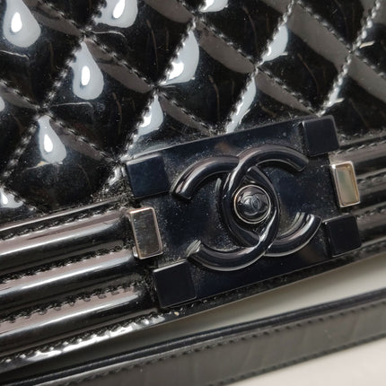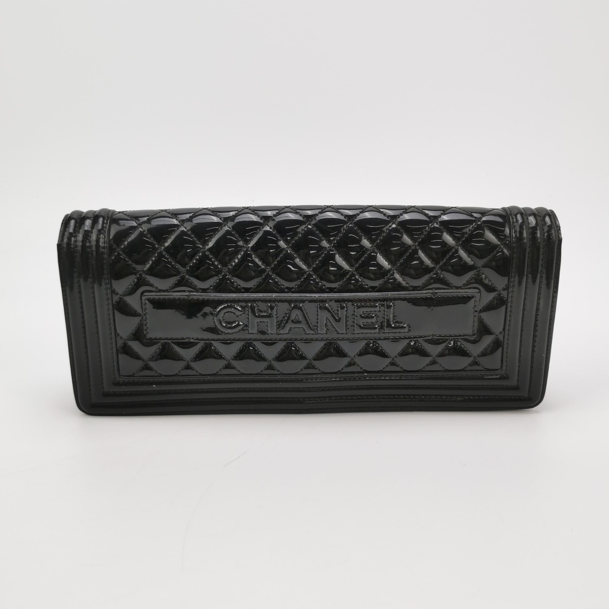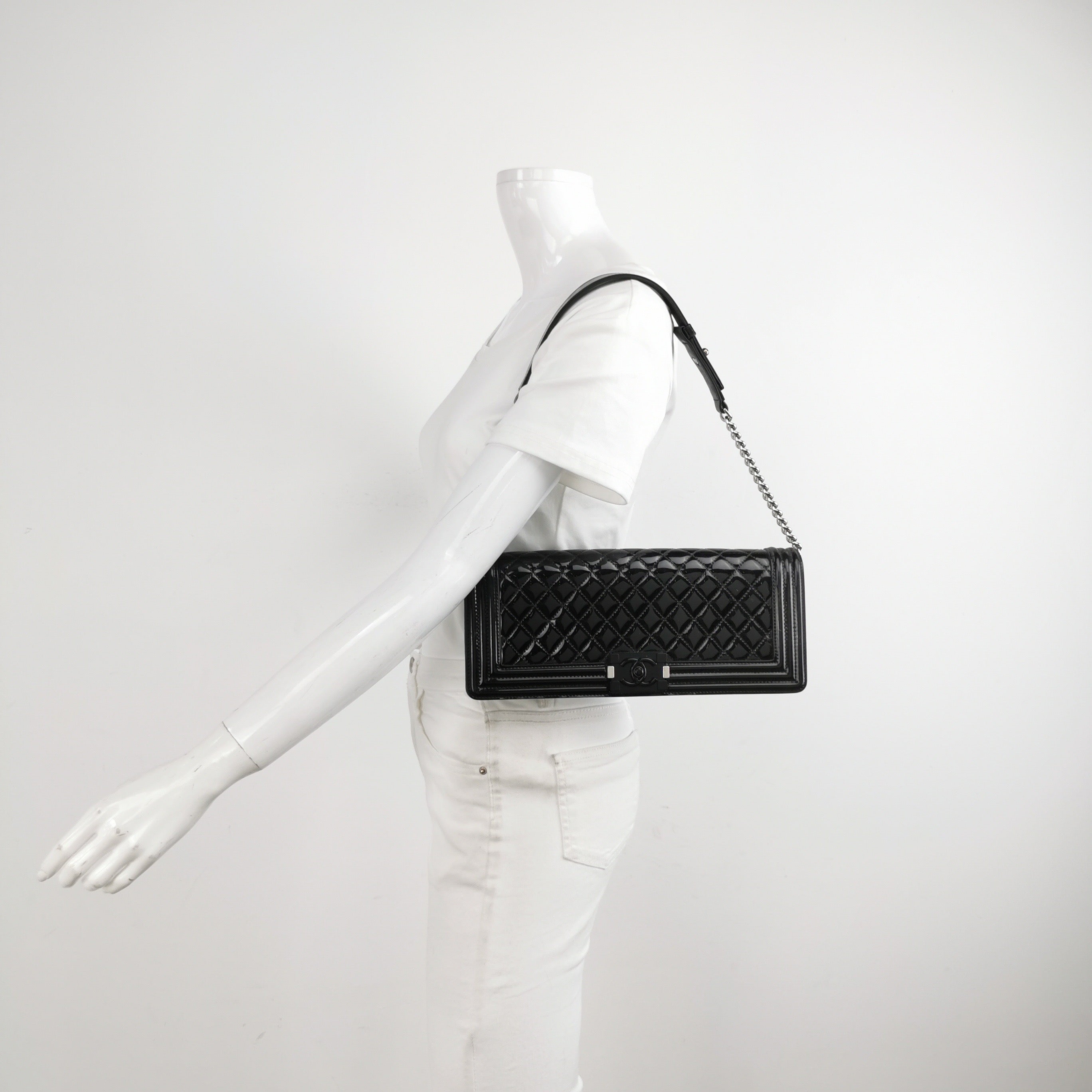 Chanel East West Boy Convertible Chain Shoulder and Clutch Bag Black Patent Leather, 2014-2015