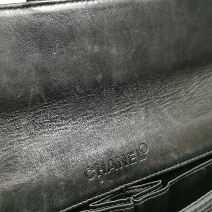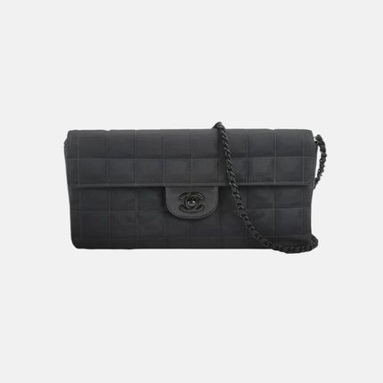 Chanel East West Chocolate Bar Black Leather Silver Hardware, 2000-2002