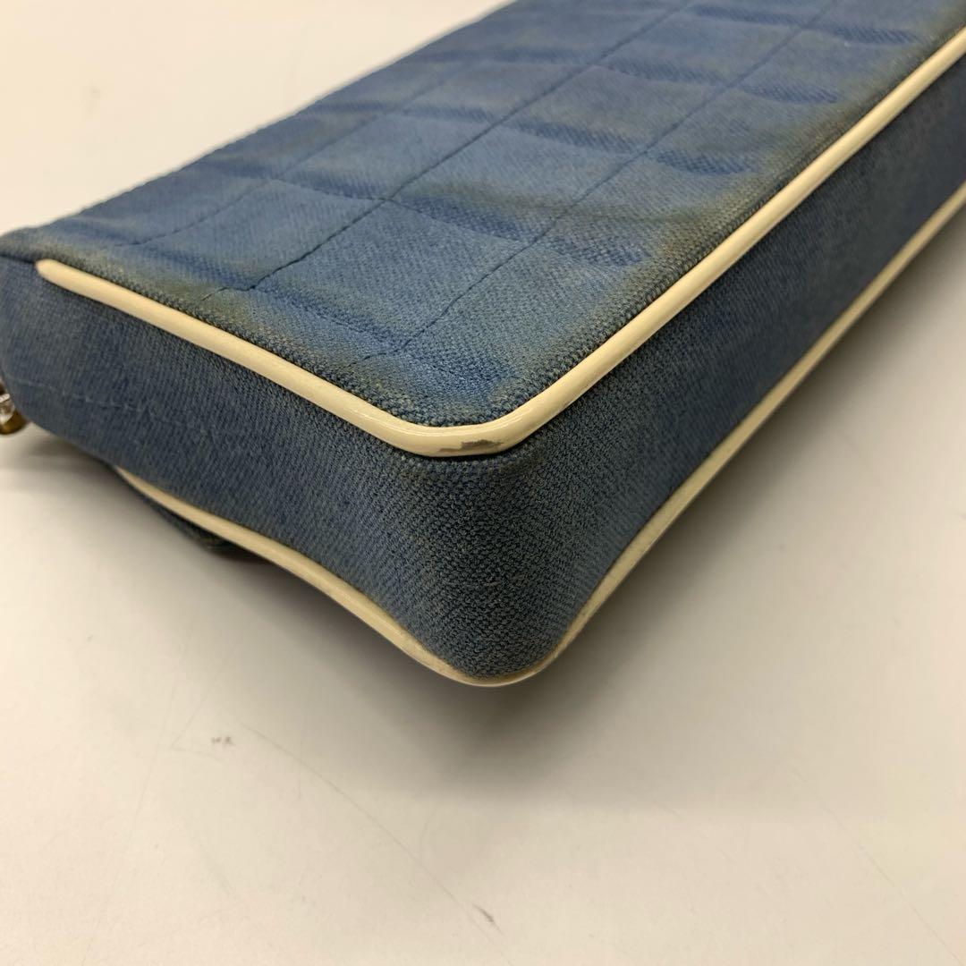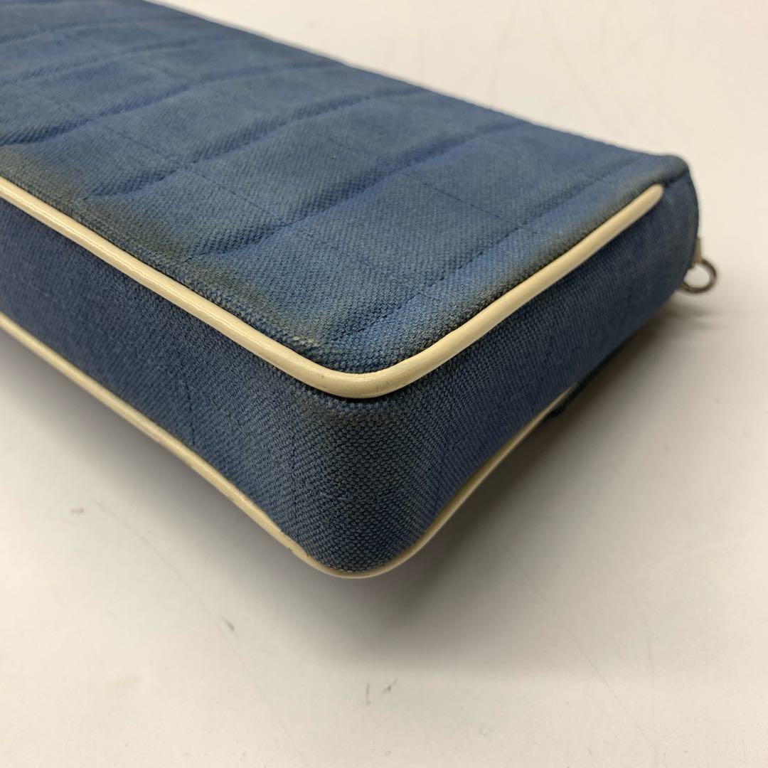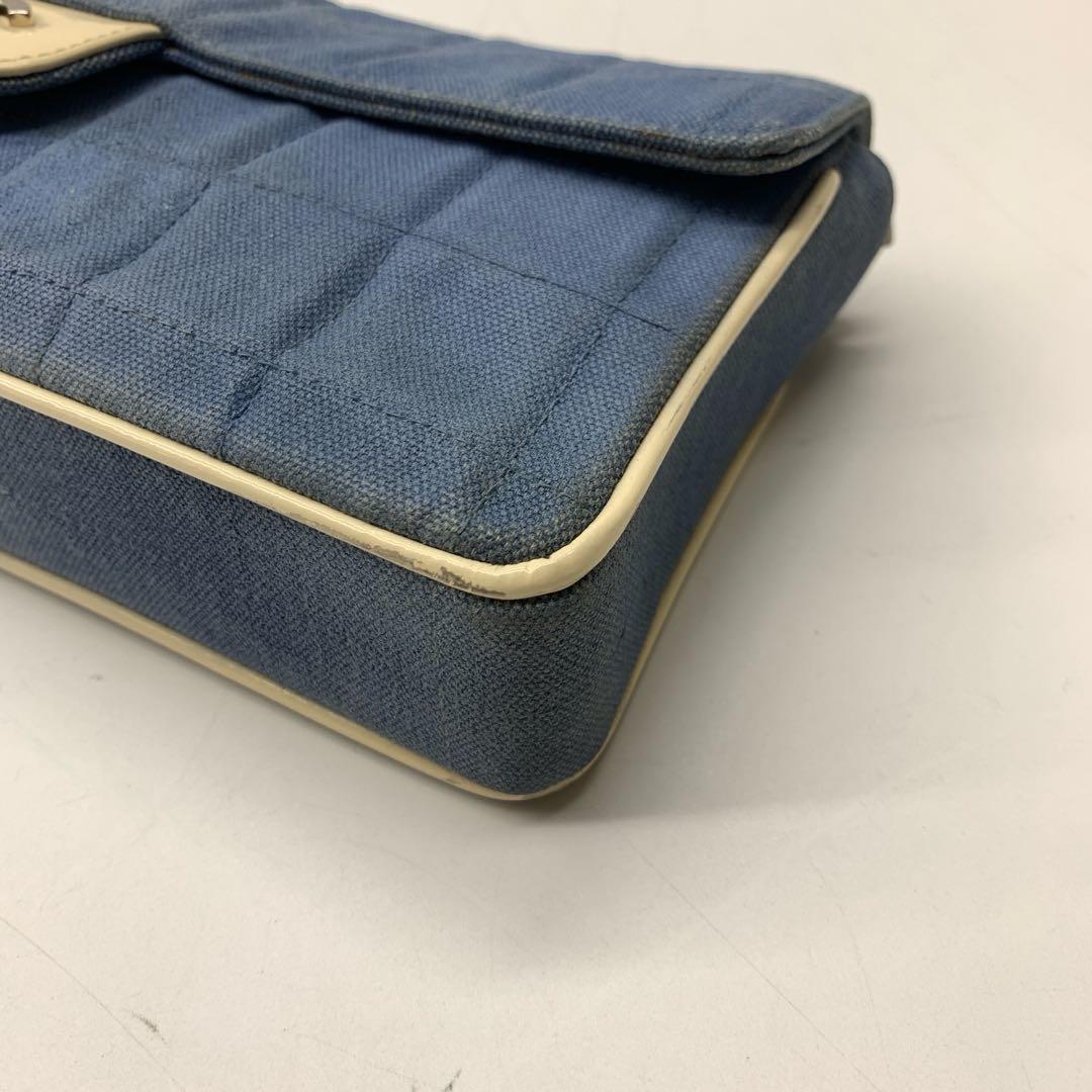 Chanel East West Chocolate Bar Blue Denim Beige Leather Piping Silver Hardware