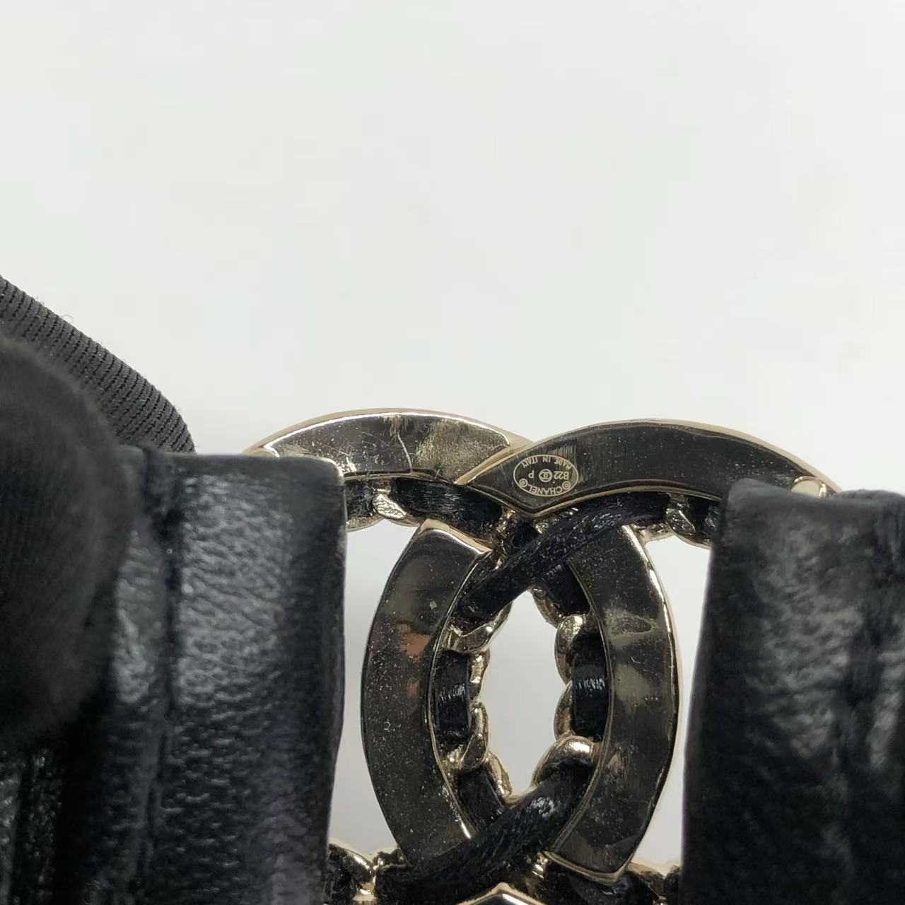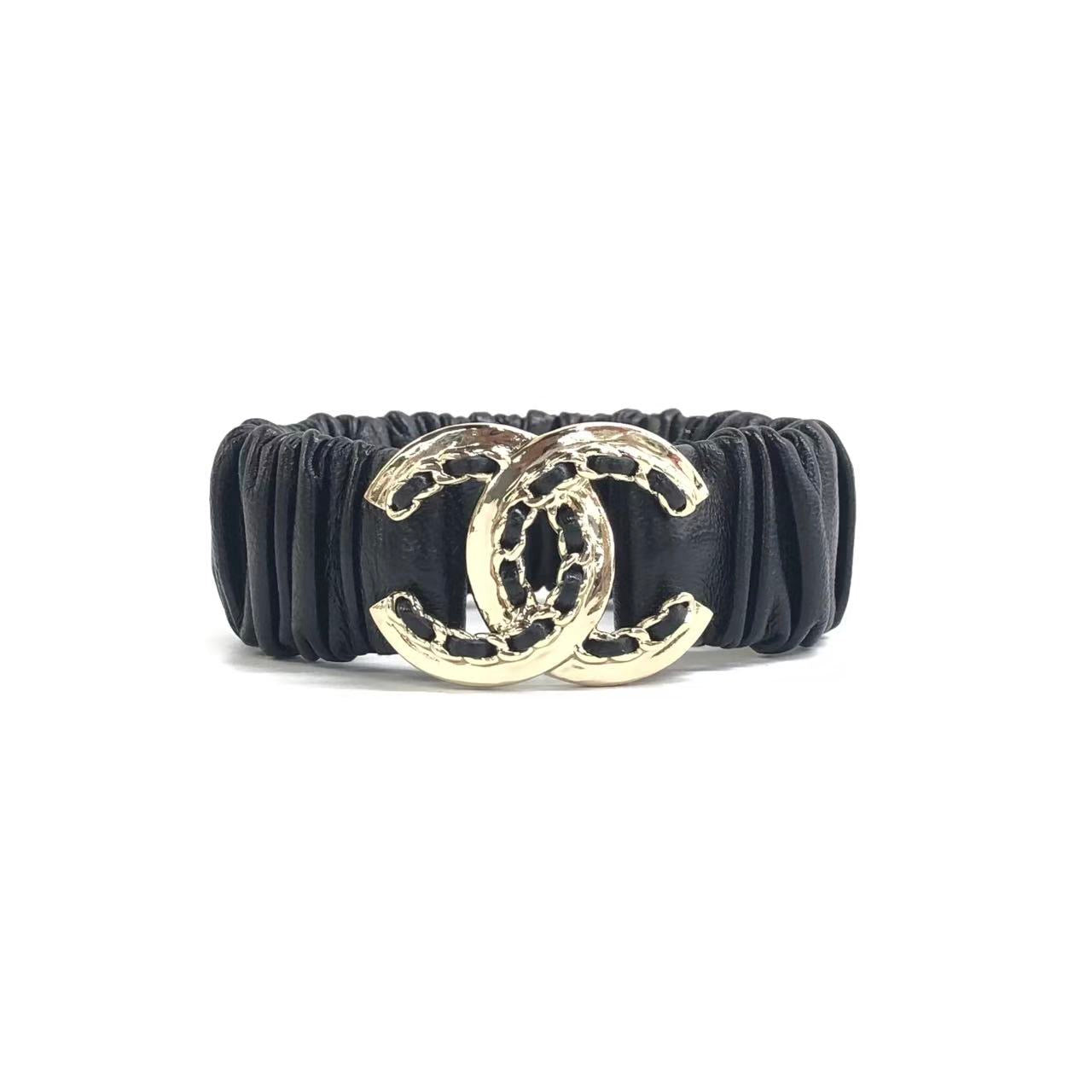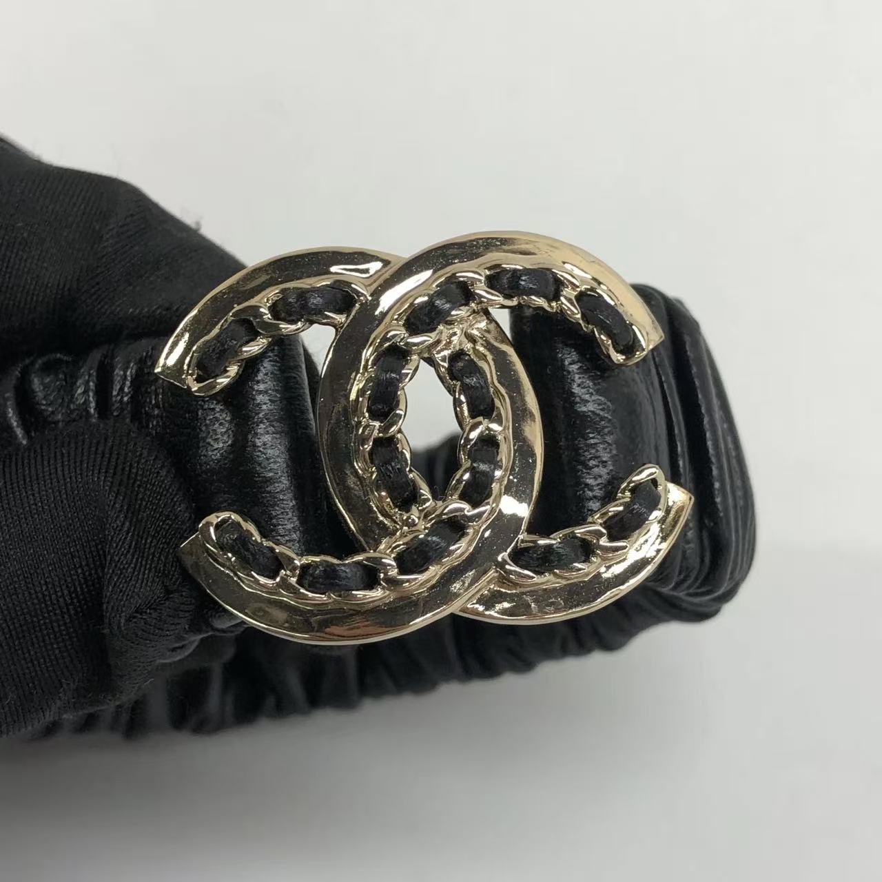 Chanel Hair Band Scrunchie Black Lambskin CC Chain Gold Buckle