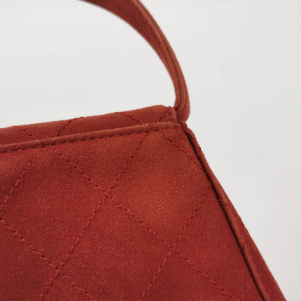 Chanel Kelly Mini 1997 -1999 Red Suede Leather Top Handle Bag