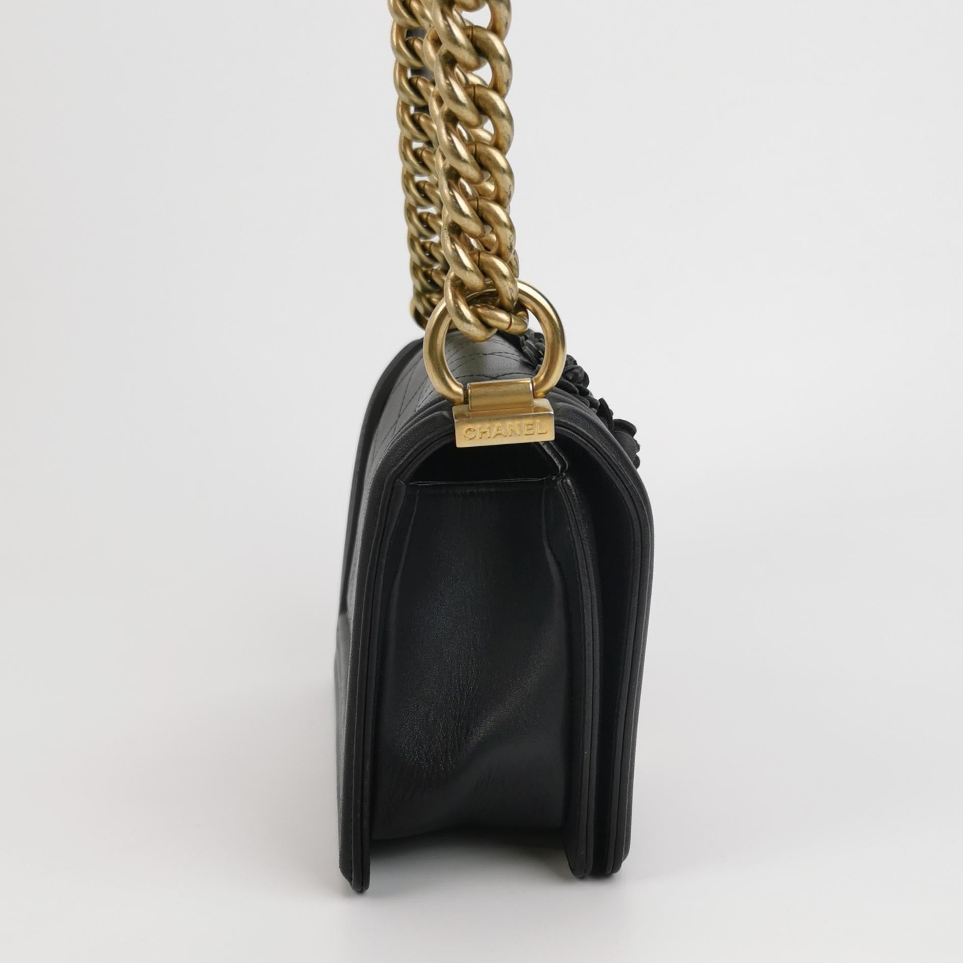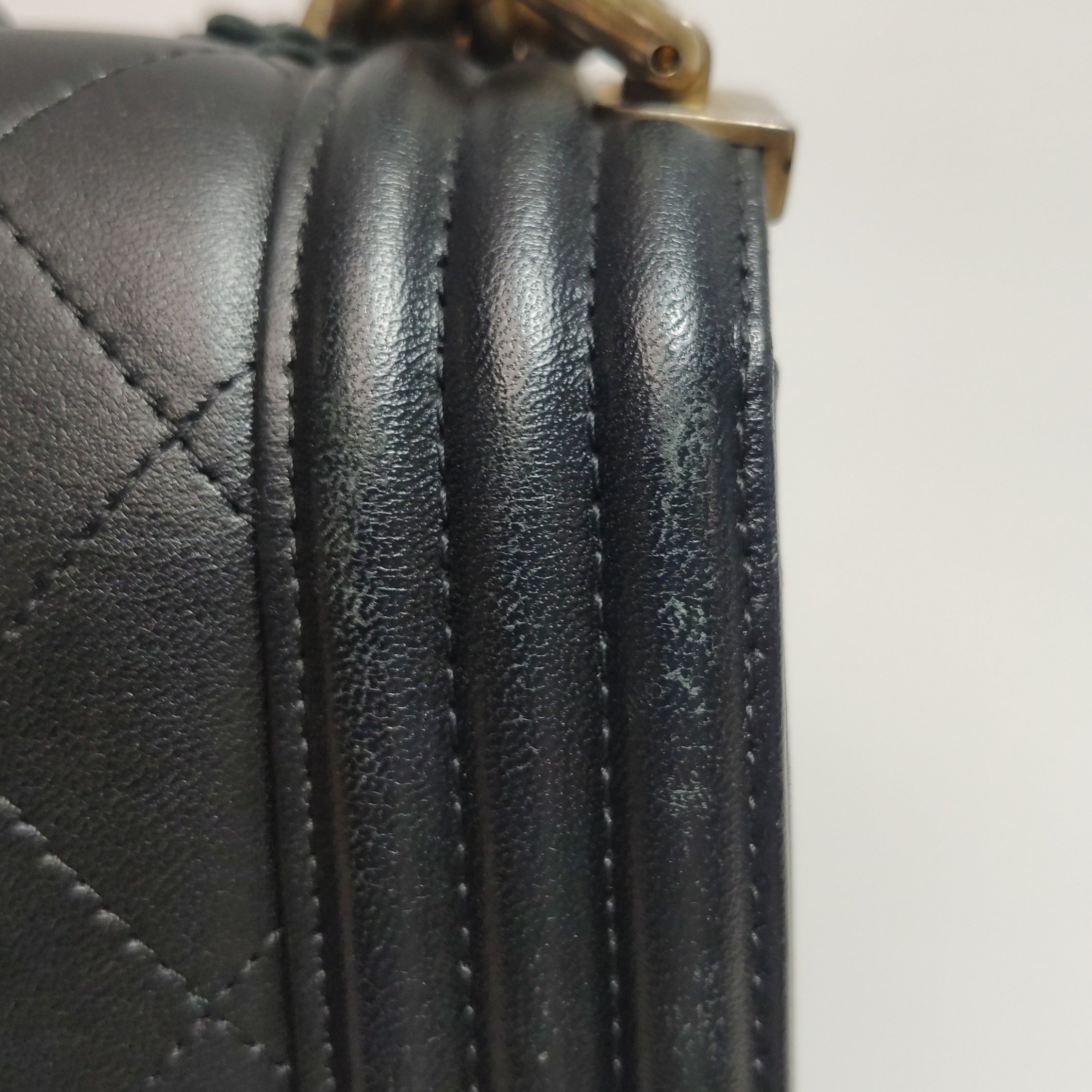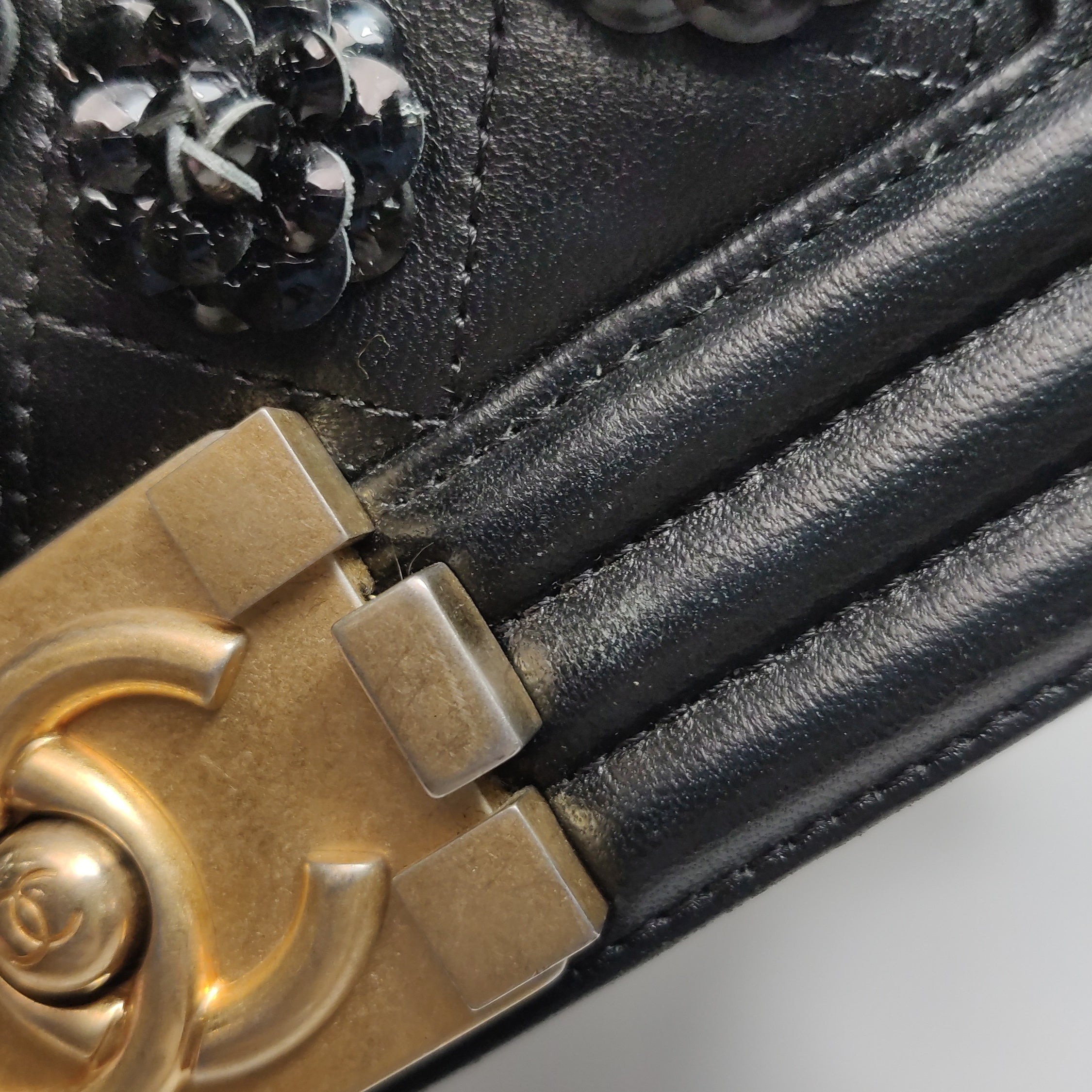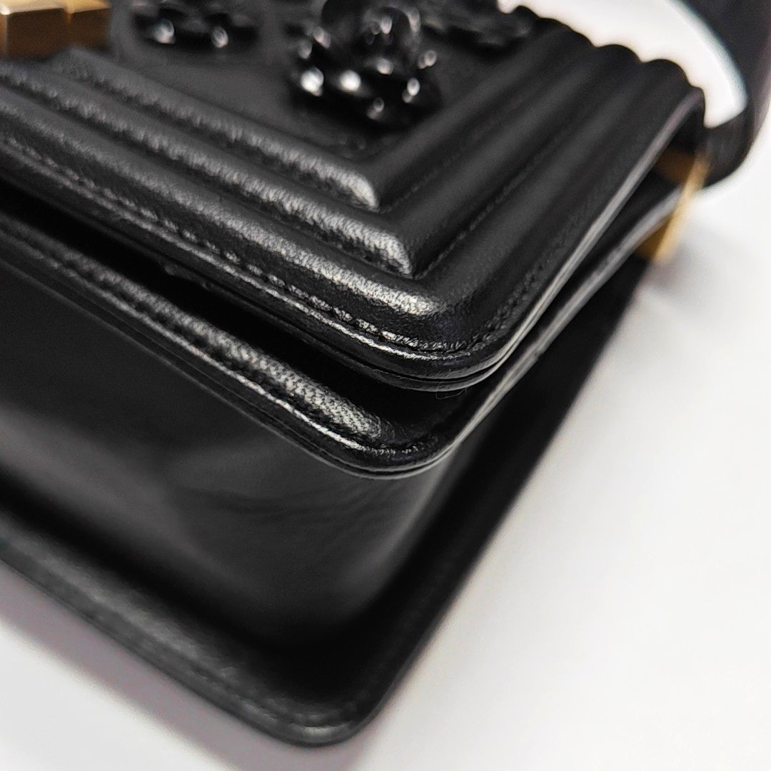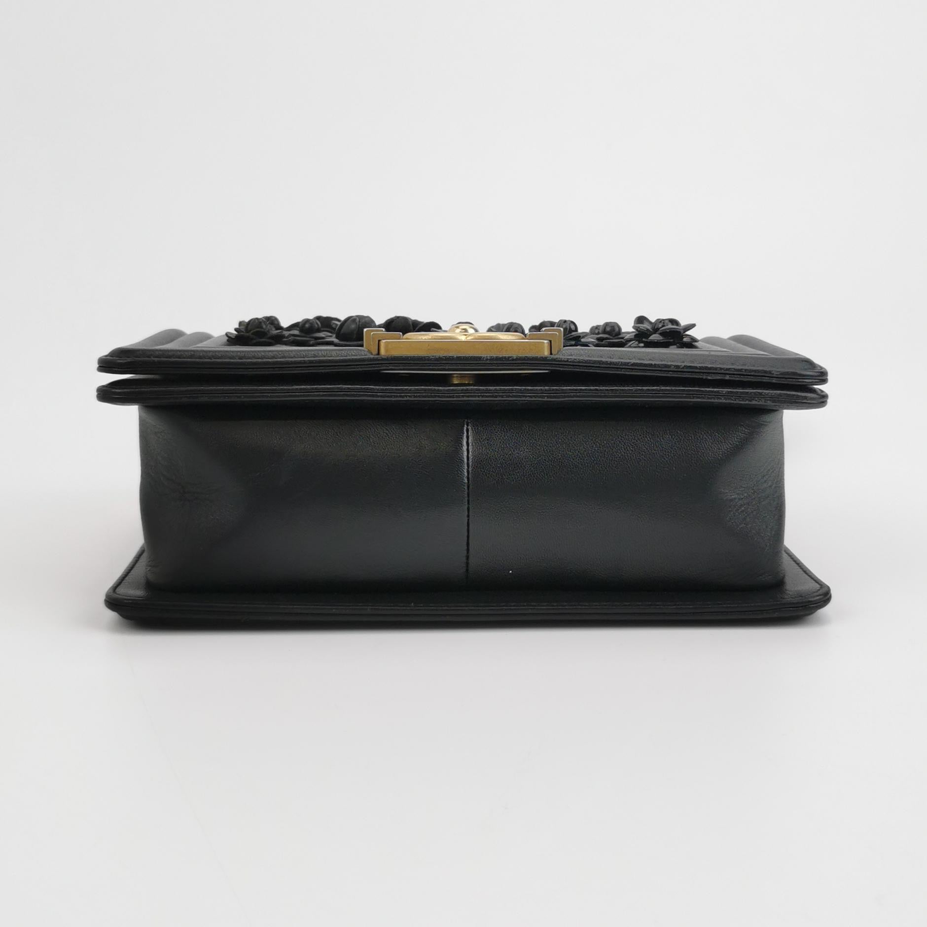 Chanel Le Boy Bag Small Camellia Black Lambskin Leather Gold Hardware