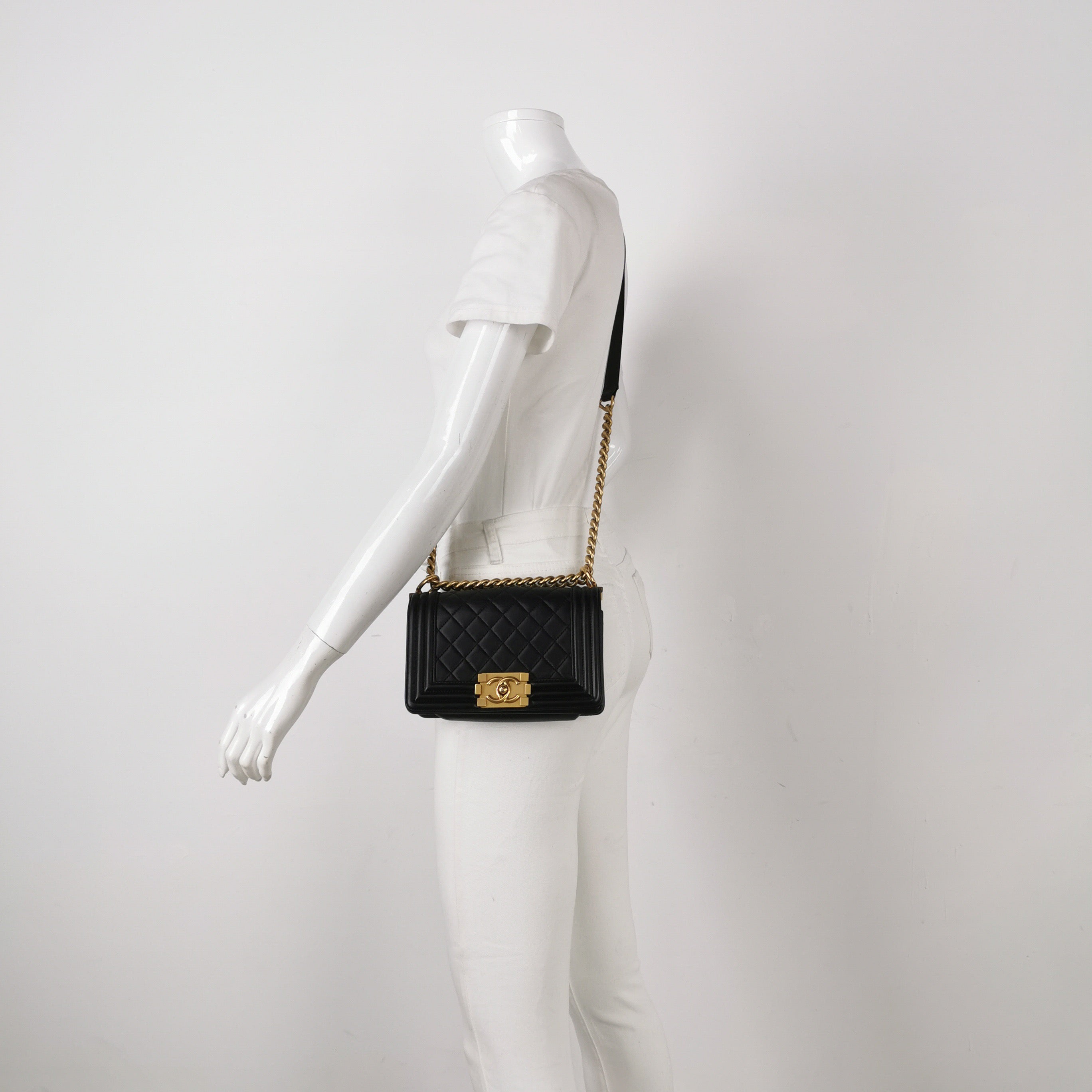 Chanel Le Boy Small Black Lambskin Leather Antiqued Gold Hardware