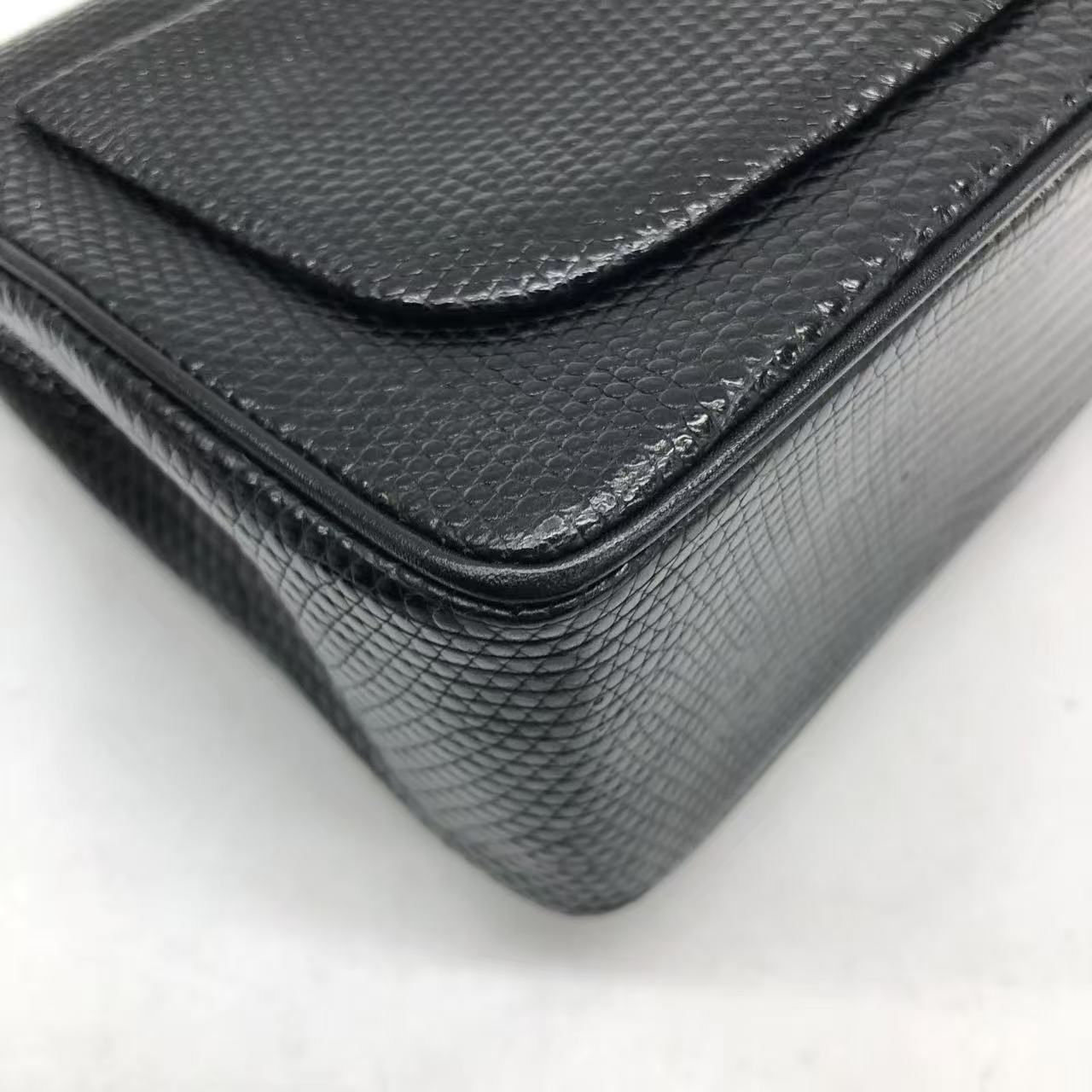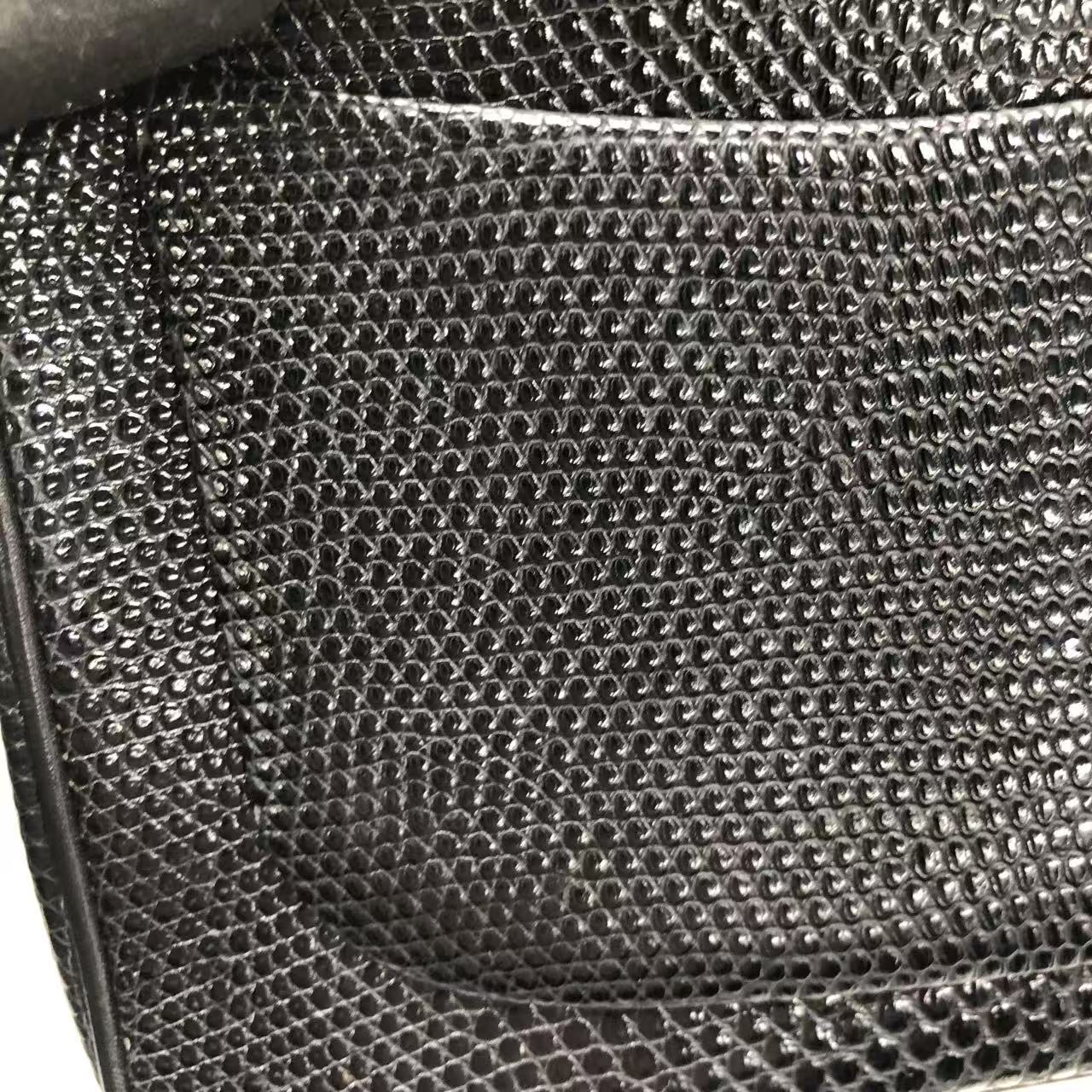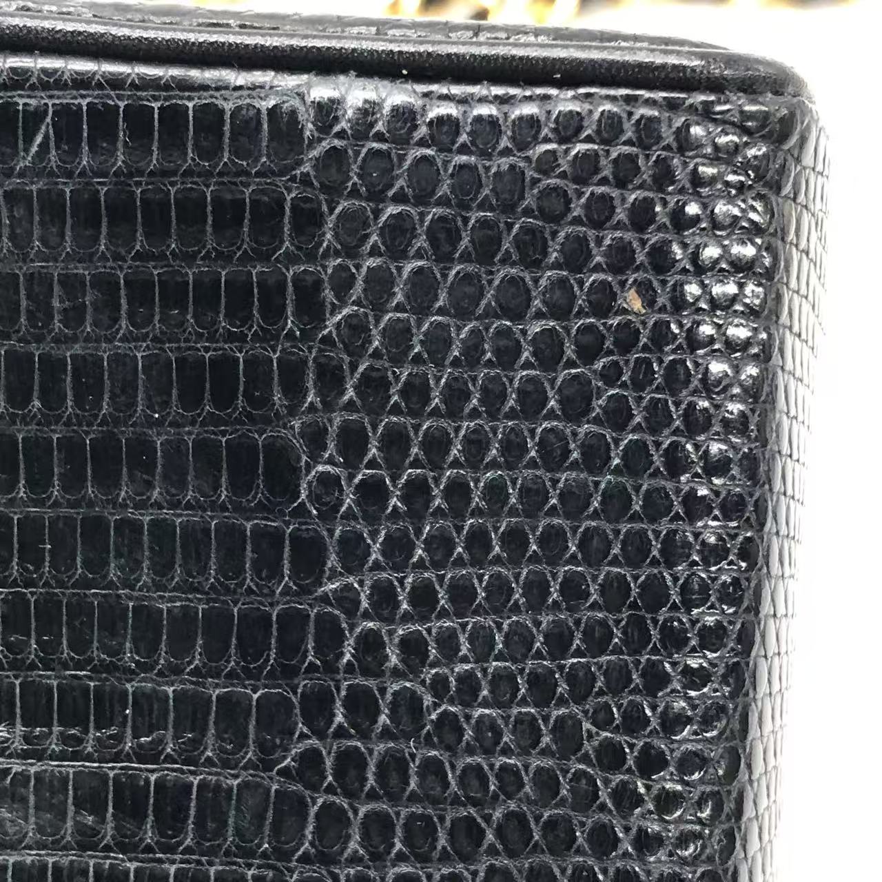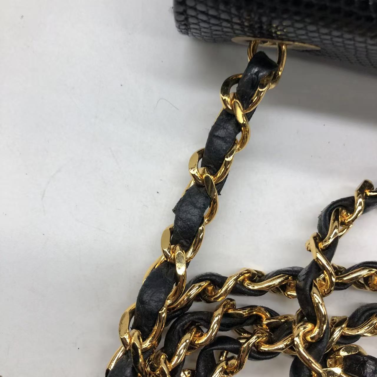 Chanel Mini Square Flap Bag Vintage Black Lizard-skin Leather 24k Gold Plated Hardware, 2000-2002