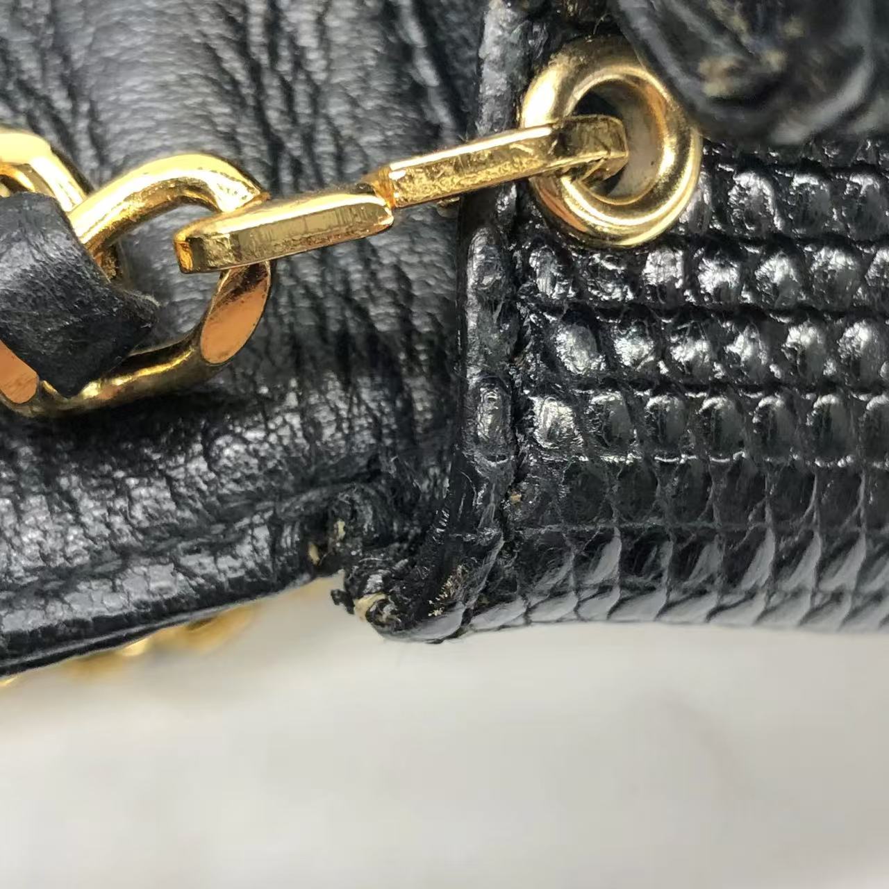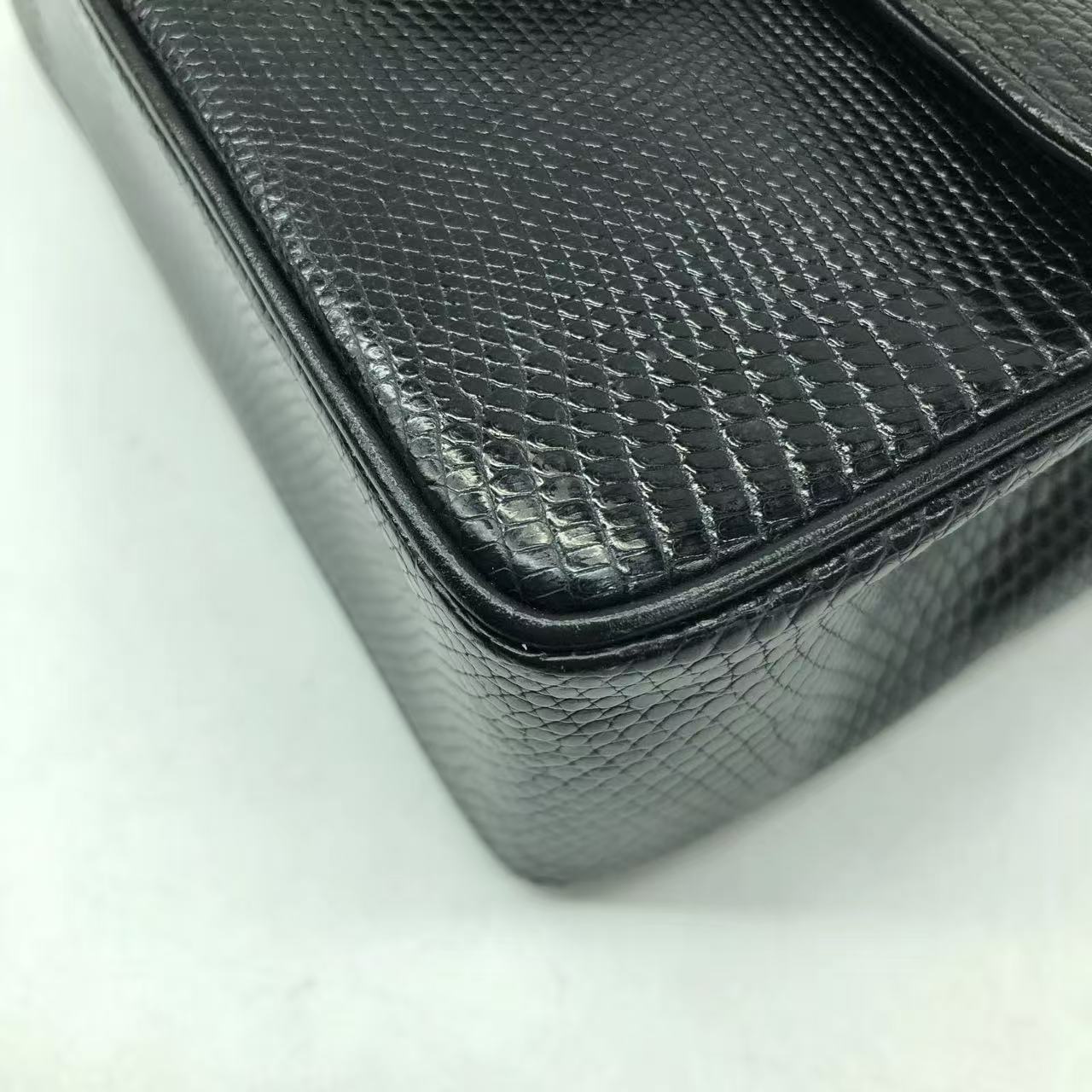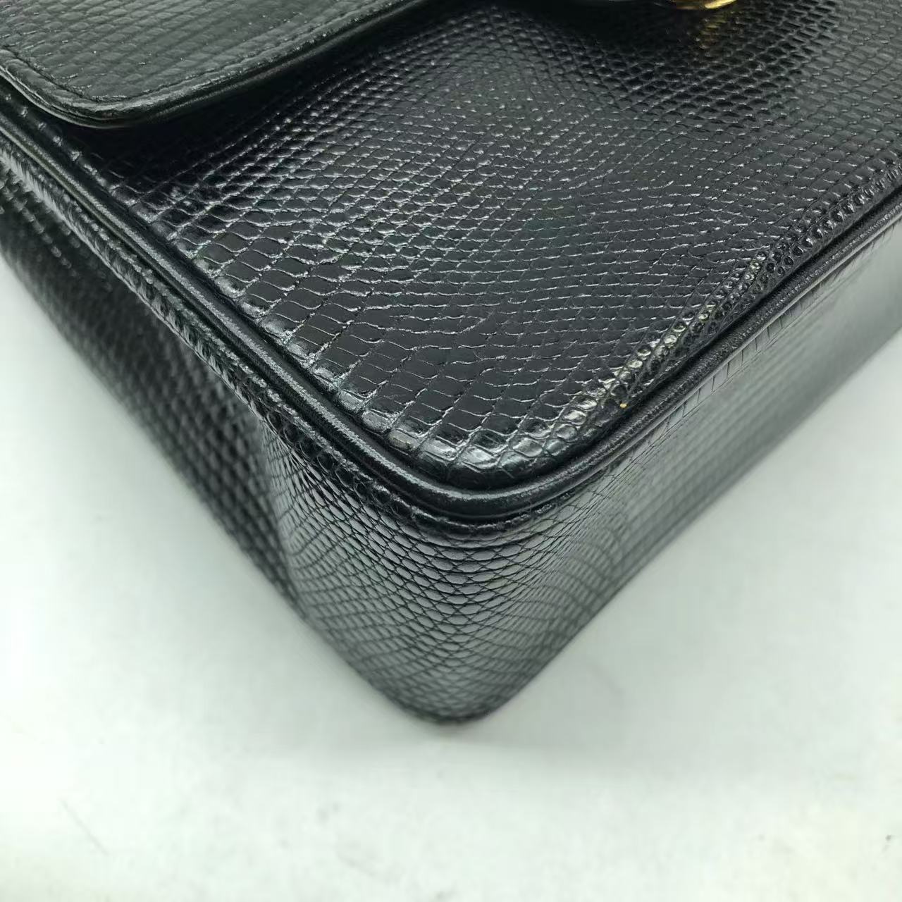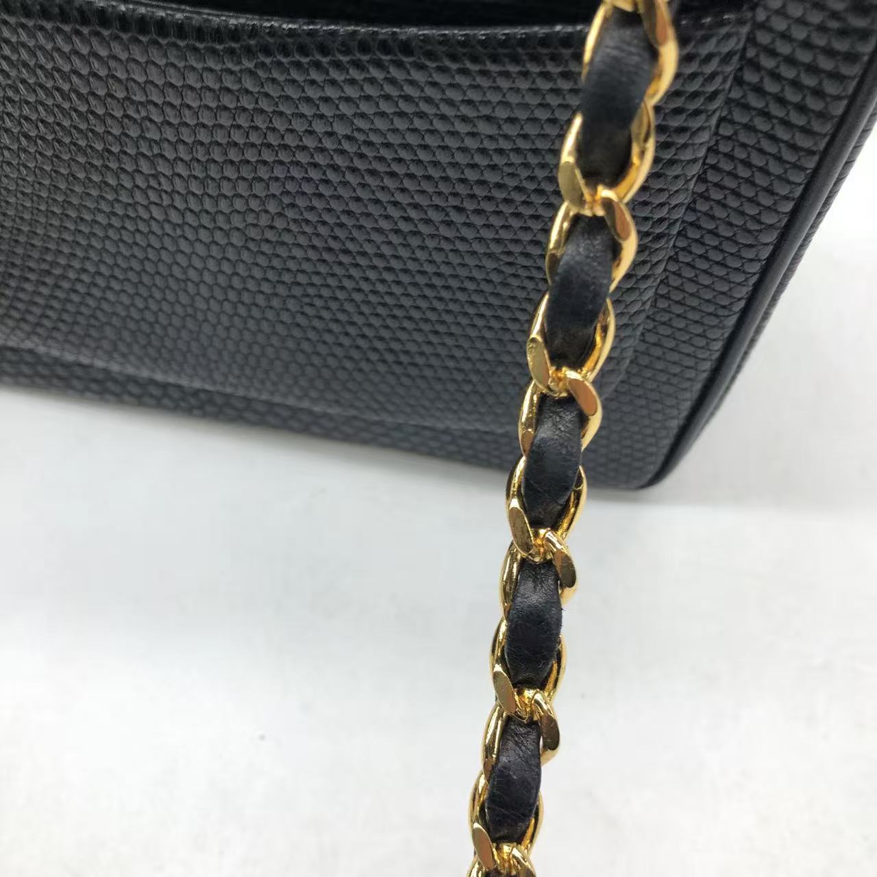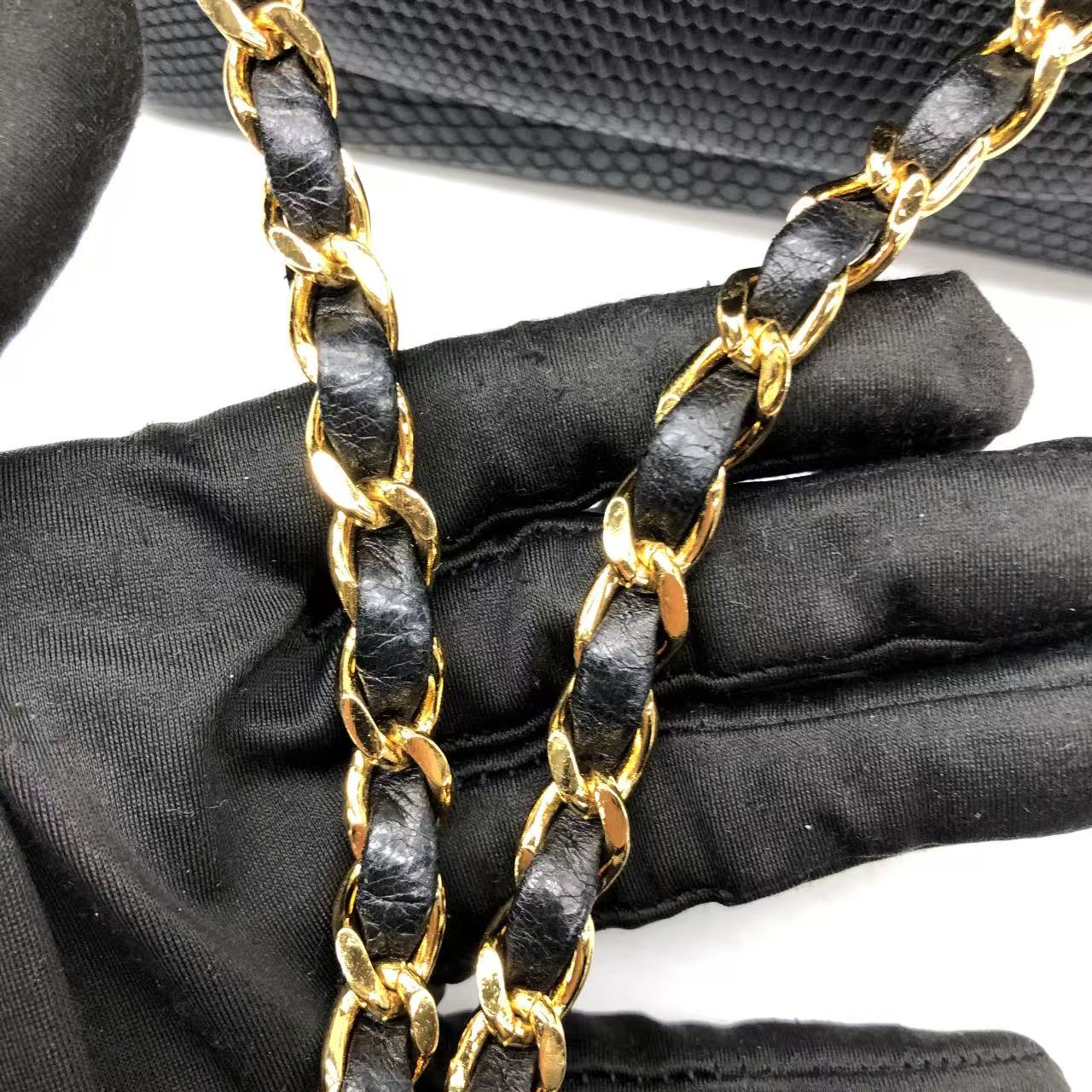 Chanel Mini Square Flap Bag Vintage Black Lizard-skin Leather 24k Gold Plated Hardware, 2000-2002